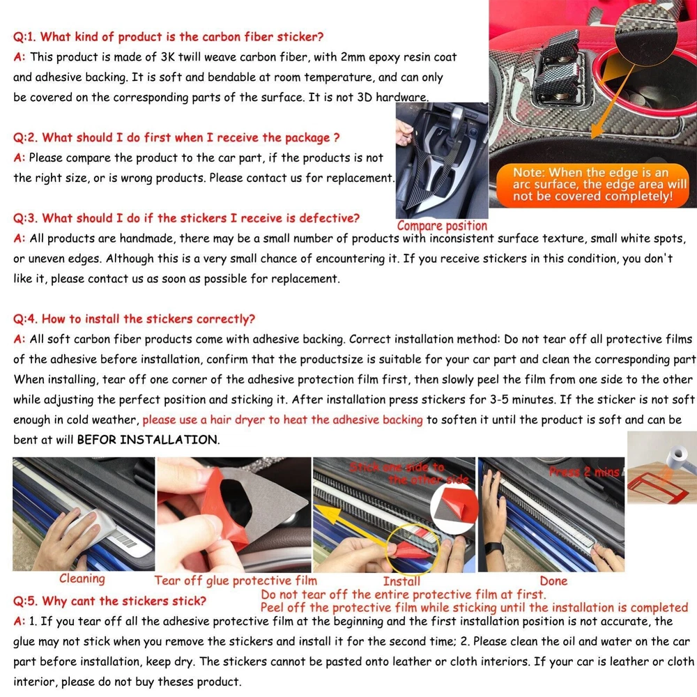 4Pcs Real Carbon Fiber Wheel Eyebrow Arch Trim Strips For Dodge Challenger 15-24 Product Description: Condition : 100% Brand New Color: Black Material: High Quality Soft Carbon Fiber Quantity: 4Pcs Feature: 1. Made with Real Carbon Fiber material for maximum durability. 2. Easy to use, sturdy and durable, long service life , scratch-resistant, dirt-resistant and anti-corrosion,tape is at the Back. 3. Perfect match for the original equipment,Protect the installed area from scratches 4. Decorate car appearances, Provides a high class and Sport decor style for your Love car, make your car particular and luxury Applicable models: Fit For Dodge Challenger 2015 2016 2017 2018 2019 2020 2021 2022 2023 2024 Method of Installation: 1 . Remove all dust and grease from the application area. 2 . Wipe with a clean cloth using an adhesive-backed universal cleaner and wax remover or other mild solvent, such as alcohol. 3 . Indirectly heat the trim cover and car bodywork using a hairdryer to 30 degrees Celsius, in order to achieve an improved instant bond. 4 . Remove outer covering from tape to expose sticky side. 5 . Apply molding (with tape applied) to the desired area of the car body. 6 . Please press 3-5 minutes after gluing to prevent air from entering. 7 . 24 hours before washing your car. Attention: Because the same model car may be differently produced in different country. Please ensure the part of your car like our picture shows, or it will not fit, if any differences, please contact with us before purchase, thanks! Shipping: 1.We will ship your order within 4-5 days after receiving your verified payment (Excluding Weekends and Public Holidays) ! If u need delivery now , pls inform us , we will delivery it ASAP! 2.All dimensions are measured by hand, there may be small deviations. 3. Please check your Car Model, reference our pictures before submitting your order and Suitable models 4.If you cannot find the answers to your questions in this listing, please contact us , we will reply u ASAP,we will try our best to pleasure to serve u ! we hope have more happy and longtime shopping experience with u ! Payment Delivery details Terms of sales About us Contact us Payment We accept only PayPal payment We only ship item to your PayPal verified address. If you need shipping to other address, please notify us! Delivery details Shipping to the US 8-12 working days Canada, Europe, Australia and Southeast Asia 14-18 business days Other countries: 4-6 weeks. Terms of sales Full refund or replacement can be offered in the following conditions. 1. Parcel is lost or you don't receive it within 30 days after you make payment. 2. The item you received is defective or broken. Please inform us ASAP if you have any above question and send us pictures to prove, we will give you the best solution. Note: We are NOT responsible for any physical damage or damage caused by buyer. Returned items must be in its original package of unused condition and buyers need bear the shipping charges for the items to get replaced or it's faulty. About us We specialize in selling high quality high end We have a wide range of products You can buy what you want from us Contact us If you are satisfied with the purchase and our total service, your comment is very important in our business success. Please take a minute to leave us a positive feedback with an overall Detailed Selling Rating (DSR) of 5. Our eBay account setup auto feedback, so eBay system gives you automatically Positive feedback back after your positive feedback left. If you plan to give us a neutral/negative feedback Or open ebay/paypal case, please write to us immediately so that we can do our best to resolve your problem.