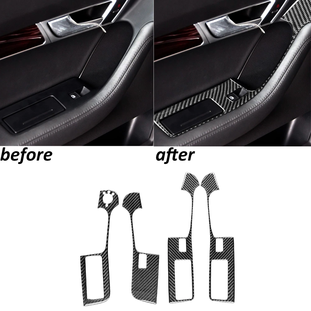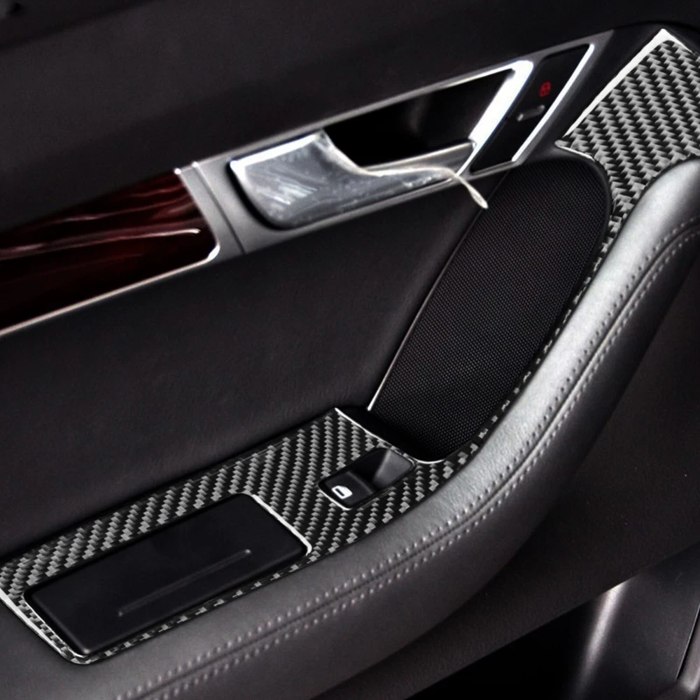 4Pcs Real Carbon Fiber Window Lift Switch Panel Trim For Audi A6 S6 C6 2005-2011