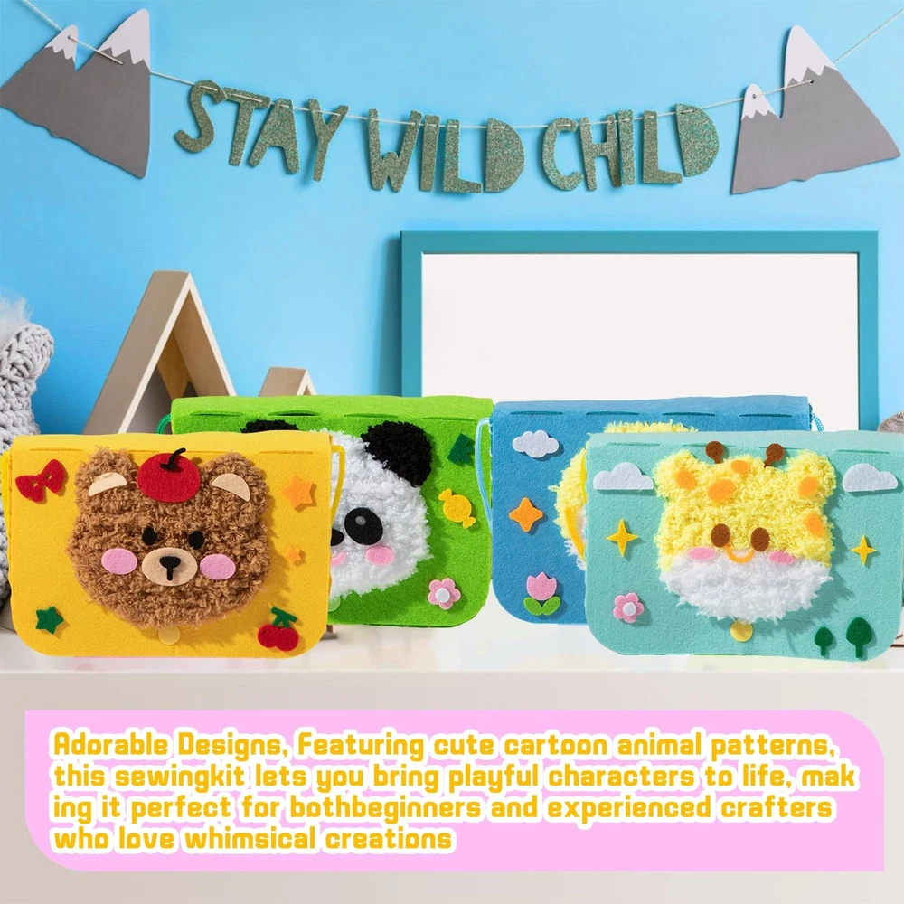 Package Includes: 4-piece sewing set for children (Deer, Bear, Panda, duckling) Age Range (Description): 5-12 Color: multicolor Theme: Animal Item dimensions L x W x H: 4.72 x 7.09 x 1.77 inches Material: felt 【Fun & Educational Sewing Kit】: This 4-piece sewing kit for kids includes adorable animal-themed bags (Deer, Bear, Panda, Duckling) made from high-quality felt. Perfect for beginners ages 5-12, it’s a great way to introduce kids to sewing and crafts! 【Complete Beginner-Friendly Set】: Each kit comes with safe plastic needles, colorful yarn, and easy-to-follow instructions. Designed for kids sewing kits age 5-8 and up, it helps develop fine motor skills, patience, and creativity. 【Encourages Creativity & Confidence】: Kids can design their own unique bags, mixing and matching colors and accessories. This sewing for kids ages 4-8 promotes self-expression and boosts confidence through hands-on crafting. 【Perfect Gift or Party Favor】: Individually wrapped and ready to use, these sewing kits for kids 8-12 are ideal for birthdays, holidays, or as party favors. They’re also a great activity for family bonding or playdates! 【Eco-Friendly & Safe】: Made from durable felt and sustainably packaged, this kids sewing crafts kit is safe for children and environmentally friendly. It’s a thoughtful choice for parents who value sustainable toys.