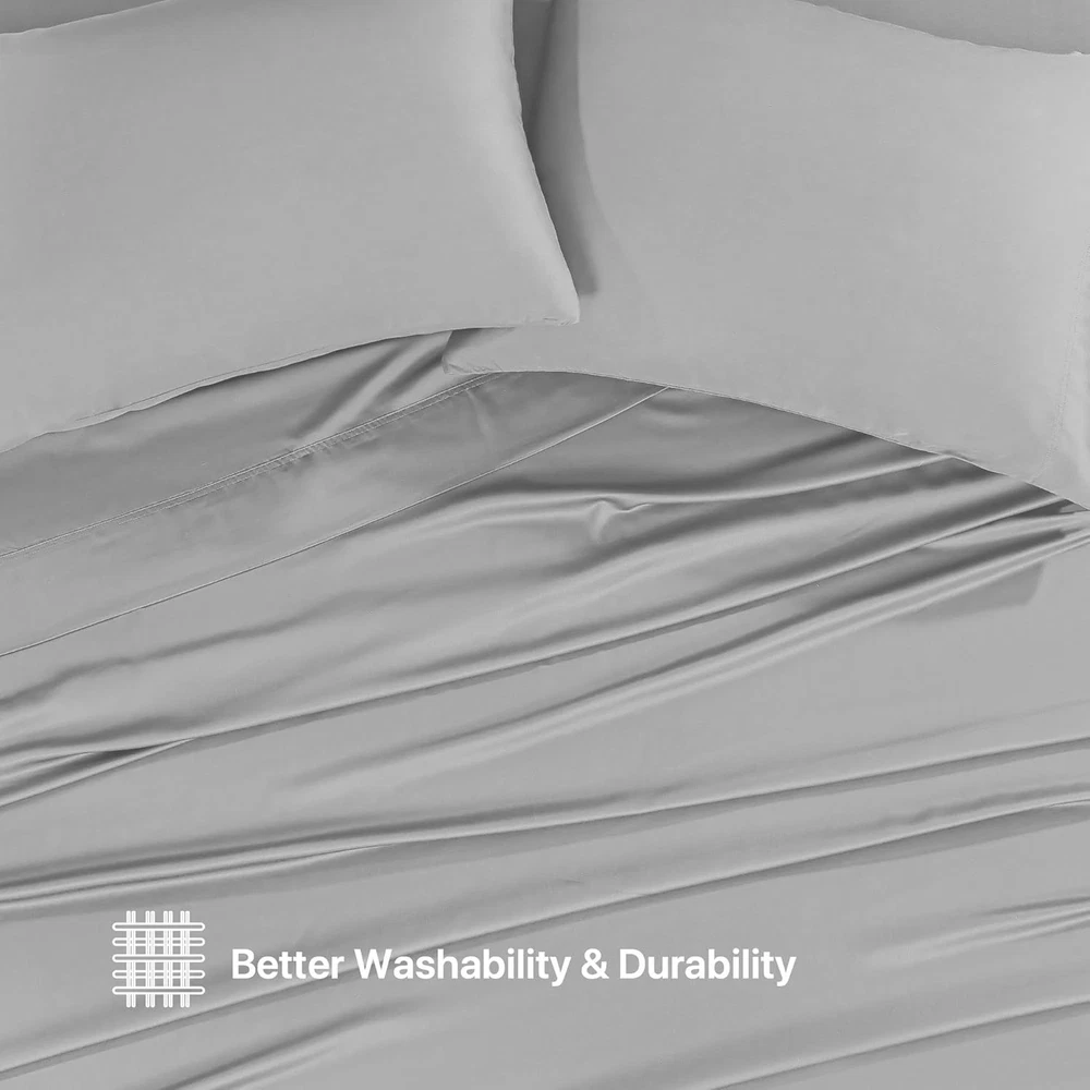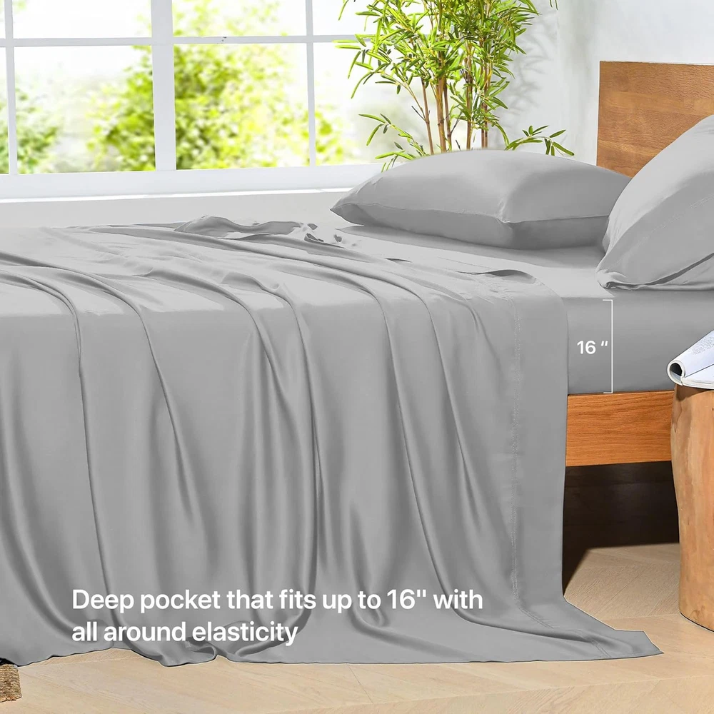 4Pcs Sheets Set Queen Size Rayon Derived from Bamboo Bed Sheets Soft Breathable