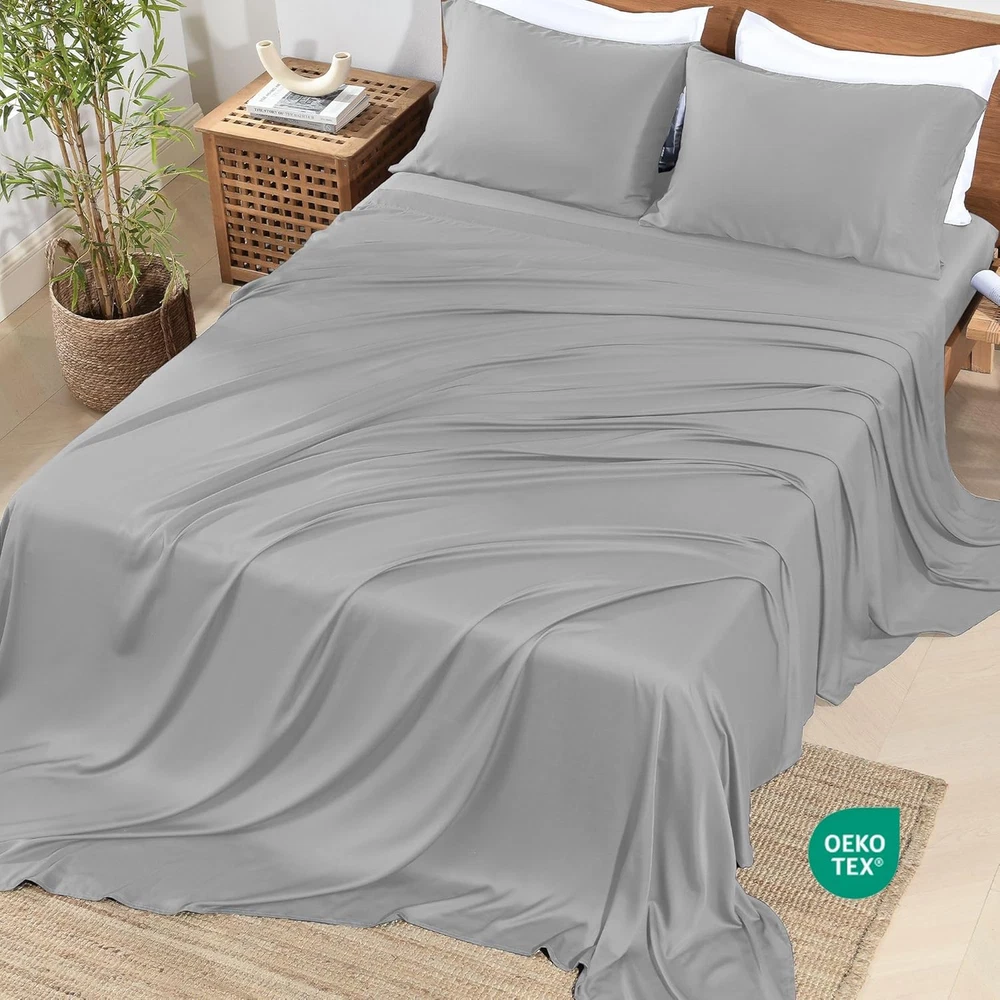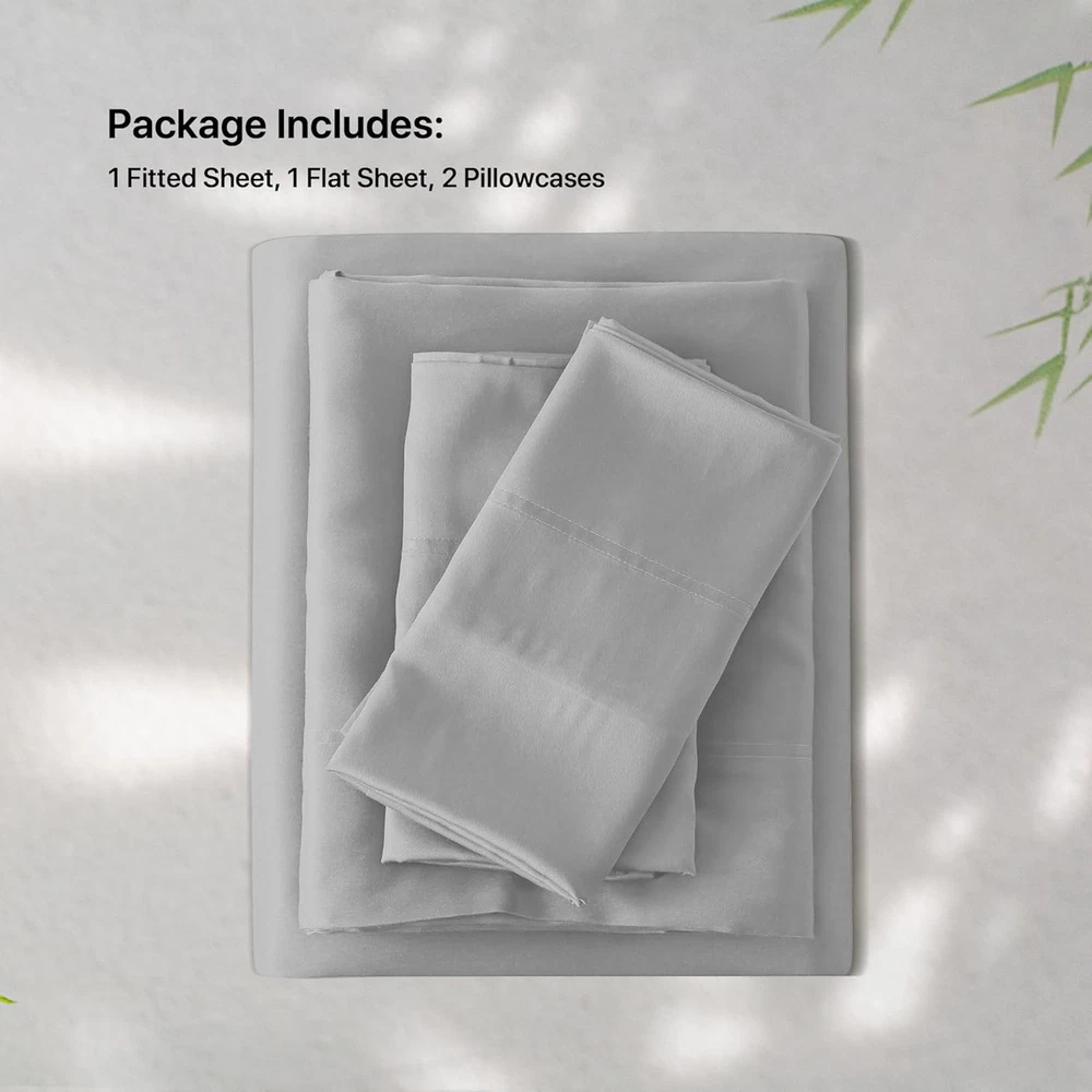 Country of Origin: China Closure Type: Envelope Color: Gray Style: Solid Cartoon Character: 4 Seasons: All Unit Count: 1.0 Count Fitted Sheet Pocket Depth: 16 Inches Type: Does not apply gtin13: 711181275919 Thread Count: 240 Brand: Does not apply Special Feature: Cooling, Hypoallergenic, Deep Pocket, Breathable Pattern: Solid Theme: People Included Components: Pillowcases, Fitted Sheet, Flat Sheet Product Care Instructions: Machine wash in cold water, Tumble dry on low speed Pillowcase Quantity: 2 Size: Does not apply Age Range (Description): Adult Material: Rayon Derived from Bamboo UPC: 711181275919 Number of Pieces: 4 Item Weight: 5.49 pounds Product Dimensions: 11.02 x 9.05 x 3.58 inches Item dimensions L x W x H: 11.02 x 9.05 x 3.58 inches