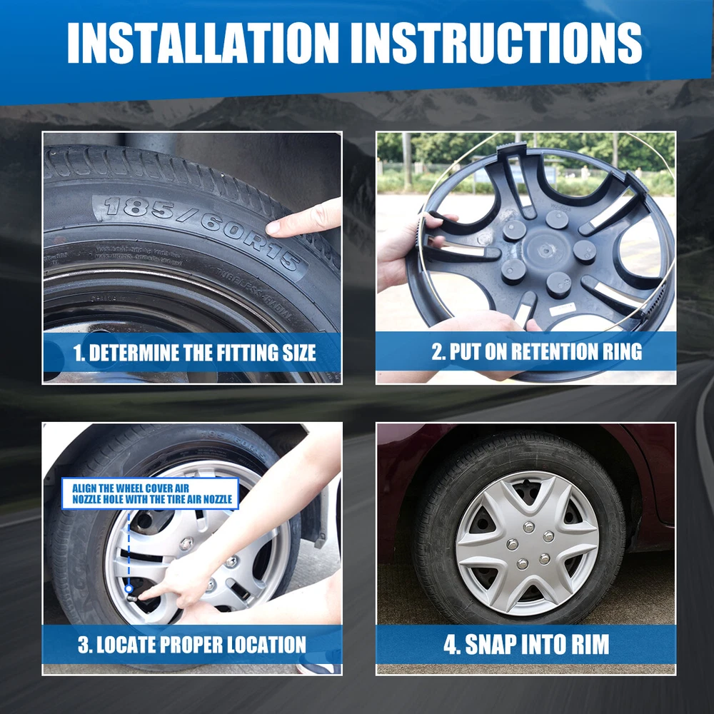 4Pcs 15''Universal Wheel Rim Cover Hubcaps Rings Silver Tires Trim Caps R15 Set Description: These premium quality wheel covers are made of top-quality materials for long lasting durability. Stylish designs personalize, customize, and can improve the exterior of almost any vehicle. These are a great option to replace old, damaged original wheel covers, for winter wheels in cold climates, or simply add style and personality. We push auto fashion forward and ensure the best quality and value. Superior finish is clear coated for durability. Specification: Feature: Universal 15 Inch Color: Silver Material: ABS+PC Fitment: For 2003-2008 TOYOTA COROLLA 15" Steel Wheel For 2009-2013 TOYOTA COROLLA 15" Steel Wheel For 2014-2019 TOYOTA COROLLA 15" Steel Wheel For 2019-2023 TOYOTA COROLLA 15" Steel Wheel For 2002-2006 TOYOTA CAMRY 15" Steel Wheel For 2012-2014 TOYOTA YARIS Hatchback 15" Steel Wheel For 2014-2019 TOYOTA YARIS Hatchback Steel Wheel For 2019-2020 TOYOTA YARIS SEDAN/YARIS iA 15" Steel Wheel For 2011-2015 VOLKSWAGEN JETTA/GLI SEDAN 15" Steel Wheel For 2016-2018 VOLKSWAGEN JETTA/GLI SEDAN 15" Steel Wheel For 2010-2014 VOLKSWAGEN GOLF HATCHBACK 15" Steel Wheel For 2010-2014 VOLKSWAGEN GTI 15" Steel Wheel For 2015-2021 VOLKSWAGEN GOLF 15" Steel Wheel For 2007-2009 NISSAN VERSA HATCHBACK Steel Wheel For 2007-2008 NISSAN VERSA SEDAN Steel Wheel For 2009-2011 NISSAN VERSA SEDAN Steel Wheel For 2010-2012 NISSAN VERSA HATCHBACK Steel Wheel For 2012-2019 NISSAN VERSA SEDAN Steel Wheel For 2014-2017 NISSAN VERSA NOTE Steel Wheel For 2020-2023 NISSAN VERSA Steel Wheel For 2007-2012 NISSAN SENTRA Base, FE+ Model 15" Steel Wheel For 2007-2012 NISSAN SENTRA Base, FE+ Model 15" Steel Wheel For 2003-2006 NISSAN SENTRA Steel Wheel For 2013-2021 NISSAN NV200 Steel Wheel For 2013-2015 HONDA CIVIC SEDAN 15" Steel Wheel For 2013 HONDA CIVIC COUPE 15" Steel Wheel For 2006-2011 HONDA CIVIC COUPE/ SEDAN 15" Steel Wheel For 2004-2005 HONDA CIVIC EX COUPE/ SEDAN 15" Steel Wheel For 2018-2020 HONDA FIT Steel Wheel For 2012-2017 HONDA FIT Steel Wheel For 2009-2011 HONDA FIT Steel Wheel For 2017-2020 HYUNDAI ELANTRA SEDAN Steel Wheel For 2011-2016 HYUNDAI ELANTRA SEDAN Steel Wheel For 2007-2010 HYUNDAI ELANTRA SEDAN Steel Wheel For 2004-2006 HYUNDAI ELANTRA Steel Wheel For 2005-2010 CHEVY COBALT 15" Steel Wheel For 2017-2019 CHEVY CRUZE HATCHBACK Steel Wheel For 2019 CHEVY CRUZE SEDAN Steel Wheel For 2017-2020 CHEVY SONIC SEDAN/HATCHBACK Steel Wheel For 2012-2016 CHEVY SONIC SEDAN/HATCHBACK Steel Wheel For 2015-2018 CHEVY CITY EXPRESS Steel Wheel For 2004-08 CHEVY MALIBU 15" Steel Wheel For 2015-2018 VOLKSWAGEN JETTA/GLI SEDAN 15" Steel Wheel For 2005-2010 VOLKSWAGEN JETTA SEDAN GEN 5 15" Steel Wheel For 2010-2014 VOLKSWAGEN GOLF HATCHBACK 15" Steel Wheel For 2010-2014 VOLKSWAGEN GTI 15" Steel Wheel For 2002-2005 VOLKSWAGEN PASSAT (NEW STYLE) 15" Steel Wheel For 2014-2019 FORD FIESTA SEDAN/HATCHBACK Steel Wheel For 2011-2013 FORD FIESTA SEDAN/HATCHBACK Steel Wheel For 2012-2018 FORD FOCUS SEDAN 15" Steel Wheel For 2012-2016 SUBARU IMPREZA SEDAN/WAGON Steel Wheel For 2002-2007 MITSUBISHI LANCER 15" Steel Wheel For 1999-2003 MITSUBISHI GALANT 15" Steel Wheel Package Included: 1 Set Hubcaps οΌ4Pcs/SetοΌ Payment Delivery details Terms of sales About us Contact us Payment π We accept PayPal (Recommended), credit card, VISA, Google Pay & Discover etc. π Please submit your payment within 7 days after your purchase. π If not, eBay will automatically open an Unpaid Item Dispute on our behalf if the item(s) are not paid within 7 days. Delivery details π Please double check your delivery address and contact information. π All items will be shipped within 1 business days after payment received. π Tracking numbers will be easily accessible ASAP they are created and processed. Terms of sales π Free 30 days Return, we will cover the return post fee. π If a defective product was received, please do not hesitate to message us via eBay message. π We will response in 24 hours in business to resolve the problem π We stand behind our products. Items can be returned for exchange or full refund within 30 days from the date you receive. About us π Wolfstorm has a huge warehouse and office located in the United States. π All US domestic 48 states customers are able to benefit from the FREE SHIPPING services. π Our experienced, professional customer service representatives offers prompt and courteous service. π Best quality products, outstanding services and professional experience keep our customers. Contact us π Please feel free to contact us if you have any problems. π Emails will be replied within 24 hours in working days. π After hours emails will be replied on the next business day. On Jan 4, 2025 at 00:46:13 PST, seller added the following information: