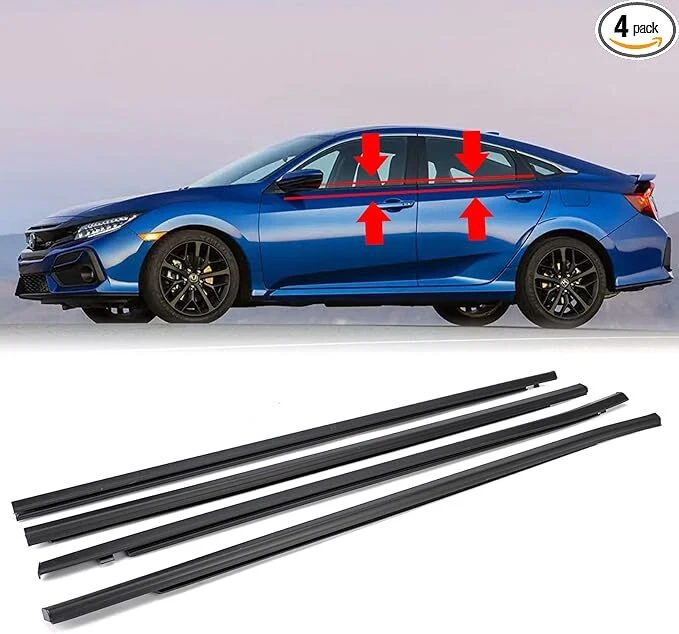 4Pcs Weatherstrip Window Moulding Trim Seal Belt Compatible with 2016-2021 Honda Civic 4 Door Sedan Item Description About this item 【Adaptation Model】Compatible with 2016-2021 Honda Civic Sedan 【Feature】Strong waterproof performance, good sound insulation effect, effectively solve the problem of water leakage, reduce wind noise and window shaking when driving at high speed, and improve driving comfort when driving. 【High Quality】Made of high-quality environmentally friendly materials, it is safe, odor-free, durable, and has good sealing performance. It has been tested many times before leaving the factory and meets or exceeds OEM standards. 【Easy Installation】Buckle design, easy to install, no need to drill or cut,Simply peel and align insertion to complete installation. 【Perfect Service】2 Year Warranty.Friendly return policy and customer service. If you have any questions, please contact us by email, we will reply you within 24 hours. › See more product details *Easy to install, no need to drill or cut, just need to align the buckle and insert it. *Good flexibility and resistance to compression deformation. *Please properly verify the Year/Make/Model before purchasing this product, in avoid of unnecessary charges. Payment We accept payment only through PAYPAL Shipping We ship products worldwide through standard express courier service, it will reach within 7 to 10 days to abroad buyers, we ship the product after recieved clear payment and give full information about shipment to the buyer Return We accept product return within 7 to 21 days from delivery date but product should be in original position and not in damaged condition,the return shipping charges will be buyer responsibility