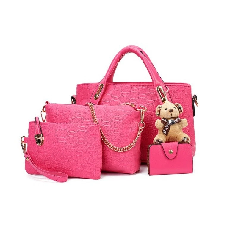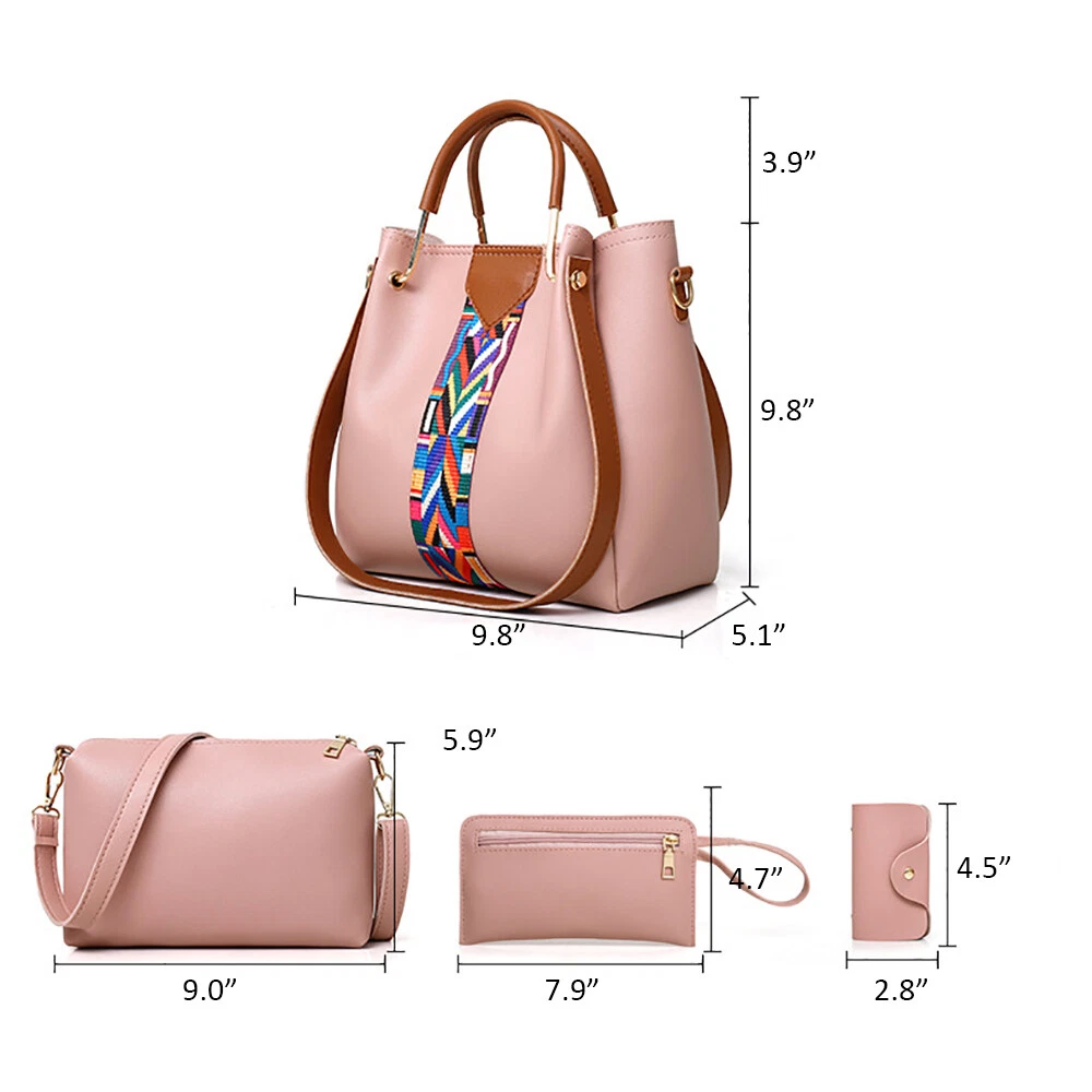 4Pcs/Set Women Lady Leather Handbags Messenger Shoulder Bags Tote Satchel Purse Feature 1. High Quality :Made of good quality soft leather and polyester lining with durable gold hardware. 2. 4pcs Set Design :1 Shoulder Bag+1 Messenger Bag +1 Clutch Purse + Card holder 3. Large Capacity: Roomy enough hold your an iPad,an umbrella,a wallet,your phone and a lipstick,a small make up lens and other necessary stuff. 4. Dimensions:Handbag: 9.8"x5.1"x9.8" (LxWxH) Messenger Bag: 9" x 6”(LxH)) Wallet: 7.9" x 4.7" (LxH) Card Holder : 4.5"x 2.8"(LxW) 5.Wash Care:Very durable and easy to clean,use soft wet towel to gently wipe on a regular basis to keep clean as new. Specifications 1: Women Bag Set Size Description The Handbag measures 25*13*25 cm (L*W*H)/ 9.8*5.1*9.8 inch (L*W*H) The crossbody bag measures 23*15 cm (L*W)/9.0*5.9 inch (L*W) The handbag wallet measures 20*12 cm (L*W)/ 7.8*4.7 inch (L*W) The card holder measures 11.5*7 cm (L*W)/ 4.5*2.7 inch (L*W). Compared with A4 Magazine and iPad This Large Handbag can hold an iPad And it it not suitable for A4 Magazine Large Capacity The purse set can hold your iPad, wallet, makeup’s, phone, little water bottle, perfumes, gloves and other your everyday items and keep them organized Material:PU Leather & Polyester Lining Color: Black ,Brown ,Gray ,Pink ,Burgundy ,White Dimensions: Messenger Bag: 9" x 6”(LxH)) Strap Length: 23.4”-46.7”(Adjustable) Handbag: 9.8" x 5.1" x 9.8" (LxWxH) Handle Height: 3.9inch. Strap Length: 2 x 35" Wallet: 7.9" x 4.7" (LxH) Card Holder : 4.5”x 2.8 (LxW) Package include: 1 x Handbag 1 x Messenger Bag 1 x Wallet 1 x Card holder Specification 2(With Bear) Material: Outer : High Quality Greased PU Leather Inner: Polyester High-end Hardware Weight: 0.65kg Closure: Top Zipper Closure Dimension : Large Bag 12.5"Length x 4.7"Width x 7.8 "Height Height of Handle: 3.9inch Medium Shoulder Bag 9"Length x 2.7"Width x 7 "Height Small purse: 7"Length x 0.7"Width x 4.7"Height Card Holder 4.7"Length x 3 .1"Height (Manual measurement, there will be a little error) Material: Faux Leather Color: Black, Dark Blue, Brown, Gold, Purple, Red, Rose Red, Beige, Yellow Size: Handbag: 13 x 4.72 x 8.27 "(L x W x H),Handle: 3.94",Shoulder Belt: 48.43" (Adjustable) Shoulder Bag:9.45 x 3.15 x 7.09 "(L x W x H),Shoulder Strap: 37.80" Clutch Bag: 7.09 x 0.39 x 4.72 "(L x W x H),Handle: 8.07" Card Holder: 2.76 x 0.59 x 4.13" (Can store 10 Credit Cards) Package Included: 1 x Handbag 1 x Shoulder Bag 1 x Clutch Bag 1 x Card Holder 1 x Bear Pedant Payment Delivery details Terms of sales About us Contact us Payment 1.We accept PayPal/credit/Gpay 2.All payments must be received within 10 days after auction won 3.Non-pay bidder will get a negative feedback and an unpaid alert from eBay 4.E-checks via Paypal will be hold until it is cleared Delivery details Most Items Free Shipping within the 48 States. We ship within the United States only. The term EXCLUDES the states of Alaska, Hawaii and all off-shore U.S. territories and possessions such as Puerto Rico, Guam and Virgin Islands. We do not ship to APO and FPO . Delivery Time: 4-7 business days (Varies by Destination) Shipping Carriers are responsible on the delivery time. If you have any questions or problems with delivery, please contact carrier directly Standard Order Processing time: All items will ship within 24 hours (Monday - Friday). Payment cleared/received on Friday will be shipped on the next business days (Monday or Tuesday) We are not responsible for carrier transit time. This information is provided by the carrier and excludes weekends and holidays. Note that transit times may vary, particularly during peak periods or in climate weather conditions, and that delivery times frames will need to be extended for any processing time frames in excess of 1-2 business days. Terms of sales We fully guarantee Customers benefit within 30 business days if item DOA (damage on arrival), and please contact us within 30 days from the delivery date to exchange or refund. No need click "Return", please just contact us via Ebay Message. If you insist on returning the item, please choose the reason "nolonger need it' for returning processing. You will get the replacement or refund through the communication between us. About us We strive for 100% Customer Satisfaction and high quanlity products. If you have any questions or any problems on your purchase, please feel free to contact us via Ebay Message Contact us Via eBay message system , you will get our response within 24 working hours during business days from Monday to Friday. We apologize for the late reply during the holidays or weekends. Please send all correspondence through the ebay messaging system. All Technique questions, must be asked via ebay message. Emails will be applied during business hours: 9AM to 6PM Pacific Time. Monday to Friday only (excluding Holidays). After hours emails will be replied on the next business day. Style Crossbody Material Faux Leather Gender Women Lady Size Medium Brand Unbranded MPN Does Not Apply Closure Zipper Features Adjustable Strap, Anti-Theft, Eco Friendly, Inner Pockets, Waterproof, Water Resistant Pattern Solid Style Subtype Messenger Model Elegant Handbag Theme Modern Package 1 Shoulder Bag+1 Messenger Bag +1 Clutch Purse. Strap Drop Bucket Intended Use Everyday Exterior Material Faux Leather Department Women Exterior Color as the pictures