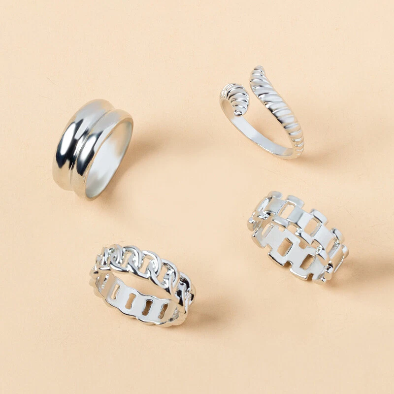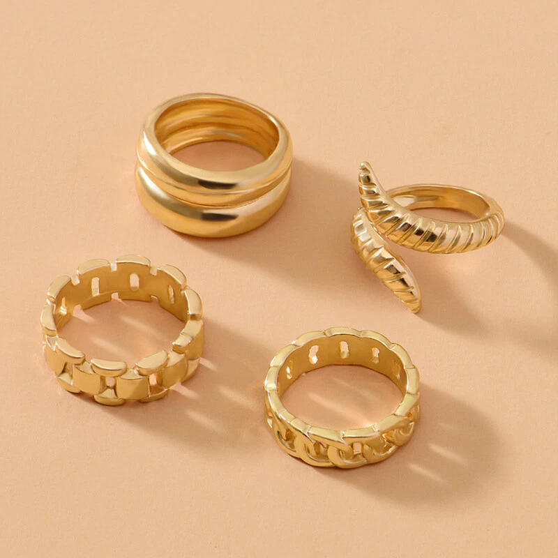 4Pcs/set Punk Metal Round Rings Set Gold Color Open Rings Finger Accessories
