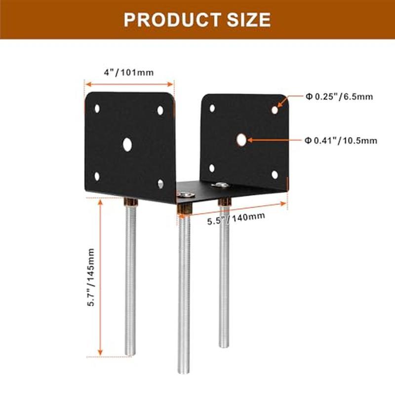 You may also like 14 Qt Aluminum Fry Pot W/Lid Perforated Basket Heavy Duty Handles Frying Cooking 73.79 USD 77.67 USD Free shipping 5% off 2 Piece Wall Mirrors Crush Diamond Decor Hanging Hardware Included Home Accent 41.46 USD 43.64 USD Free shipping 5% off Furnace Filter for Air Conditioner Air Cleaner 1 Count MERV 11 Healthy White US 64.08 USD 67.45 USD Free shipping 5% off Crystal Clear Glass Kettle Electric Soft Open Lid Auto Shut Off 1800W BPA Free 111.43 USD 117.3 USD Free shipping 5% off Turbocharged Twin Size Truck Car Bed Working Headlights Built-In Storage Plastic 385.3 USD 405.58 USD Free shipping 5% off Dog Agility Set Training Exercise Jump Tunnel Weave Poles Portable Equipment New 86.81 USD 91.38 USD Free shipping 5% off Folding Step Ladder W/ Tool Platform Anti-Slip Pedal 500lbs Lightweight Steel US 75.07 USD 79.02 USD Free shipping 5% off Portable CD Player Boombox FM Radio Bluetooth USB Remote Control Disco Light New 45.62 USD 48.02 USD Free shipping 5% off Portable CD Boombox Bluetooth FM Radio USB AUX Input Music Player System Blue 47.32 USD 49.81 USD Free shipping 5% off Adjustable Bookshelf W/Doors Hidden Storage Office Library Retro Design Home New 246.44 USD 259.41 USD Free shipping 5% off 10ft Portable Wheelchair Ramp Folding Aluminum Non-Slip 800lbs Heavy Duty Access 434.69 USD 457.57 USD Free shipping 5% off Adjustable Chrome Wire Shelving Unit 4 Tier Storage Rack 72 x 30 x 18 In Durable 238.5 USD Free shipping About this item 【Enhanced Stability】Our concrete post anchor bracket designed with 3 anchor rods M10 in diameter and 6 inch length makes the structure more stable, rugged and able to carry a fairly heavy load, provides maximum stable support for post. 【Protecting the Bottom】For old or rotted fence posts, our 6x6 post anchor are your choice for permanently securing fence posts and preventing wood posts from rotting in contact with the ground for a long service life! Fits 6x6 post (actual 5. 5"x 5. 5" in the market). 【Strong and Sturdy】U shape fence post holder is made of solid metal with black powder coating surface, which is corrosion and oxidation resistance to protective effects for a long time also decorates the bottom of the strut for aesthetic effect. 【Wide Application】Concrete post bracket suitable for many places that need to anchor wood posts, such as porch and deck post support,gazebo, pergola, mailbox, railing, table leg, road signage, terrace wooden fence and signage board,etc 【Easy to Install 】Just insert U-shaped anchor into wet concrete that once the cement has cured, you can put in 6x6 stakes and install them permanently. Concrete Post Bracket has φ10 mm*2 and φ 6 mm*8 mounting holes in each bracket to fix the wooden post firmly and stably. Material Metal Brand Wpbhk Color Black Shape Rectangular Item Diameter 5. 5 Inches You may also like TV Stand W/ Power Outlets & LED Light 4 Fabric Drawers Entertainment Center New 74.97 USD 78.92 USD Free shipping 5% off Wall Mounted Floating TV Stand W/ Power Outlet RGB LED Storage Shelf 47.2 in New 69.14 USD 72.78 USD Free shipping 5% off Teak Corner Shower Storage Stand Solid Wood 3 Shelves Adjustable Feet Durable US 98.74 USD 103.94 USD Free shipping 5% off Adjustable 360° Swivel Bar Stools Set of 2 PU Leather Comfortable Heavy Duty New 98.78 USD 103.98 USD Free shipping 5% off 4-Tier Storage Cabinet Adjustable Shelf Free Standing Lightweight Narrow Cabinet 61.24 USD 64.46 USD Free shipping 5% off U Shaped Sectional Sofa Double Chaise Living Room Comfortable Durable Assembly 395.18 USD 415.98 USD Free shipping 5% off Farmhouse TV Stand W/ Sliding Barn Doors Storage Cabinets Entertainment Center 128.42 USD 135.18 USD Free shipping 5% off Mobile Desk W/ Keyboard Tray Printer Shelf Rolling Casters Compact Storage New 55.31 USD 58.22 USD Free shipping 5% off Heavy Duty 5 Tier Adjustable Garage Shelving Unit 3000LBS Capacity Steel Storage 118.54 USD 124.78 USD Free shipping 5% off Computer Desk W/ USB Power Outlet LED Light Multi-Drawer Storage Gaming Writing 101.74 USD 107.1 USD Free shipping 5% off Farmhouse Nightstand Set of 2 Barn Door Storage Bedside Table Rustic End Table 79.01 USD 83.17 USD Free shipping 5% off 15 Drawer Rolling Storage Cart Mobile Organizer Utility For Office Home Studio 76.06 USD 80.06 USD Free shipping 5% off