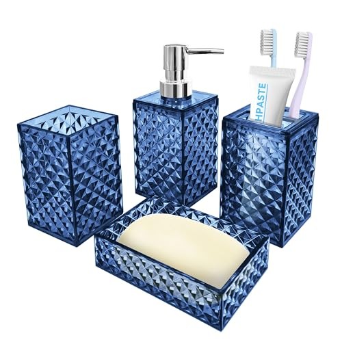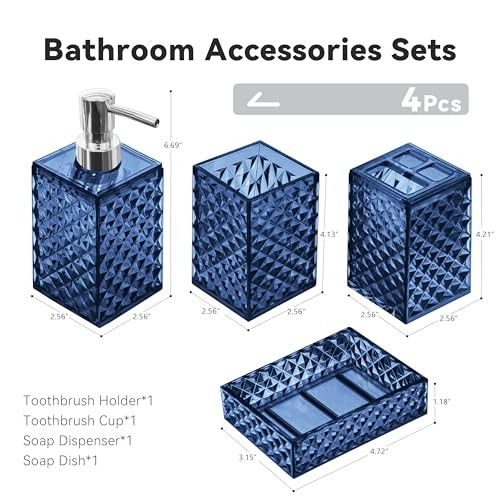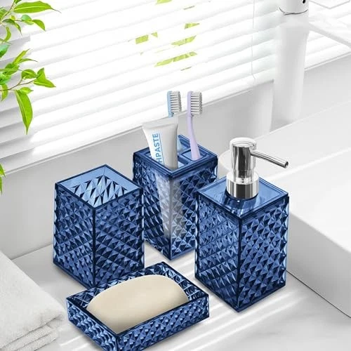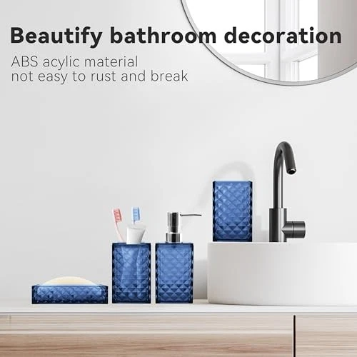 Return Policy Fast Delivery Trusted seller Bathroom Accessory Set, 4 PCS Blue Bathroom Accessories Sets, Soap Dispenser and Toothbrush Holder Set, Soap Dish and Mouthwash Cup, Boho Bathroom Decor, Bathroom Sets Accessories Product Description Plastic Diamond Pattern Design: Diamond represents luxury and shining. Our 4pcs bathroom accessory sets adopt diamond pattern design, which can not only enhance the aesthetic value of the bathroom suit, but also add more flash points to your bathroom. You have several color options, the bathroom accessory set is suitable for various bathroom themes Sturdy And Safe Material: Our bathroom set accessories are made of premium plastic, easy to clean, sturdy, and durable, making your bathroom out of the ordinary Bathroom Soap Dispenser And Toothbrush Holder Set: The soap dispenser pump is easy to press, will not leak, is sturdy and durable, and has a long service life. Great for liquid hand soap, dish soap, lotion, shampoo, body wash, hand sanitizer and more. Our toothbrush holders fit most sizes of electric toothbrushes, toothbrushes, toothpaste tubes and razors. The thickened plastic material ensures it's shatterproof, can withstand drops well 4 PCS Bathroom Accessory Set: Includes 1 x soap dispenser, 1 x toothbrush holder, 1 x soap dish and 1 x mouthwash cup. Our modern bathroom accessories set keeps the bathroom organized and has a minimalist design that perfectly complements your bathroom decoration Ideal Decoration For Bathroom: Classic blue color and silver cover form a very simple decorative element that harmonizes with most styles, adding a more modern or fashionable touch to your home Giftable: Functional and beautiful design makes these 4 pieces of bathroom accessories set a great gift for a housewarming, wedding, birthday, Mother‘s Day, Thanksgiving Day, Christmas, and also for mom, sister, colleague, and friends Shipping Returns Payment Shipping Shipping is FREE to all addresses other than APO/PO boxes in the lower 48 states. All our stock ships from US-based warehouses. Shipped via USPS or UPS (depending on location and package weight) Unless stated otherwise, all orders will ship within 24-72 hours of your payment being processed. Check our feedback to see the great reviews of FAST shipping we offer. Returns Seller does not accept returns Payment We currently accept payment via eBay managed payments only. Once payment is cleared, we will dispatch your shipment within 1-3 business days. Please refer to the "Shipping" tab for more information regarding shipping speed to your destination.
