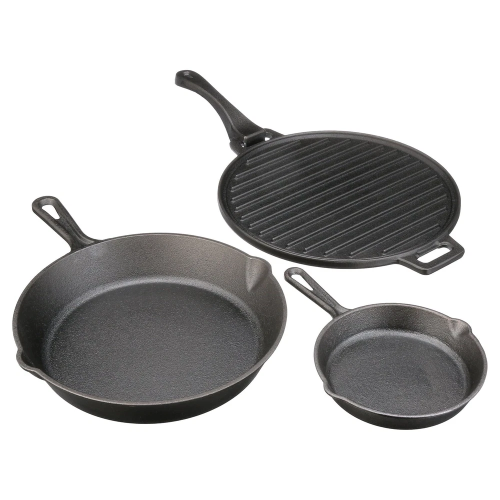 Locking Stacking Utility Tool Box Plastic Storage Organizer Waterproof Garage 12.42 USD 13.07 USD Free shipping 5% off 18x24 Rustic Gray Museum Poster Wall Picture Frame Posters Display Wall Decor 23.91 USD 25.17 USD Free shipping 5% off Copy Paper 8.5x11 20lb 500 Sheets Multi-Purpose Office School Printing New 10.05 USD 10.58 USD Free shipping 5% off 13in Porcelain Enamel Everyday Pan W/ Glass Lid Nonstick Cooking Essential New 35.63 USD Free shipping 399 Piece Auto Electrical Repair Kit Crimping Tools Connectors Wire Cable Ties 31.91 USD 33.59 USD Free shipping 5% off 5ft Foldable Table Indoor Outdoor Camping Durable Portable Heavy Duty Use 57.68 USD 60.72 USD Free shipping 5% off Dipping Pot Food Warmer Removable Electric Fondue Pot with Lid Kitchen Cooking 16.21 USD 17.06 USD Free shipping 5% off 57.67" Fiberglass Long Handle Round Point Shovel Carbon Steel Blade for Digging 29.4 USD 30.95 USD Free shipping 5% off 12 Gallon Heavy Duty Snap Lid Stackable Plastic Storage Bin Container Basements 16.17 USD 17.02 USD Free shipping 5% off Large Stackable Plastic Storage Bin Organizing Tools Holding Bulky Items Garage 15.67 USD 16.49 USD Free shipping 5% off 6.5ft Pre-Lit White Madison Pine Tree Color Changing LED Lights Indoor Use 50.02 USD 52.65 USD Free shipping 5% off Tote Bin Collapsible Utility Cart Heavy Duty Plastic Rolling Crate Storage Box 35.91 USD 37.8 USD Free shipping 5% off The 4 Piece Cast Iron Skillet and Griddle Set is made of durable cast iron that will last for generations. Bake, broil, fry and stew your favorite meal, enjoying a unique and hearty flavor. These skillets feature an easy pour lip on the side and a loop on the handle, making them easy to hang up on a hook after use. The griddle includes a removable handle for easy storage, a true space saver! All cookware pieces are pre-seasoned with natural plant oil for a superior cooking surface. With the 4 Piece Cast Iron Skillet Set, you will have the versatility to create any meal for any size group. Cast iron cookware can be used on induction, ceramic, electric and gas cooktops, oven, grill, or over campfire Do not use in the microwave On glass or ceramic cooktops, lift cookware; never slide it Feature an easy pour lip on the side and a loop on the handle All cookware pieces are pre-seasoned with natural plant oil for a superior cooking surface You may also like Solid Wood Unfinished Barstool 30in Height No Assembly Required Kitchen Lounge 49.36 USD 51.96 USD Free shipping 5% off Extra Large Reversible Grill Griddle Pan Nonstick Ceramic Cooking Indoor Outdoor 49.38 USD 51.98 USD Free shipping 5% off Dish Rack W/ Utensil Holder 14 Plate Positioners Iron Wire Drying Storage New 28.21 USD 29.7 USD Free shipping 5% off 48-inch Elf Nutcracker Figurine Holding Tree Red/Green Indoor Outdoor Decoration 241.15 USD 253.84 USD Free shipping 5% off Recycled Medium Shipping Boxes Corrugated Moving Storage Box Durable 30 Count 24.89 USD 26.2 USD Free shipping 5% off Whole Kernel Corn Sweet Flavor Simple Ingredients Shelf Stable Side Dish New 16.61 USD 17.48 USD Free shipping 5% off Heavy Duty Rubber Garden Hose 50ft Burst Proof Kink Resistant Commercial Use 71.59 USD 75.36 USD Free shipping 5% off Vintage Christmas Truck Home Decor W/ LED Lights & Magnetic Accessories New 73.28 USD 77.14 USD Free shipping 5% off UltraBrite Sconce Night LED Light Dimmable Plug-in Dusk-to-Dawn Bedroom Decor 19.36 USD 20.38 USD Free shipping 5% off Adjustable Swivel Barstool W/ Wood Accented Backrest Durable Metal Construction 88.49 USD 93.15 USD Free shipping 5% off Plastic Pet Food Storage Container Locking Lid Roller Wheels Moisture Resistant 31.99 USD 33.67 USD Free shipping 5% off Whisper Power Aquarium Filter 30-60 Gallons Quiet 3-Stage Biological Filtration 66.69 USD 70.2 USD Free shipping 5% off
