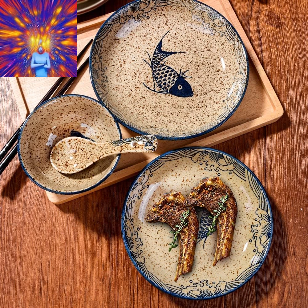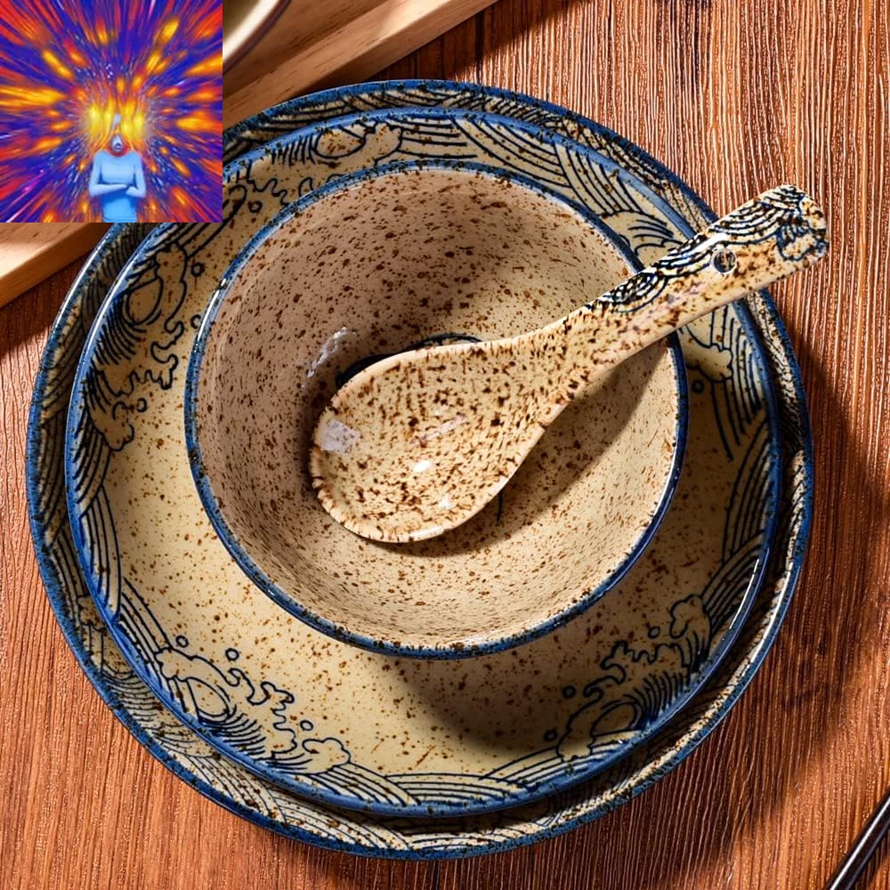 4-Piece Ceramic Dinnerware Set, Plate, Dish, Bowl, Spoon, Japanese Hand-Painted