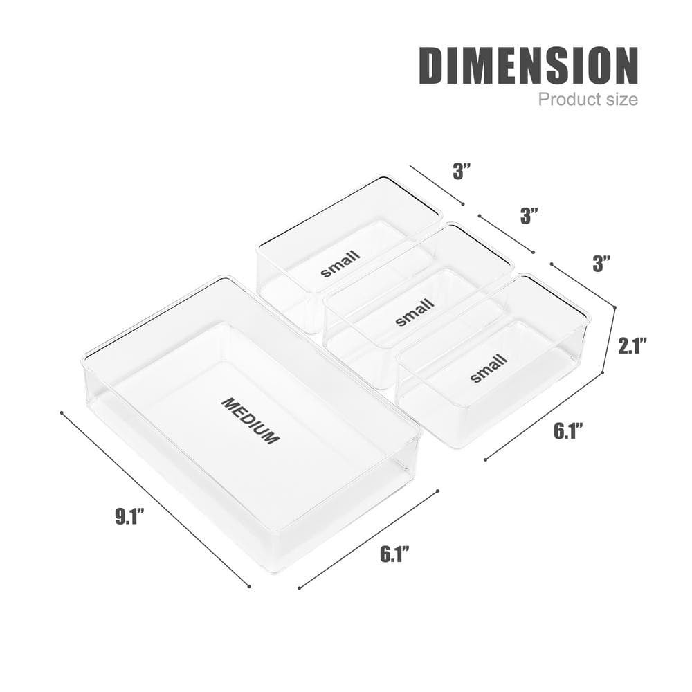 4-Piece Clear Storage Bins,Drawer Organizer for Makeup,Cosmetics,Skin Care,Vanit