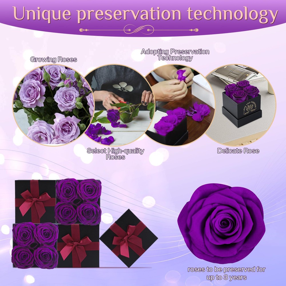 š¹ćEternal RosećPreserve roses are a symbol of eternal love.Our Lasting roses are 100% real natural roses,our forever roses box lasts for 2 to 3 year shandmade to express your everlasting love for your loved ones. š¹ć Lasting roses ćQuality roses are specially treated to make conservation flowers.Easy care no watering,Avoid direct sunlight and refrain from storing them in damp surroundings. š¹ć Selected Roses ćWe use high quality preserved roses, crafted with meticulous craftsmanship, to make romantic surprise gifts for wifes, girlfriends, mothers, daughters. š¹ćPerfect gift for any occasionćA bouquet of preserved flowers is the perfect gift choice for birthdays, parties, Valentine's Day, Mother's Day, Christmas, anniversaries, get well and other holidays. š¹ćSatisfaction GuaranteećIf you have any questions, please feel free to contact us via Amazon email, we will do our best to help you.