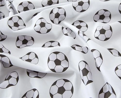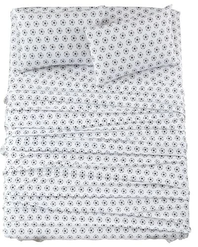 4-Piece Kids/Teens Sports Sheet Set - Soft Full White/Black Soccer Balls