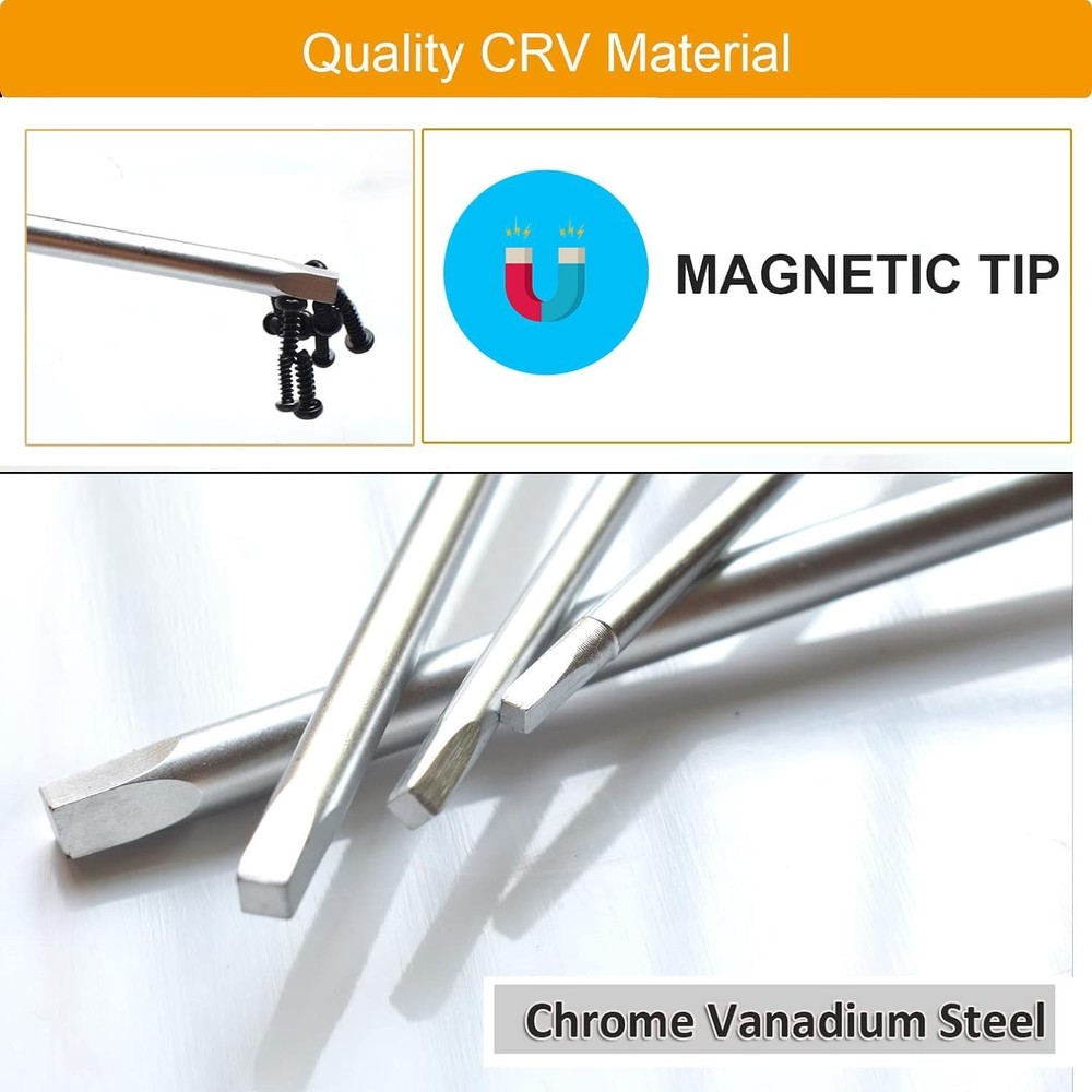 This screwdriver set is a must-have for any toolbox! The four sizes (SQ0-SQ3) cover all square screw needs, and the magnetic tips make work so much easier. The chrome vanadium steel blades are super durable, and the ergonomic handles provide a comfortable, non-slip grip. Perfect for DIY projects or professional use—great quality at an affordable price!