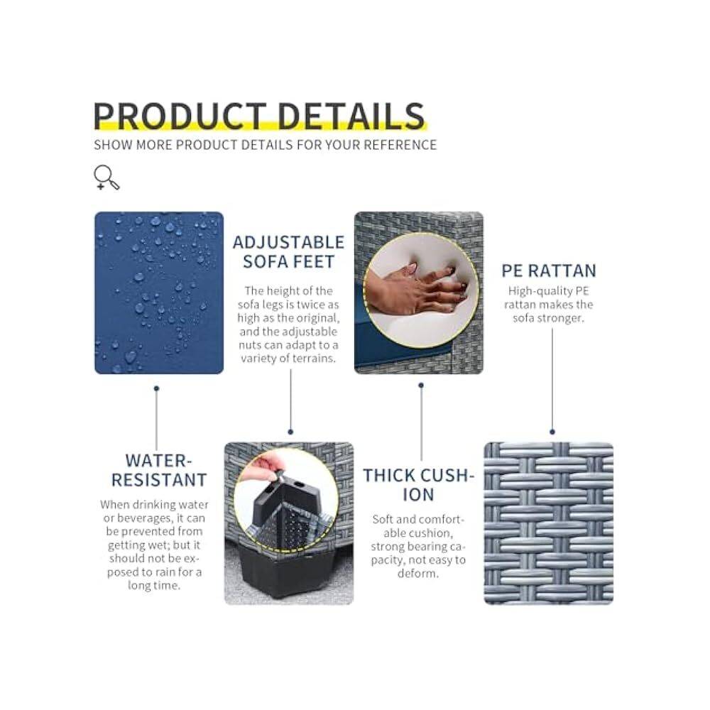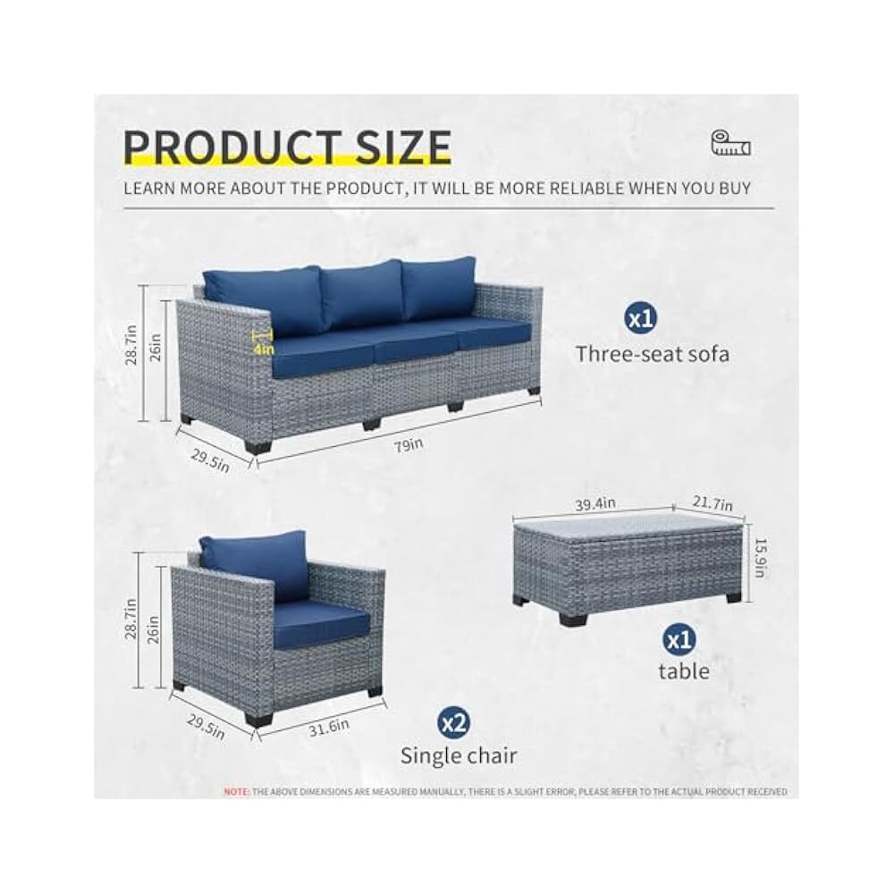 STORE NEW ARRIVALS ADD TO FAVORITE VIEW FEEDBACK Outdoor Sectional Sofa Set, 4,Piece Wicker with Storage & Blue Cushions Description 4 Piece Wicker Patio Furniture Set – Create Lasting Family Memories Outdoors! This 4-piece wicker patio furniture set provides a comfortable and stylish outdoor space for your family to enjoy. Crafted with durable PE rattan, this conversation set includes a sectional sofa and a convenient storage table. The royal blue cushions add a touch of elegance and comfort to your patio or garden. Perfect for relaxing with loved ones, entertaining guests, or simply enjoying the fresh air. As a family who understands the importance of quality time, we know you'll appreciate the lasting value and comfort this set brings. It’s a reliable and family-friendly solution for creating a welcoming outdoor living area. Invest in creating a space where memories are made, offering a beautiful and functional extension of your home. This set provides a great value for money, allowing you to enhance your outdoor living without exceeding your budget. Enjoy countless hours of conversation and relaxation with this beautifully designed patio set. Built to withstand the elements, this set is designed for long-lasting enjoyment and will become a cherished part of your family's outdoor experience. Product Features Comfortable and stylish outdoor space Durable PE rattan construction Includes a sectional sofa and storage table Royal blue cushions for elegance and comfort Perfect for relaxing and entertaining Family-friendly and reliable Great value for money Built to withstand the elements Technical Specifications Set Pieces 4 Material PE Rattan Cushion Color Royal Blue ABOUT US We offer the best prices around on high quality products. Our E-store includes media such as books, movies, music and games while offering electronics, toys, sporting apparel, clothing, tools, general home, garden items and more. SHIPPING We are always working hard to ensure your package arrives as soon as possible. Please understand that some factors like weather, high postal traffic, and the performance of shipping companies are outside of our control. For shipping outside of the continental USA, we only use eBay's Global Shipping Program.The item is shipped to KY and then sent to the rest of the world. International customers are responsible for all duties and taxes. Continue to check out in order to calculate costs for shipping the item to your country. Messages regarding eBay's Global Shipping Program MUST be directed at eBay EXCLUSIVELY. RETURNS We offer a 30-Day Return Policy on items which you are not completely satisfied with. You have the option for a full-refund or an exchange of the item. No returns are available on items shipped outside of the USA. CUSTOMER SATISFACTION We try our very best to make sure every customer is completely satisfied. If there's a problem, message us! We're happy to help. WE ACCEPT Copyright © 2021 AutoDS. | All Rights Reserved