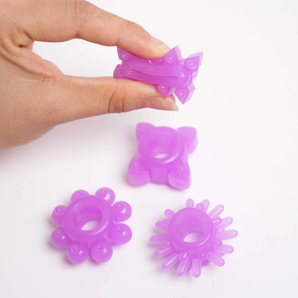Private Shipping Specifications: It is made of premium material, which is non toxic and does no harm to your penis. You can drop lubricant before using this sex toy. Help delay ejaculation, make your sex time longer and satisfy your lover. Type: Penis Ring Material: TPE Features: Delay Ejaculation, Super Stretchy, Sex Toy 4 styles (as shown in the picture) Color:Purple/pink/blue Package Includes: 4 Penis Rings