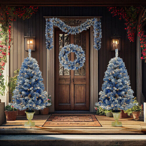 SAFE & SECURE SHOPPING 100% SATISFACTION GUARANTEED FAST SHIPPING Pre lit Christmas tree artificial Christmas 4-piece set with LED lights, Blue US Product Description Product Features Our pre-lit artificial branches look ultra-realistic and lifelike. Lighted Christmas tree gives you even lighting for festive styling. Our 4-piece Christmas tree features 840 branch tips and 305 warm white lights. The combination of artificial trees, wreaths and wreaths is an ideal decoration for home, office and school, creating a strong festive atmosphere and festive joy. All branches and tips are made of premium PVC, the material of this artificial fir is fire-resistant, allowing you to decorate home safely and durably. Description Pre-lit Xmas Tree Artificial Christmas 4-Piece Set,Garland, Wreath and Set of 2 Entrance Trees X-mas Our pre-lit artificial branches look ultra-realistic and lifelike. This coordinated 4-piece collection is sure to a festive touch to your home during the holidays. Lighted Christmas tree gives you even lighting for festive styling. Enjoy the sparkle of 305 lights pre-attached to the branches for easier and faster setup. Out of the box and into your home in minutes. Fast-open hinged branches and easy fit connections make it easy to take down and store for the off season. And our 4-piece Christmas tree features 840 branch tips and 305 warm white lights. 4ft entrance tree has 260 branch tips and 90 LED bulbs, Christmas wreath has 120 branch tips and 35 LED bulbs, Christmas rattan has 200 branch tips and 90 LED bulbs. The combination of artificial trees, wreaths and wreaths is an ideal decoration for home, office and school, creating a strong festive atmosphere and festive joy. Hope you have unforgettable Christmas memories. Finally all branches and tips are made of premium PVC, the material of this artificial fir is fire-resistant, allowing you to decorate home safely and durably. While the tree trunk and stand are made of sturdy metal. It can hold most garland, gifts and all your favorite ornaments for a customized look. Shipping Returns Contact Us Shipping 1.Only ship to the confirmed address provided by ebay.Please make sure your address in ebay matches the address you would like us to ship to. 2.We offer refund if the item is broken before arrival, all you need to do is sending us the clear pictures to show it is broken. Defective situation must be noticed within 7 days after delivery. 3.The item shipping from USA. 4.We will shipping within 48H after you payment. Returns If you have any issue about Item. Please contact us by ebay with 7 days since you receive the item and and return to us within 30 days from the delivery date for exchange or refund. Contact Us If you have any problems, we are very glad to help you. We will reply you within 48H receiving message.