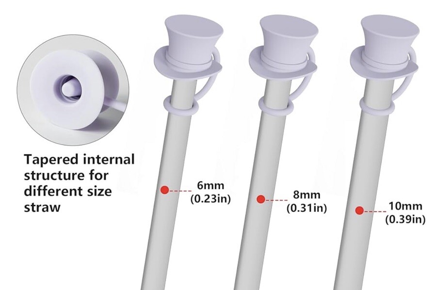 Add a touch of magic to your kitchen with this set of 4 purple silicone straw caps. These caps are designed to fit most standard suitable for all straws with a diameter of 10mm and are perfect for use in a variety of settings, from a casual picnic to a formal dinner party. Made from high-quality silicone, these caps are durable and long-lasting, ensuring that your straws stay covered and protected. Not only do these straw caps add a fun and whimsical touch to your kitchen, but they also help to keep your drinks safe from outside contaminants. With their light purple color and charming magician hat design, these caps are sure to be a hit with everyone in your family. Whether you're hosting a children's birthday party or simply want to add a little extra fun to your kitchen, these straw caps are the perfect choice. Some pictures are from the internet.