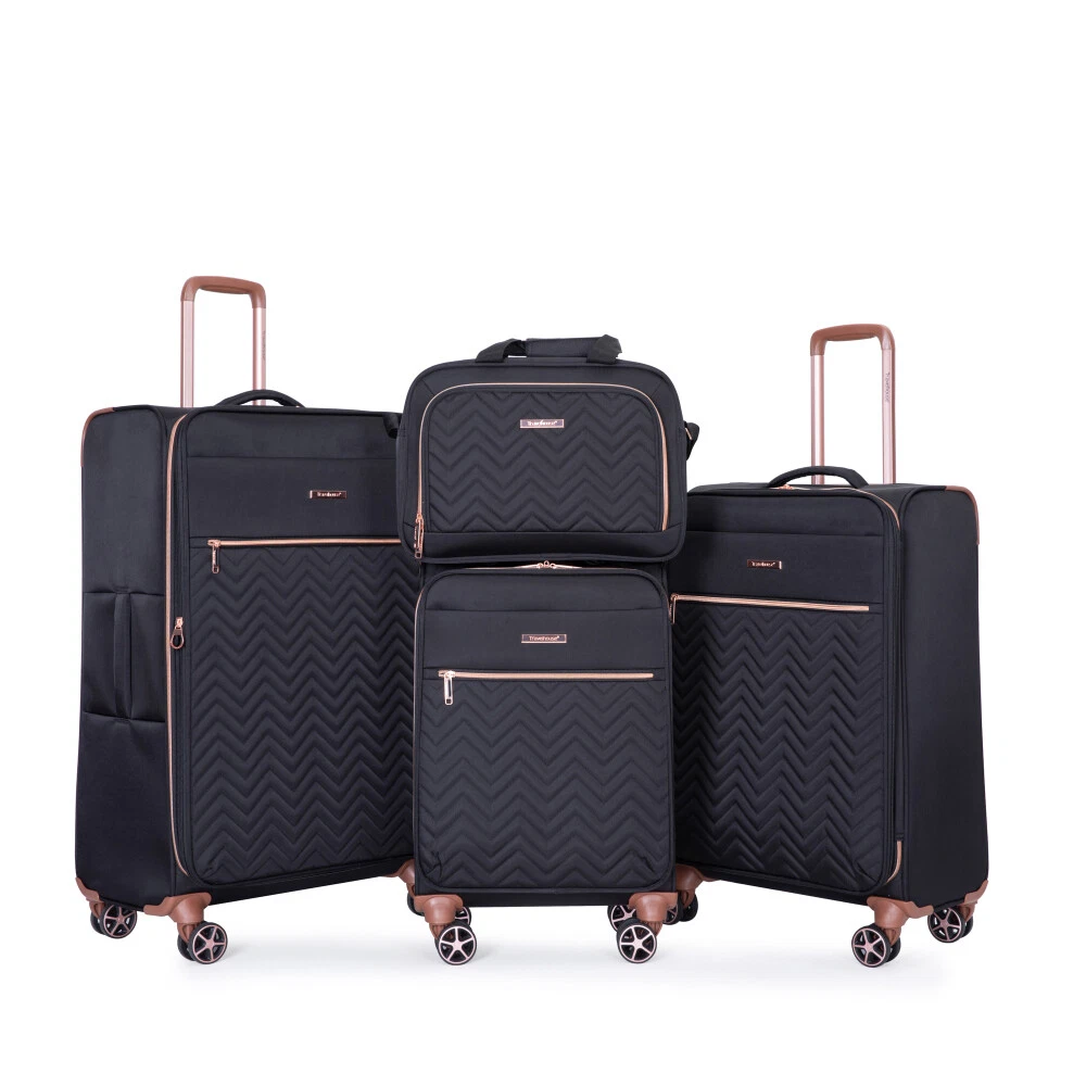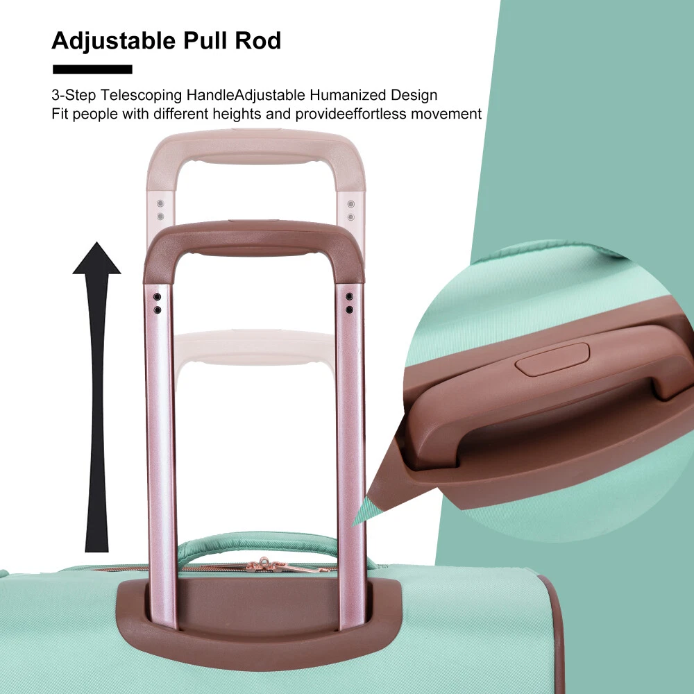 4-Piece Set (16/20/24/28) ,Softshell Suitcase Spinner Wheels Terylene Luggage Sets Carry On Suitcase Luggage Lightweight Durable Suitcase Product Features Material: 100% Terylene Extremely lightweight and durable.Four luggage bags, 16 inches and 20 inches, can be carried with you, and 24 inches and 28 inches can be checked in. They can be placed inside each other, providing more convenience and saving storage space. Each size can accommodate your needs perfectly. Spacious and Tidy Inner Storage Space: Sturdy snap button to fix the clothes. Mesh pockets can hold anything you want. Adjustable Pull Rod: Push-button locking handle adjusts to different stages. 360 ° aircraft wheels take you wherever you want to go. Terylene is not easily damaged。 Much better and durable than polyester material. Multiple front zippered pockets for travel meets your different storage requirements. Description Easy to carry, reasonable size 16 inches can be conveniently placed on top of 20 inches of luggage, and can be freely combined Extended storage space 1. Adding more packing capacity Expandable zipper Strong and durable zipper protects your clothing 2. Two quick-access pockets Easy and fast access to your belongings Inner storage space. Spacious and organized inner storage space. Pull Rod Adjustable pull rode meets different height requirements. 360° Double Spinner Wheels Universal rotation wear-resistant and silent aircraft wheel, suitable for a variety of ground.