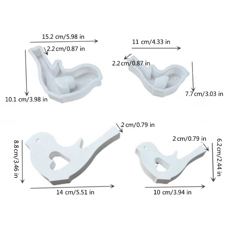 Features: Brand new and high quality Love bird candlesticks silicone mould is suitable for DIY enthusiasts, and party planners who enjoy crafting handmade You can add dry flower and sequins into the resins molds to get a colorful molds. Heart shaped bird candlesticks silicone resins molds is smooth, easy to demolds, easy to use and clean. Cute love bird holder castings molds can be used for making candlesticks base. Heart shaped bird candlesticks resins molds can be great DIY decorations. Any festival gift on friendship, Christmas, Thanksgiving, Valentines Day, wedding, birthday, anniversaries, engagement party, and so on. Specifications: Material: Silicone Rubber Size: As the Picture Shows Package Includes: 4x/Set Love Bird Holder Silicone Molds note: Please allow 1-3cm errors due to manual measurement. Due to difference betweeen different monitors,the picture may not reflect the actual color the item.