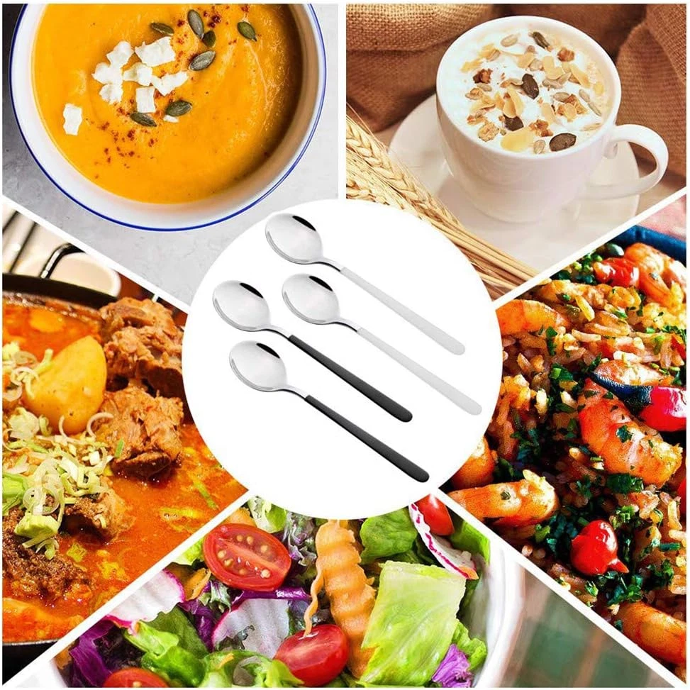 Store New Arrivals Add to Favorite View Feedback Contact 4-Piece Stainless Steel Dinner Spoons with round Edge, 8 Inches Comfort Long Handle Table Spoon, Mirror Polished Flatware Utensils Dishwasher Safe, for Home Kitchen Restaurant (2 Black & 2White) Description Style Classic,Simple Color 2 black & 2white Material Stainless Steel Is Dishwasher Safe Yes Package Dimensions 3.9 x 1.5 x 0.39 inches Item Weight 10.6 ounces Product Dimensions 8.07"L x 1.57"W Number of Pieces 4 Premium Quality Material: The design, materials, weight and balance are tactile indicators of a level of quality. Our serving spoons set are made of high grade stainless steel. Extra-Fine stainless steel construction, effective heat insulation, comfortable grip, easy to maintain form is designed to resist rust and corrosion, while also ensuring long-lasting color and shine Mirror Polished Spoons: Mirror finished surface, smooth edge no rough spots, proper gauge thickness and weight to hold comfortably, you need not worry about cutting your skin or mouth. Simple appearance with no redundant annoying decoration, classic design, the subtle curves and bright mirror finish will to fit any style kitchen tableware Serve Food in Safe: Why choice this stainless steel serving spoon? You can say goodbye to the unhygienic and cheap plastic or bamboo utensils. Use this sturdy and shiny steel serving utensils, without pollution. With products that can cope with regular use and being cleaned in the dishwasher without being damaged Show Super Taste of Life: They are good choice to be spoon set for dining table, kitchen, camping, travel, banquet serving, wedding and party. Suitable for as desserts spoon and iced tea, coffee, root beer floats, cocktail stirring spoons. Very suitable for high taste home use, high grade restaurant, hotel or other big occasions, delivers a straightforward elegance to compliment any tabletop setting Perfect for Your Dinner Table: An attractively set table is almost as important to a great meal as the food. Our spoons silverware package includes four 8 Inches dinner spoons serving for 4 peoples ✅An attractively set table is almost as important to a great meal as the food. Our XEMZ spoon set includes four 8 Inches dinner spoons serving for 4 people can delivers a straightforward elegance to compliment any tabletop setting. ✅Our XEMZ spoon set are made of premium stainless steel, can resist rust and corrosion, while also ensuring long-lasting color and shine. ✅Mirror finished surface, smooth edge no rough spots, proper gauge thickness and weight to hold comfortably, you need not worry about cutting your skin or mouth. ✅They are lightweight and easy to carry. And we have three sets to choose, are 4 black spoons, 4 white spoons or 2 black and 2 white spoons. Specification: Height :20.5cm/ 8.07inch. Width : 4cm/ 1.57inch. Weight : 46g/ 0.1lb. Package Include: 4 x Spoon. Note: Please use soft cloth and warm water to wash the spoon. Do not use metal ball or other rough tools to wipe,otherwise the surface will leave scratches. ABOUT US We offer the best prices around on high quality products. Our E-store includes media such as books, movies, music and games while offering electronics, toys, sporting apparel, clothing, tools, general home, garden items and more. SHIPPING We are always working hard to ensure your package arrives as soon as possible. Please understand that some factors like weather, high postal traffic, and the performance of shipping companies are outside of our control. We offer free shipping to the lower 48 states and ship within 2 business days of payment, usually sooner. We do not accept P.O. Boxes. Please provide a physical address. For shipping outside of the continental USA, we only use eBay's Global Shipping Program.The item is shipped to KY and then sent to the rest of the world. International customers are responsible for all duties and taxes. Continue to check out in order to calculate costs for shipping the item to your country. Messages regarding eBay's Global Shipping Program MUST be directed at eBay EXCLUSIVELY. RETURNS We offer a 30-Day Return Policy on items which you are not completely satisfied with. You have the option for a full-refund or an exchange of the item. No returns are available on items shipped outside of the USA. PAYMENT We accept PayPal. CONTACT US This page content is yet to come Please ad us to your favorite seller and visit again later Thank You CUSTOMER SATISFACTION We try our very best to make sure every customer is completely satisfied. If there's a problem, message us! We're happy to help. WE ACCEPT Copyright © 2021 AutoDS. | All Rights Reserved