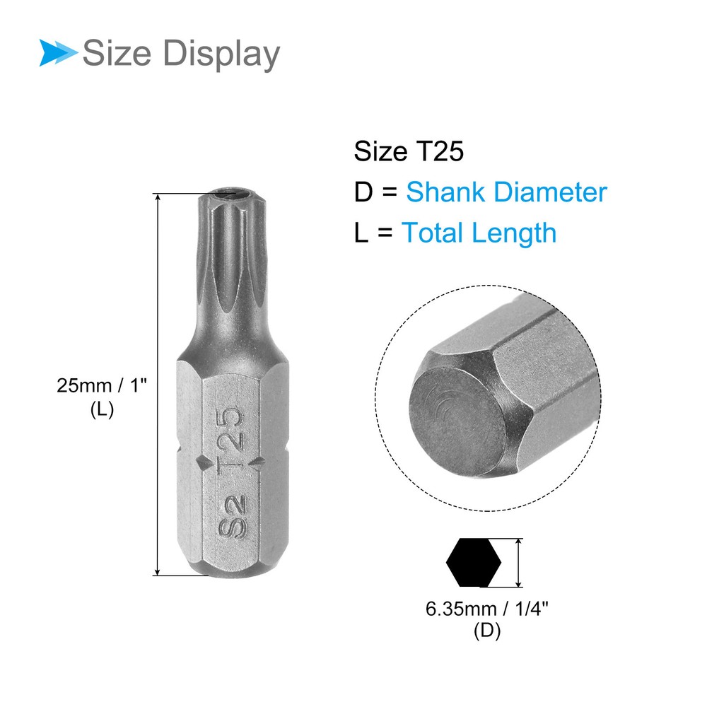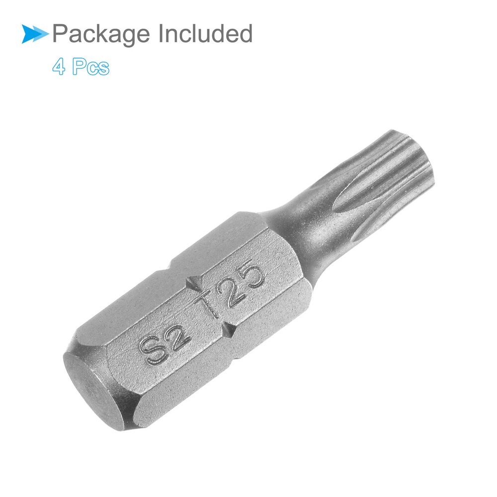 4-Piece T25 Torx Screwdriver Bits 1/4 Hex Shank 25mm Magnetic