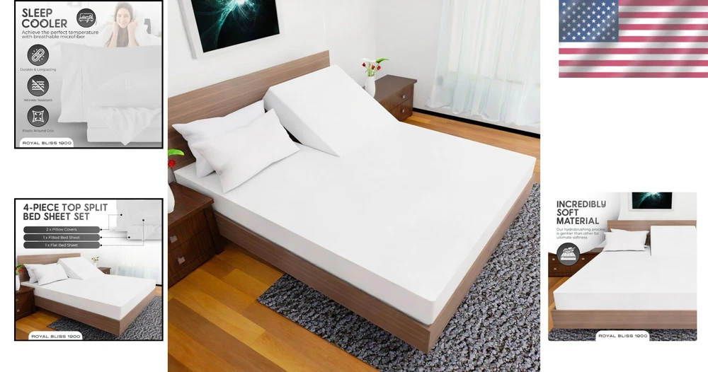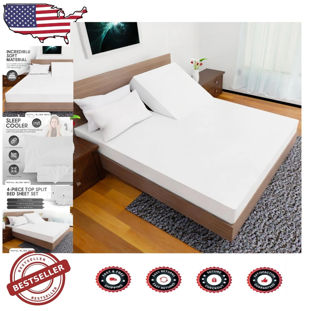 4-Piece Ultra-Soft King Split Head Mattress Sheet Set - Deep Pockets, White ‹ › ‹ › ‹ › ‹ › ‹ › ‹ › ‹ › ‹ › ‹ › 4-Piece Ultra-Soft King Split Head Mattress Sheet Set -Deep Pockets, White Features: Made from proprietary hydro-brushed fabric for unparalleled softness, keeping you cozy in winter and cool in summer. Includes: - 1 King Flat Sheet (108" x 102") - 2 King Pillowcases (20" x 40") - 1 Split Head Flex King Fitted Sheet (80" x 78" x 16" Pocket) with all-around elastic. Extra deep pockets grip and fit mattresses of up to 16 inches. Elastic all-around for a secure fit that stays in place all night. Exceptional quality made with the finest microfiber yarn, free from harmful materials. Wrinkle-resistant and machine washable for easy care. Benefits: Indulge in the luxurious softness that enhances your sleeping experience. Breathable fabric allows for temperature regulation for year-round comfort. Designed to maintain its elegance and quality wash after wash. Perfect fit for split head king mattresses, ensuring a snug and secure fit for uninterrupted sleep. Available in a variety of colors to match any bedroom decor. Why Choose Our 4-Piece Ultra-Soft King Split Head Mattress Sheet Set? If you crave the royal treatment in your sleep space, indulge in our 4-Piece Ultra-Soft King Split Head Mattress Sheet Set. Lavishly crafted from ultra-soft, breathable fabric, these sheets bring a touch of sophistication to your bedroom while ensuring you enjoy restful nights filled with comfort and relaxation. With its wrinkle-resistant design and machine-washable convenience, maintaining your luxurious sleep experience has never been easier. Elevate your sleep sanctuary and embrace the exquisite comfort that awaits. Your royally soft night starts here! Shipping Free & Fast Shipping - We offer free shipping to most of the USA with a normal delivery time of 3-7 days. However, due to the current situation, additional delivery time (up to 3 weeks) may be required for some items. Alternative Carriers - We may use alternative carriers (e.g. USPS, FedEx, UPS, etc.) to ensure your package arrives safely and on time. Due to the use of multiple carriers, we are unable to provide a tracking number automatically. Handling Time - Orders are processed and shipped within 1-2 business days of receiving cleared payment. Shipping Restrictions - Shipping to Alaska, Hawaii, Puerto Rico, Guam, and other US territories may incur shipping charges or delivery restrictions. Please contact us before ordering, or your order can be refunded/cancelled. State Restrictions - There may be restrictions based on your state of purchase. For example, certain items may not be shipped to California due to state regulations. Contact for Tracking Updates - If you require tracking updates or have any concerns about the delivery of your order, please feel free to contact us, and we will be happy to assist you. Return 30-Day Hassle-Free Returns - We want you to be completely satisfied with your purchase. If you are not, you can return the item within 30 days of receiving it for a full refund or exchange. Easy Return Process - To start a return, simply contact us and we will provide you with a prepaid return shipping label and detailed instructions. Restocking Fee - There are no restocking fees for returns. However, the buyer is responsible for return shipping costs if the return is not due to a seller's error. Refund Processing Time - Refunds will be processed within 5 business days of receiving the returned item in its original condition. Payment We accept all major credit cards, PayPal, and Apple Pay for your convenience. Your payment information is secure and encrypted to ensure a safe and seamless transaction. Please complete your payment within 3 days of purchase to avoid any delays in shipping. Feedback Your feedback is extremely important to us. We strive to provide the best products and customer service possible. If you are satisfied with your purchase, please take a moment to leave us a positive review. If you have any concerns or issues with your order, please contact us before leaving negative feedback. We are committed to resolving any problems and ensuring your satisfaction. Contact Us If you have any questions or concerns, please feel free to reach out to our customer support team. You can contact us through the eBay messaging system. We are available Monday to Friday, 9:00 am to 5:00 pm EST, and we will do our best to respond to your inquiry within 24 hours. Buy it now and enjoy a pleasant shopping experience! UPC: Not Set Item Length: Not Set Item Width: Not Set Unit Quantity: 1 count Material: Microfiber Character: Not Set Theme: Winter Features: Machine Washable,Fully Elasticized,Fade Resistant,Deep Pocket,Shrink Resistant,Wrinkle Resistant Care Instructions: Machine Wash Department: Adults Room: Bedroom Labels & Certifications: Not Set Brand: Unbranded Size: Top Split Flex Head King Type: Sheet Set Color: White Pattern: Solid MPN: Not Set Character Family: Not Set Thread Count: 1900 Country/Region of Manufacture: Not Set Style: Modern Shape: Rectangular Model: Not Set GSM (Grams per Square Meter): Over 800 Product Line: Not Set Unit Type: Unit