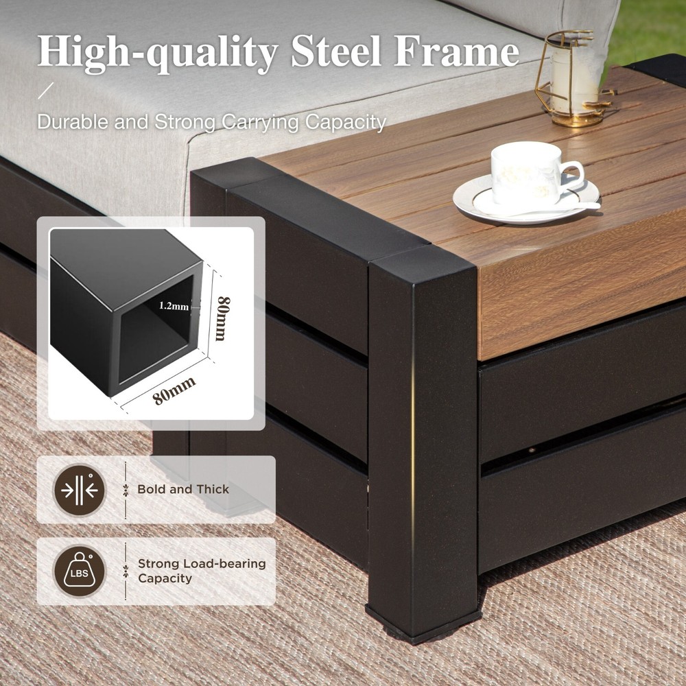 Description: Transform your outdoor space with our sleek Patio Furniture Set! Designed with a modern modular design, this set lets you arrange your furniture in any way you like, making it perfect for gatherings or quiet evenings. The high-quality electrophoretic coating ensures durability and protection against the elements, so you can enjoy your patio all year round. Sit comfortably with family and friends while enjoying the fresh air. Elevate your patio experience and create your personal oasis today! : Feature Transform your living space with our stylish Conversation Sofa Set! Crafted with a high-quality steel frame, this sofa set is built to last while adding a touch of elegance to your home. The beautiful wood grain finish provides a warm, inviting atmosphere, perfect for hosting friends and family. Whether you’re enjoying a cozy night in or entertaining guests, this sofa set is designed for comfort and durability. Upgrade your seating experience today with our Conversation Sofa Set and create lasting memories in style! Our products come with 1-year-warranty, ensuring that there will be no defects in materials and workmanship under normal use. We do our best to hear from customers and update our products. If you have more problems, please be free to contact us.