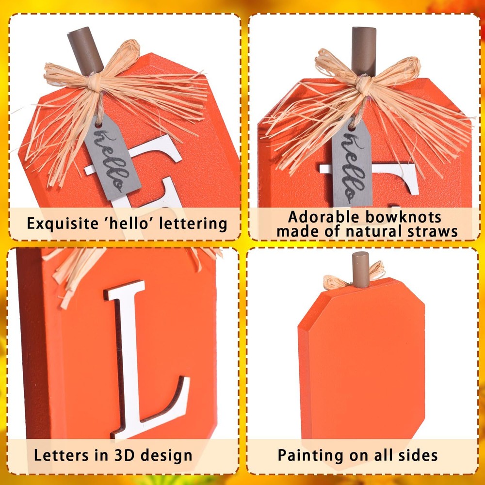 Perfect Fall Decorations - Autumn is the season of harvest, which means good wishes and blessings, has the best designers, this home decor is inspired by fall, belongs to the classic elements of fall, such as colors, straws, to make your environment more seasonal, can add a touch of autumn to the home and office, and bring good luck and happiness. First-Class Quality & 3D Craftsmanship - This harvest pumpkin ornaments are made of high quality wood, which has excellent durability, not easy to be damaged and faded. Compared with the traditional printing process, this fall ornament adopts 3D technology, The four letters of ''FALL'' will be presented on top of each base plate, which is more vivid. Let us help you, bring fall home and enjoy the romance and warmth of fall together. Special & Very Distinctive - With fall colors paired with an octagonal shape, this Thanksgiving decor looks new and interesting, giving it a warm, cozy feel. In the fall, this natural beauty complements the atmosphere of the season and makes you feel like you are in nature. The cute bow made of natural straws and the letter F with a small “hello” tag, “hello FALL” expresses your love for fall. Holiday Surprises & Gifts - This wood pumpkin block hello fall decor is ideal for fall and Thanksgiving, helping you to convey love and blessings to your family, friends and lovers. It is also a perfect gift for your husband, wife, son, daughter, colleagues and so on at any festival, especially Thanksgiving, to let them know that they are very important to you. Great Artistic Value & Excellent Applicability - This is an amazing decorative item, you can very easily place it on a table or flat surface, suitable for home, bedroom, living room, office, store, restaurant, shelf, tiered tray, classroom and so on, decorate your space with a sense of atmosphere. If you have any questions, we provide 24 hours online service.