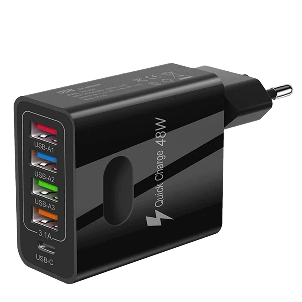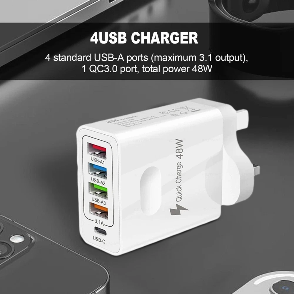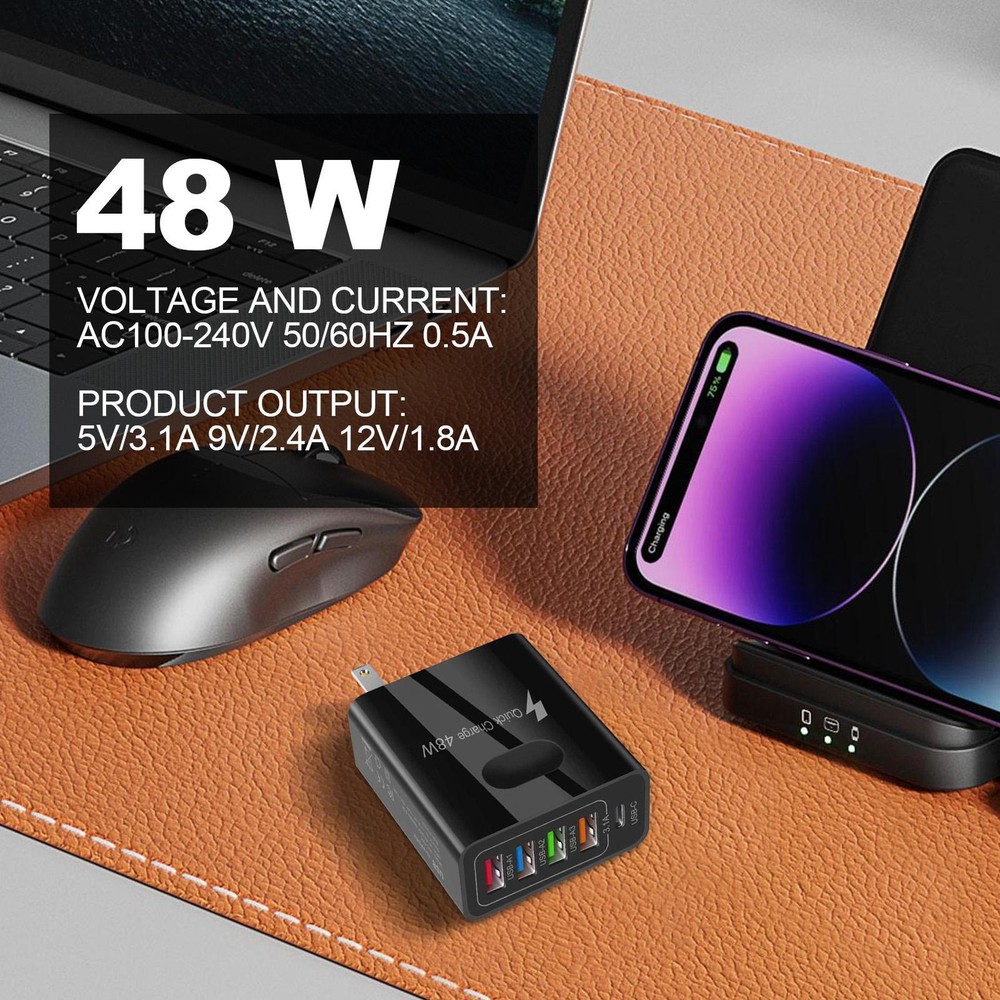 Multi Port 4 USB + 1 PD Hub Charger Station Tower Wall Charger Power Adapter Bullet Points: Multi-Port Phone Charger: With a 1 QC3.0 port and 4 USB A ports(maximum 3.1 output), this 48W car adapter makes charging faster and more efficient. Plus, the 5 ports design allows you to charge multiple devices simultaneously so you can stay connected outdoors without any hassle. No more messy cables. Device Protection: Our multi-port phone charger provides unbeatable safety measures, including security intelligent protection against overload, overcharge, overcurrent, and short-circuit. Don't worry, your devices are kept safe and sound. Enhanced Charging Convenience: Keep your devices charged on-the-go with this multi port phone charger! Designed for universal compatibility with portable game devices, smart watches, headsets, USB fast charge tablets, and all modern phones, this portable charger is a must-have for frequent travelers. Ensured Protection: Guaranteeing safety for extended use, this multi-port phone charger is crafted with fire-resistant ABS material for exceptional durability and anti-drop assurance. Thoughtful Design: Enjoy a multi port phone charger that is both lightweight and small in size, making it easy to take it with you wherever you go. Don't let its small size fool you - it's convenient to store and carry, ensuring you have power on-the-go. Power up multiple devices simultaneously with our 48W Multiport USB Wall Charger. This adapter ensures safety and stability with universal compatibility. Keep your devices safe and organized without taking up much space. Perfect for home or travel use. Product name: 4 USB+PD mobile phone charger Product material: ABS Voltage and current: AC100-240V 50/60Hz 0.5A Product output: 5V/3.1A 9V/2.4A 12V/1.8A (multi-port use average split current 3.1A/4) synchronous rectification scheme Product Size: EU regulation: 55*28*100mm/2.16" x 1.10" x 3.94" US regulation: 55*28*80mm/2.16" x 1.10" x 3.15" UKregulation: 55*50*85mm/2.16" x 1.97" x 3.35" Package List: Multiport USB Wall Charger *1 Notes: Due to the lighting effects and camera angles, the color of the item and that shown in the picture might have a nuance. Due to manual measurement, there might be a tolerance in the product size. Payment should be completed within 2 days after auction closed, or unpaid dispute will be filed for an closing auction. An unpaid case will be filled after 4 days ● We strive for 100% customer satisfaction ! ● Positive Feedback is very important to us. ● We hope that you contact us immediately BEFORE you give us neutral or negative feedback, so that we can satisfactorily address your concerns. ● We promise to offer the lowest price and high quality produce. Our working time: Monday to Friday (9:00 am to 18:00pm)(Beijing Time) Saturday (9:00 am to 12:00am),except International Holiday. Dear buyers : ● Welcome to my store ! ● Your satisfaction is our top goal,we appreciate your patronizing. ● If you have any questions, please contact us before leave negative or neutral feedback, we will try our best to solve the issue to your satisfaction, thanks ! ● If you are satisfied with our service, please rate the details of the transaction (Detailed Seller Ratings) on eBay. ● Please always talk to us via ebay Message . ● We appreciate your business and look forward to growing our e-Bay sales with satisfied customers.