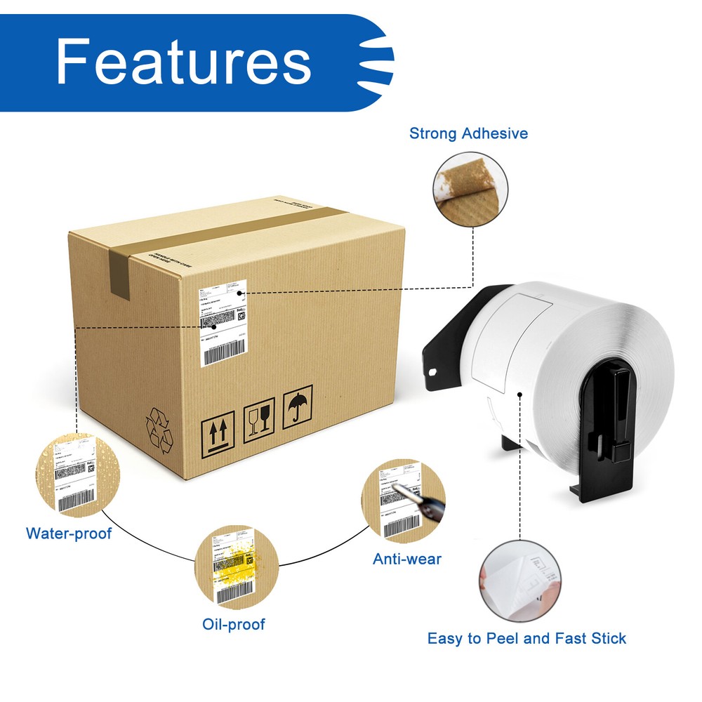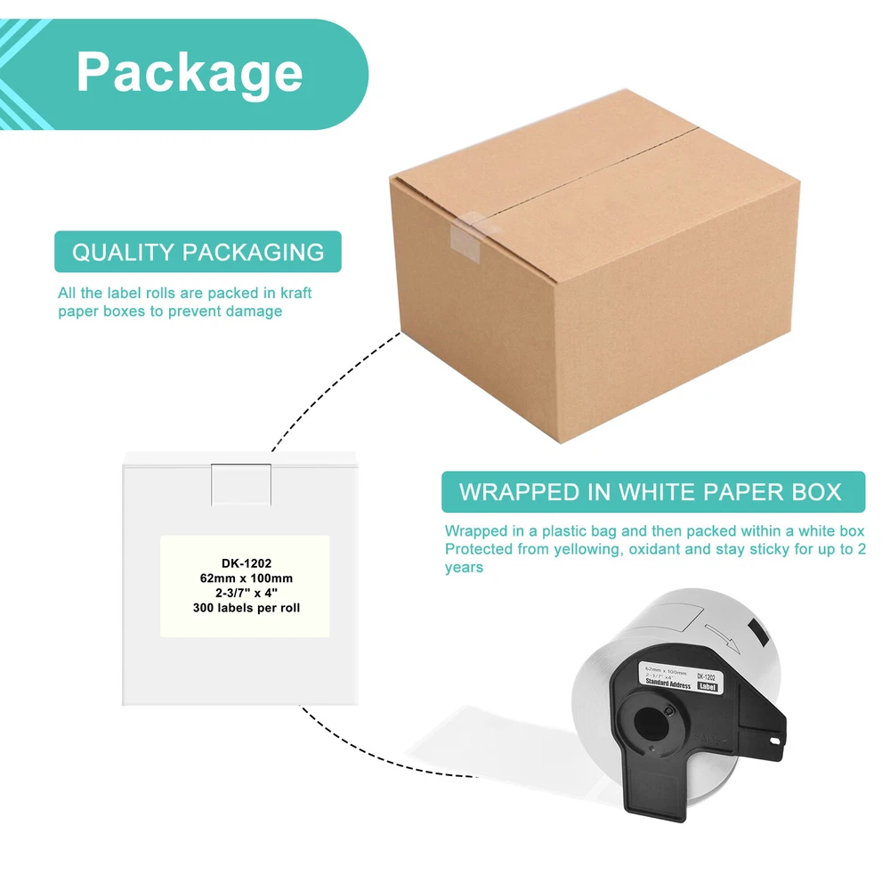 MPN: DK-1202 gtin13: Does not apply Compatible Model: QL-1050/1050N/1060N/500/500EC/550/570/570VM Type: Die-cut shipping labels UPC: Does not apply Brand: 9leafclover Label Type: Address Length: 100mm(4") Width: 62mm(2-3/7") Usable Labels: 300 Labels Per Roll Country/Region of Manufacture: China Compatible Printer Brand: for Brother Printer
