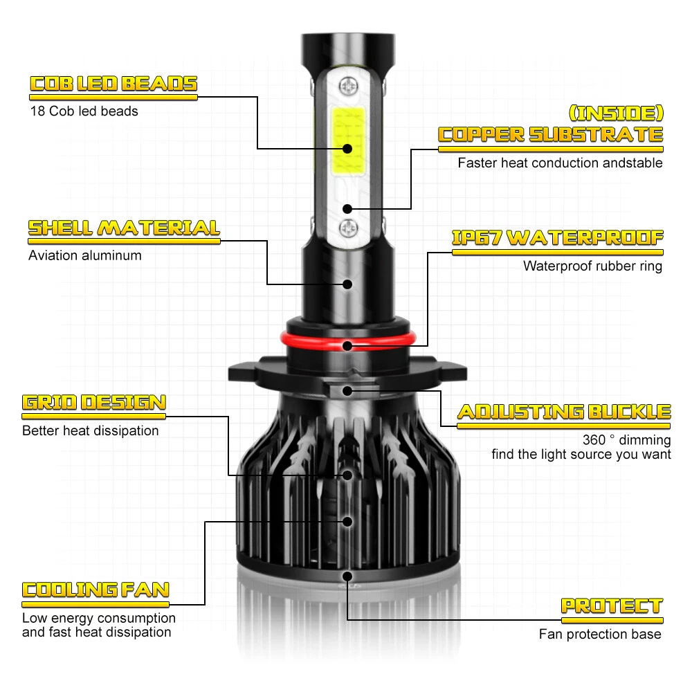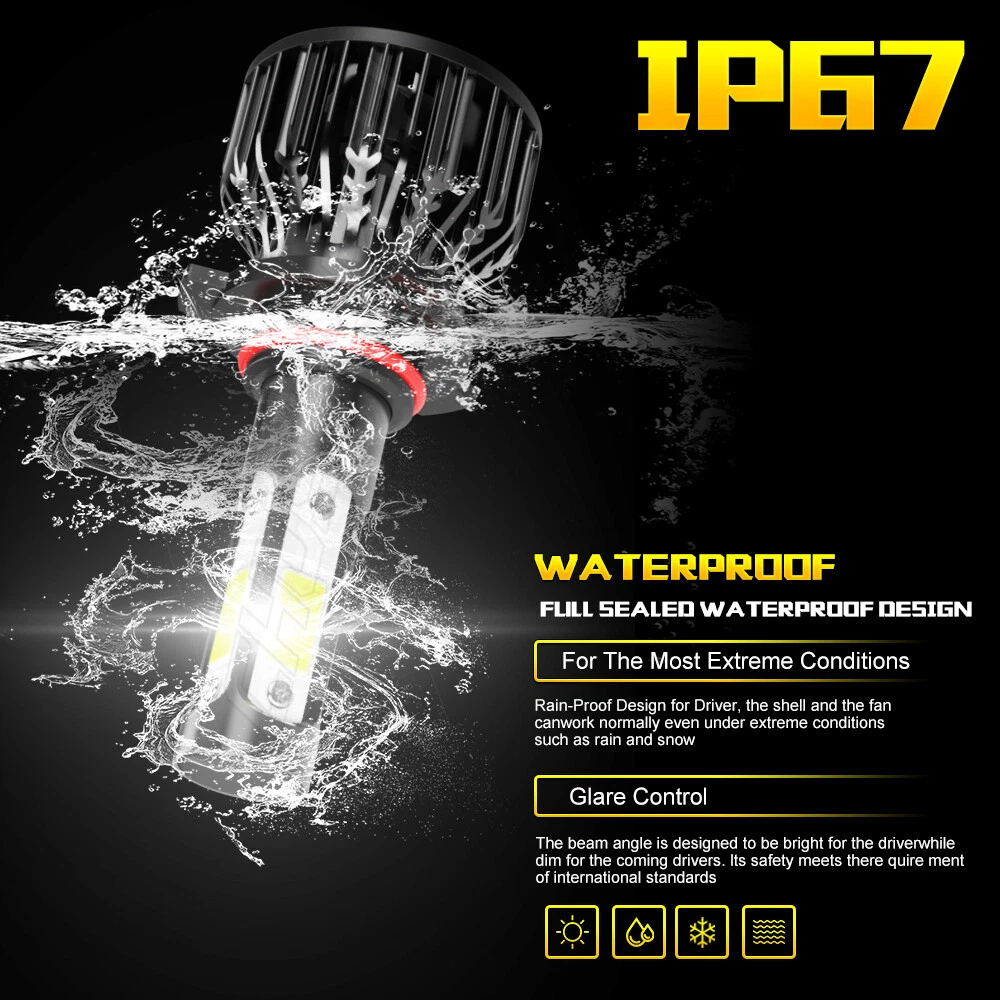 nformation: a)Compatible List can not show up all Car model. Please check the Correct item size of your vechicle. it will work and fit.Thank you! b)If you are unsure the item fit or not , please do remember send message to tell us your car make, model, year and other information which is helpful to check the item fit or not.For example: For 2004 Ford F 150, high/low beam For 2015 RAM 1500 with projector-type, high beam For 2019 Ford F 150 ,XL Crew Cab Pickup 4-Door 2.7L LED Quantity(each bulb): 4pcs*COB chips Operating Voltage: DC 9-32V(fit 12V,24V vehicles) Power:450W/Set,225W/Bulb Lumen:108000LM/Set,54000LM/Bulb Color Temperature: Pure White 6000K IP67 rated water and dust seal,over 50,000hrs lifetime Beam Angle: 270 degree@low beam,360 degree@high beam Material: Aviation 6063 aluminum profile Operating Temperature: -40-80 degree Celsius Usage: Headlight, Fog light Two-way heat dissipation channel 1.All-in-one aluminum profile as heat conduction system, 360 degree heat radiating 2.High speed mute fan (12000R/Min),high Air flow for faster cooling rate Package Included: 2x LED headlight bulbs 1x Packing Box Warranty: 5-Year warranty How to choose the correct size? To confirm the size in your original user manual or by checking the original bulb's back. To search in Google with “automotive bulb look-up “and find out the bulb size. To select your vehicle model in the filter system of our product detail page.(The filter system may not be 100% accurate, if you are not sure about the size, please make sure with us before purchasing) FREQUENTLY ASKED QUESTIONS OF LED 1.How can I find the right LED bulbs for my vehicle? Search for the vehicle year, make, model and the installation position in our store. If you are not sure about that, please contact us via ebay message with your vehicle year, make and model. Let us know which LED bulb you're interested in, so we can check the fitment and get back to you as soon as possible. 2.Will this bulb fit my vehicle? We can match almost any vehicle to one of our bulb sizes. eBay only lets us include 3,000 vehicle fitments per listing, but if your vehicle does not show up on the compatibility table at the top of our listings, welcome you to contact us for free consulation before purchasing a product. 3.I bought the wrong items/ the items were not compatible with my vehicle. Please contact us via ebay message to get quick support. 4.Neither side lighting up? Both sides flicker, flash, or work inconsistantly. Check the headlight fuses, and then check the ballast plugs to insure correct installation. If this doesn't work, there may be a voltage problem with the vehicle. You probably just need a relay or capacitor. 5.One side could not work? 1)please turn around the plug (swap the polarity) of the defective bulb and try again. 2)please exchange the bulbs from side to side and see if the problem could solve. 3)Please check your connection and fuse. 4)If still could not help, please contact our customer service, we will get back to you within 48 working hours. On Nov 13, 2024 at 06:36:56 PST, seller added the following information: