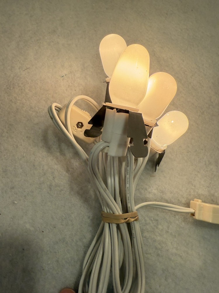 Will not guarantee life of bulbs due to used condition. Bulbs are working and tested at time of sale. C7 4 Socket Light Cord Set Dept 56 Lemax Christmas Village Sets On/Off Switch A15