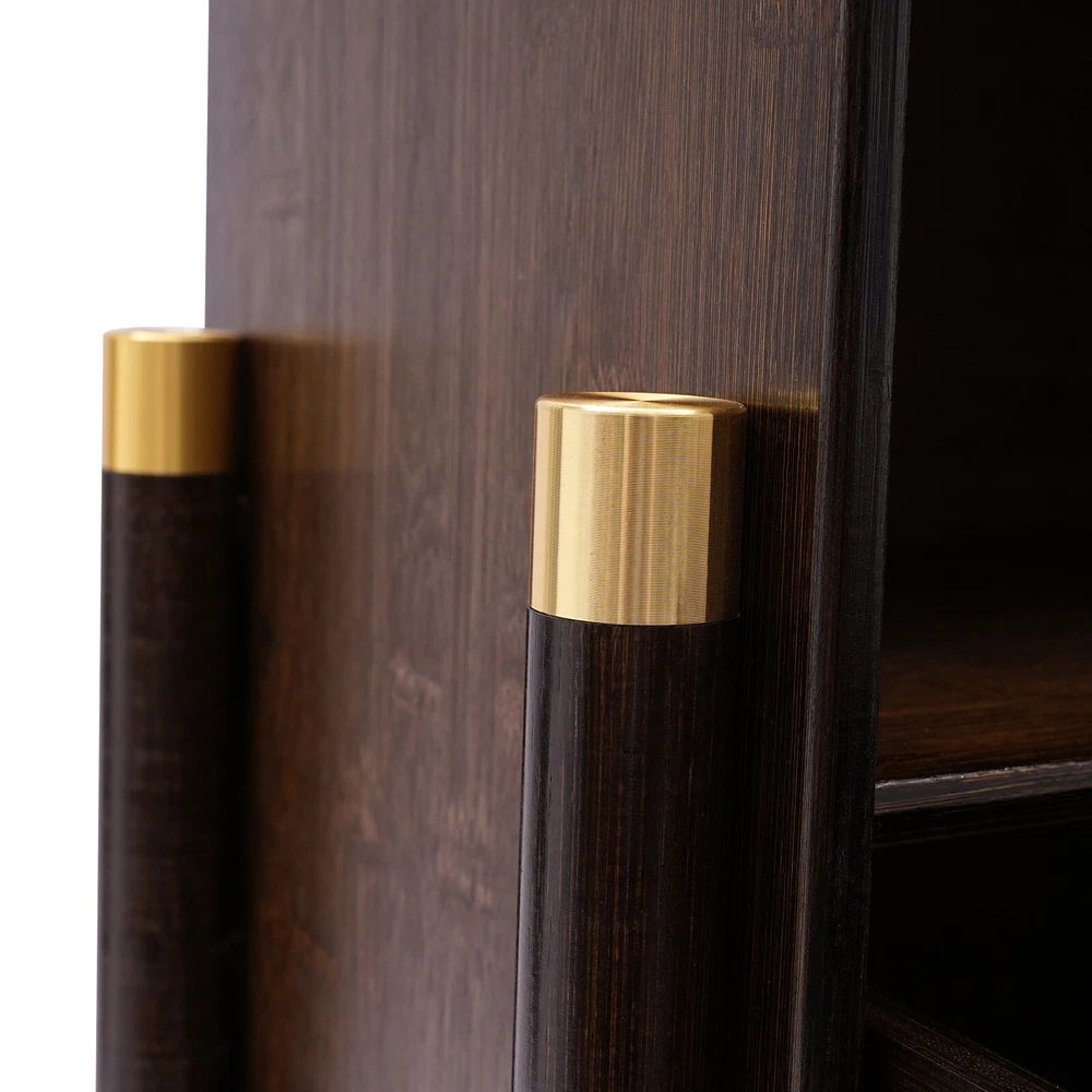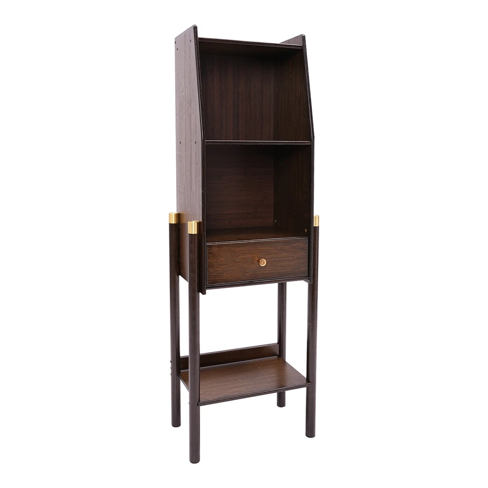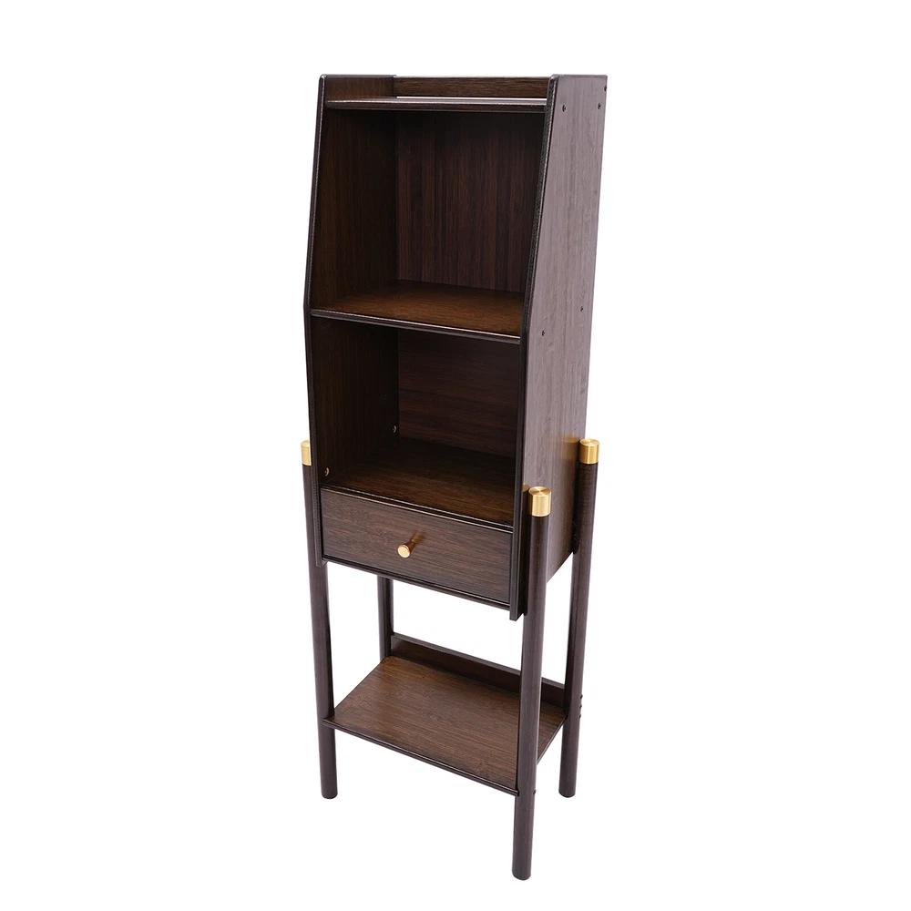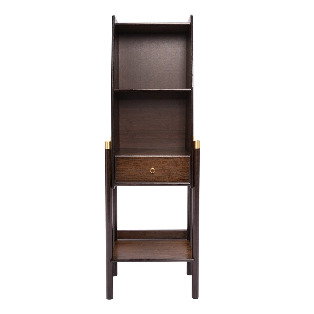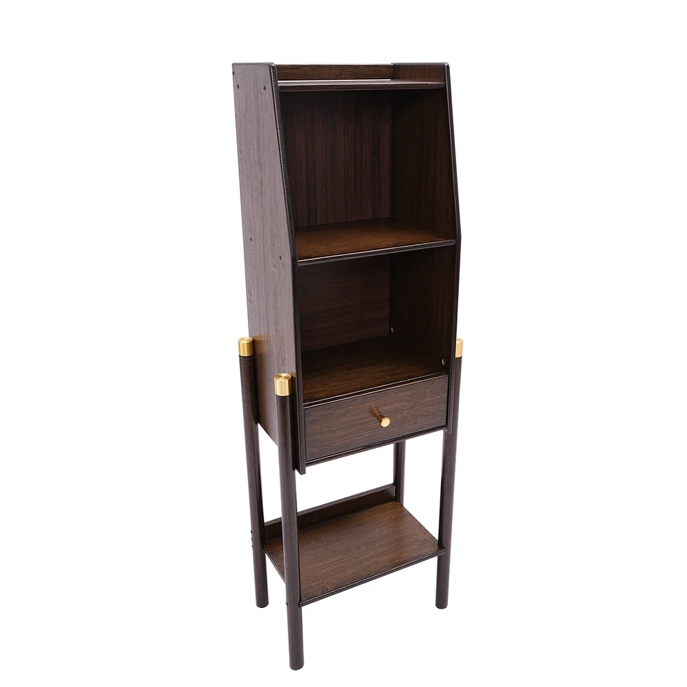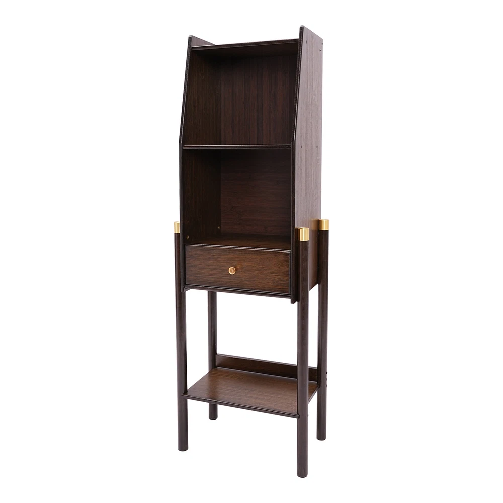 Style: Modern Brand: Unbranded Item Height: 45.7 in Suitable For: Books Color: Walnut Item Width: 10.2 in gtin13: Does not apply Maximum Weight Capacity: 132 lb Type: Bookcase Shape: Rectangle UPC: Does not apply Material: Bamboo Number of Shelves: 4 Room: Home Office/Study Item Length: 15 in