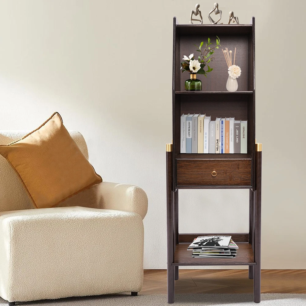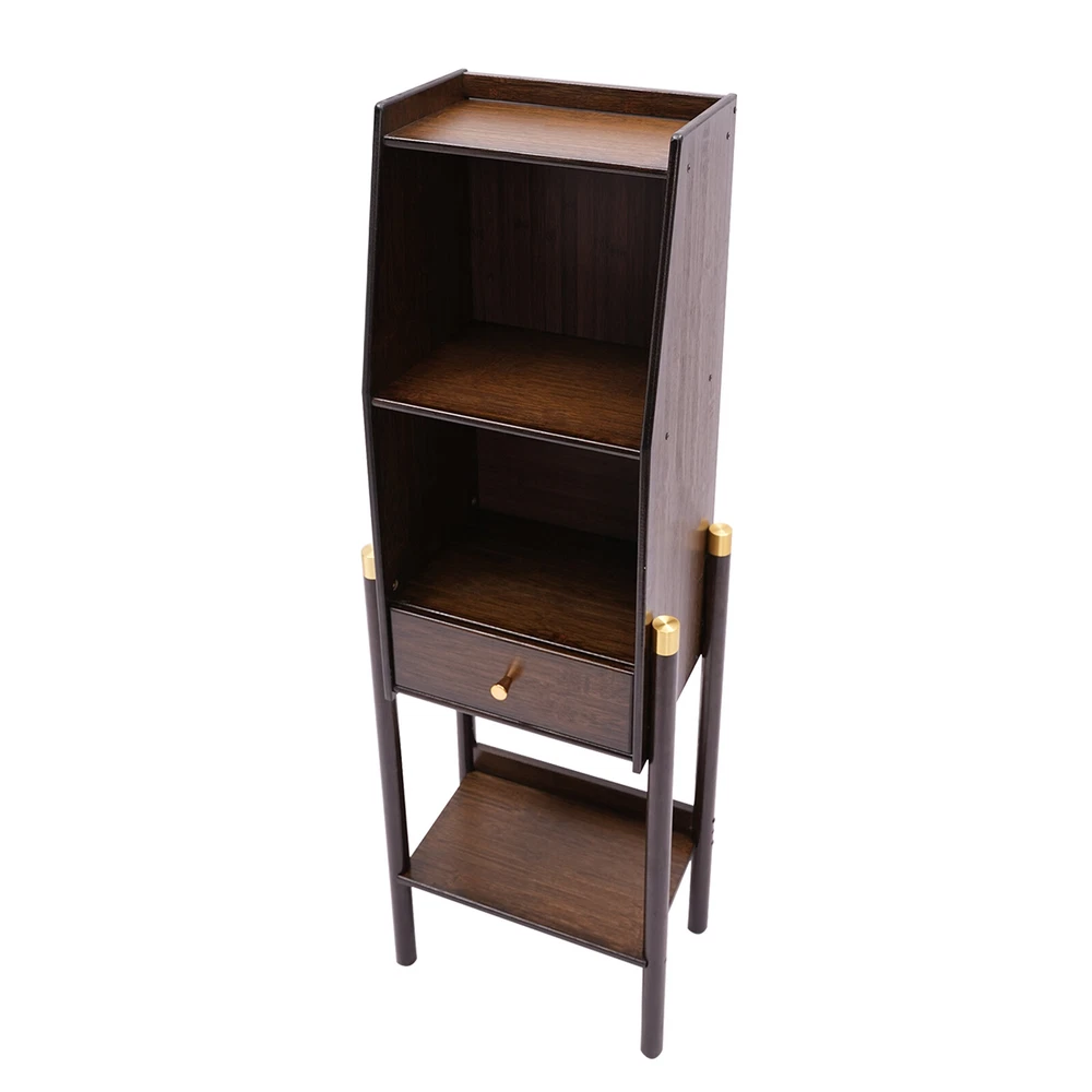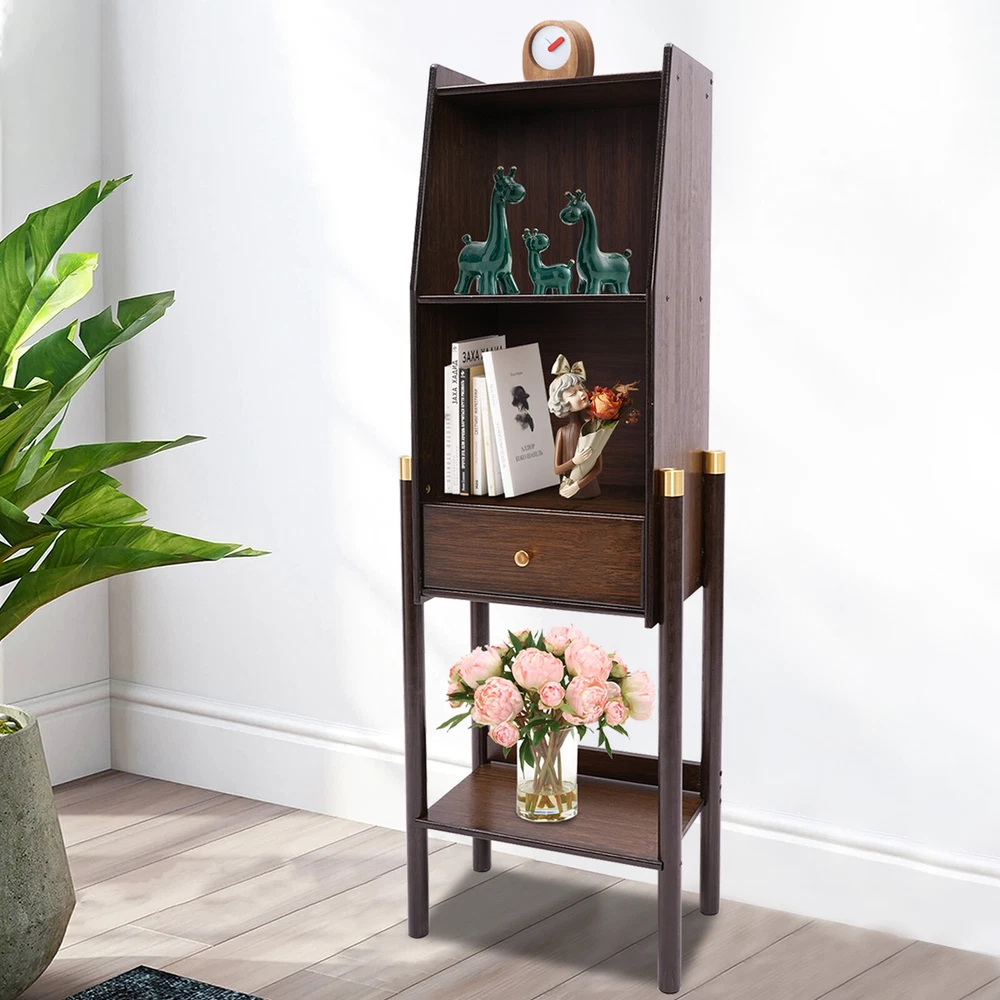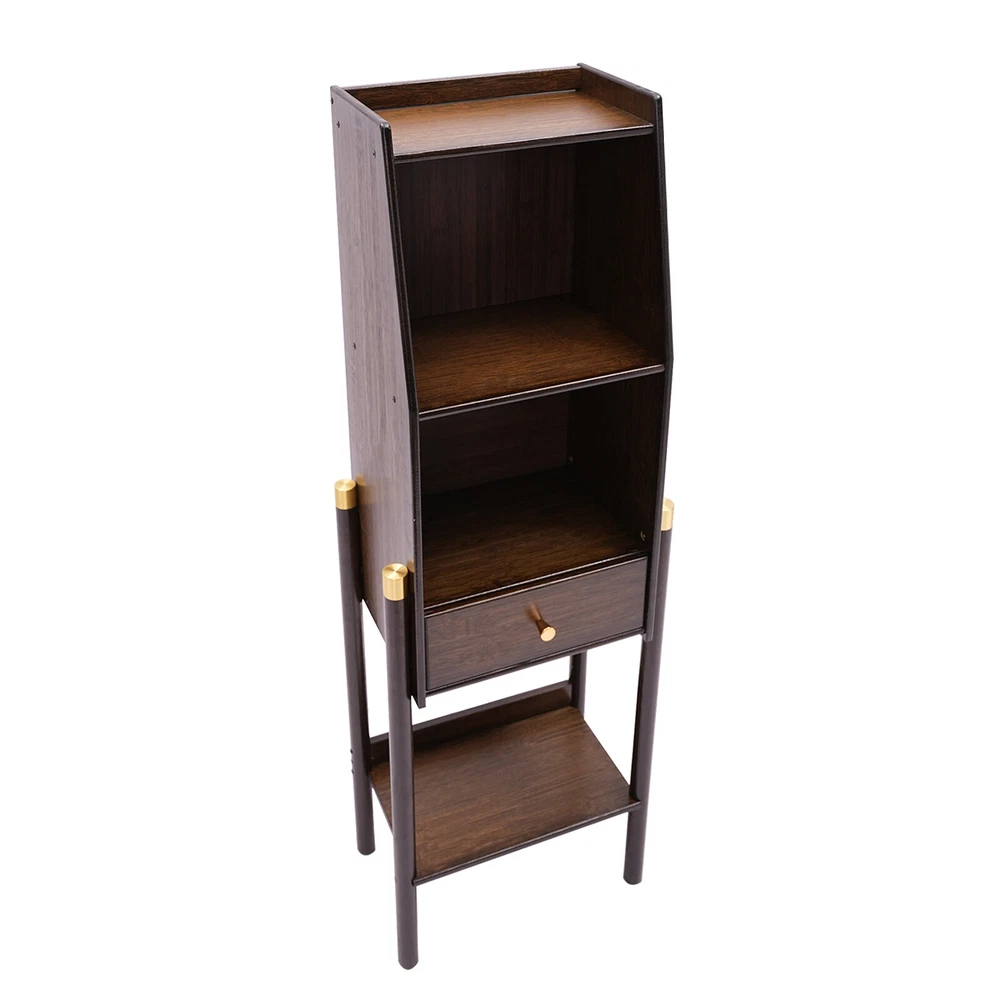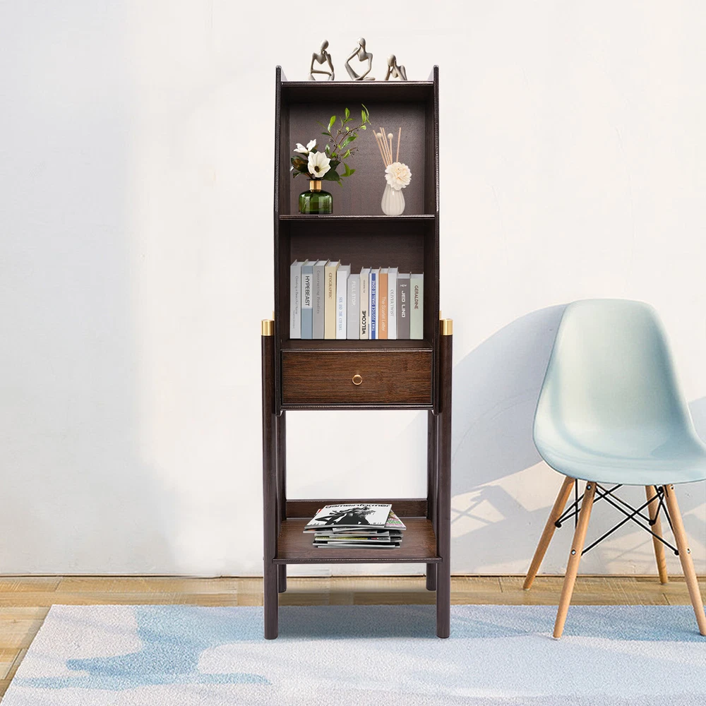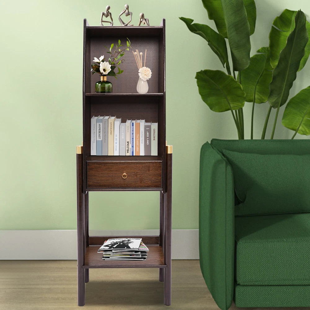 4-Tier Bookshelf Bamboo+Density Board Display Rack w/ Drawer Freestanding Shelf