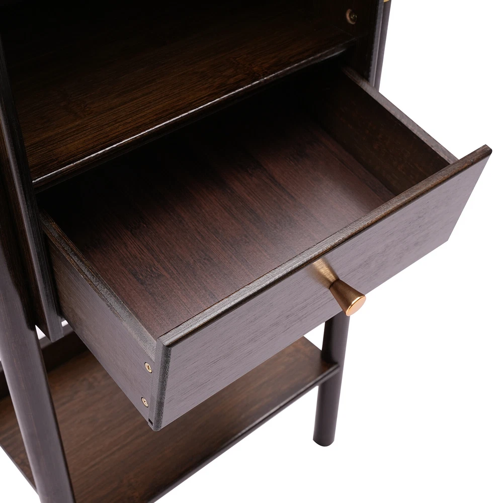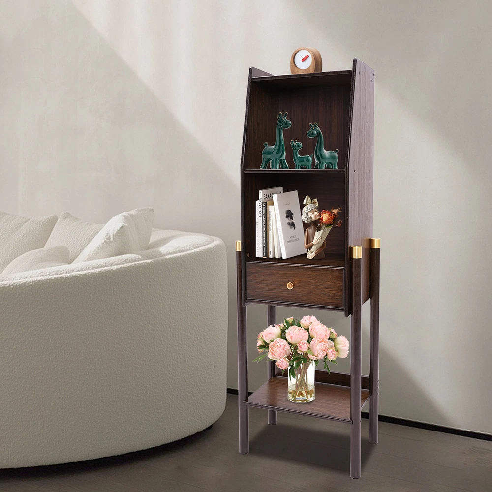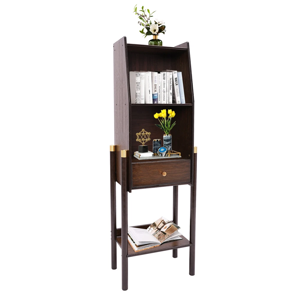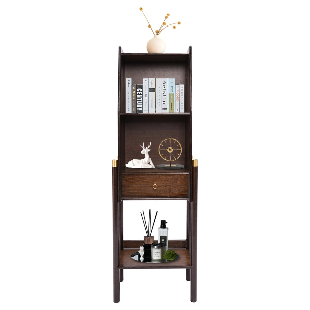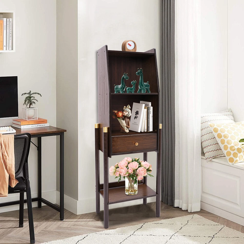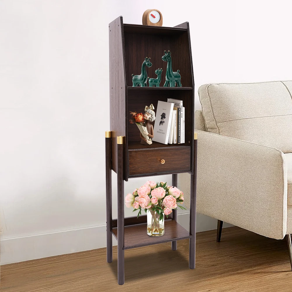 4-Tier Bookshelf Bamboo+Density Board Display Rack w/ Drawer Freestanding Shelf