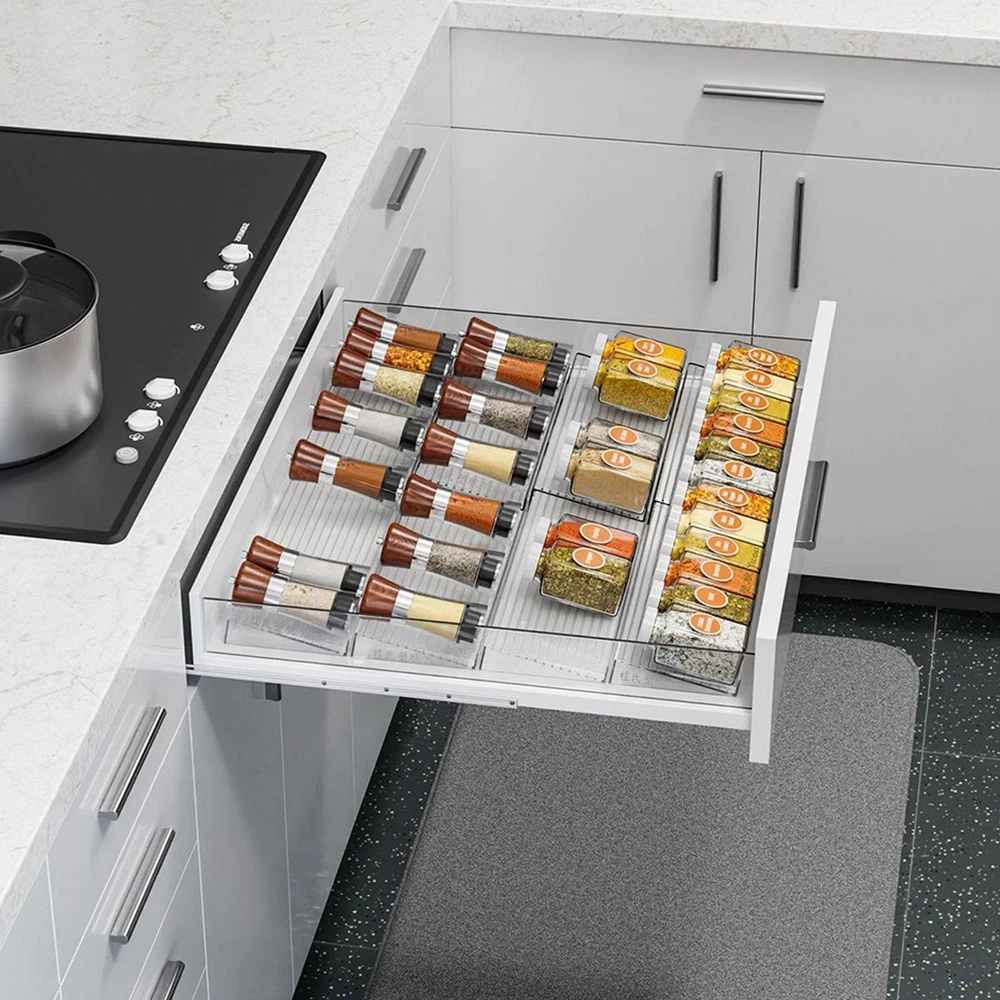 Spice Drawer Organizer, 4 Tiers Clear Acrylic Slanted in Drawer Seasoning Jars Product Description Bullet Points: Easy Bottle Arrangement: Featuring a step-like design with staggered storage, this organizer provides effortless access to seasonings and optimizes space-saving efficiency, accommodating multi-size bottles in an orderly and functional arrangement Convenient Seasoning Storage: Featuring four independent sections and an adjustable layout, this organizer provides wide drawer compatibility, with stackable components and raised anti-slip edges to keep contents securely positioned during daily use Versatile Bottle Compatibility: With the ability to store up to 24 bottles, this organizer delivers high-capacity storage and improves kitchen functionality by keeping seasonings neatly arranged and easily accessible in a compact unit Dependable and Easy to Clean: Crafted from sturdy materials, this seasoning drawer organizer resists deformation and rust while providing a smooth texture that provides easy cleaning and long-lasting use for your kitchen must-haves Effortless Seasoning Access: Featuring a ladder-style design, this organizer improves visual accessibility, enabling quick retrieval and a user-friendly layout to modernize kitchen tasks effectively This four-piece seasoning drawer organizer is expandable and stackable, providing versatile storage solutions. Designed to optimize kitchen, pantry, and cabinet spaces, it works suitablely for condiments and cooking items. Suitable for homes, RVs, apartments, rental houses, and restaurants, it keeps countertops easy with ease. Specifications: Product name: Drawer seasoning rack Product size: as shown in the pic Material: Polystyrene Packing List: 4 pieces * seasoning drawer organizer Note: Due to different lighting and screen settings, the item color may be slightly different from the picture. Due to different manual measurements, please allow a 1-2cm difference in size. Payment 1.PayPal is a preferred Payment method. 2.You can make a Credit payment via Paypal.Paypal will let you use MasterCard,Visa to pay. 3.Payment should be completed within 3 days after auction closed, or unpaid dispute will be filed for an closing auction.An unpaid case will be filled after 4 days. Delivery details 1. We ship to many countries. 2. Delivery Time: Ship from China via Speedpak to US (takes 8-12 days) Ship from China via others shipping method to other countries (takes 15-60 days) 3. If you want to choose another address, please leave us a message on ebay.Please check your shipping address carefully before checkout,it can't be changed if order completed. Seriously promise:Refund or resend will be offered if item still not arrive in 7-10 business days. Just send us an email,we will give you a satisfied solution as soon as possible. Return policy 1.All item comes with Basic 3 Months Sellers Warranty, if item defective in 3 months,We will offer replacement without extra charger (including shipping fee) After we receive the defective item. If item Defective after 3 Month, Buyers can still send it back, We will contact suppliers or Manufactory for Warranty. Buyers Might Need pay the Shipping fee For resend the replaced item. 2.If item DOA(Dead of Arrival), Buyers can return it in 30 Days, we will replace it with new item after we receive DOA item. Please Contact us Before you sent the item back. 3.All item can be returned for exchange only. The buyer has responsibility for all return shipping including DOA or defective return. About Feedback When you receive the item and satisfied with the product, please leave positive feedback and 5 scores DSR. We will leave a 5 Scores DSR feedback for you. If, for any reason you are not satisfied with your purchase, please contact via Ebay Message and we will do our best to resolve it. Please don't leave neutral or negative feedback without any communition with .
