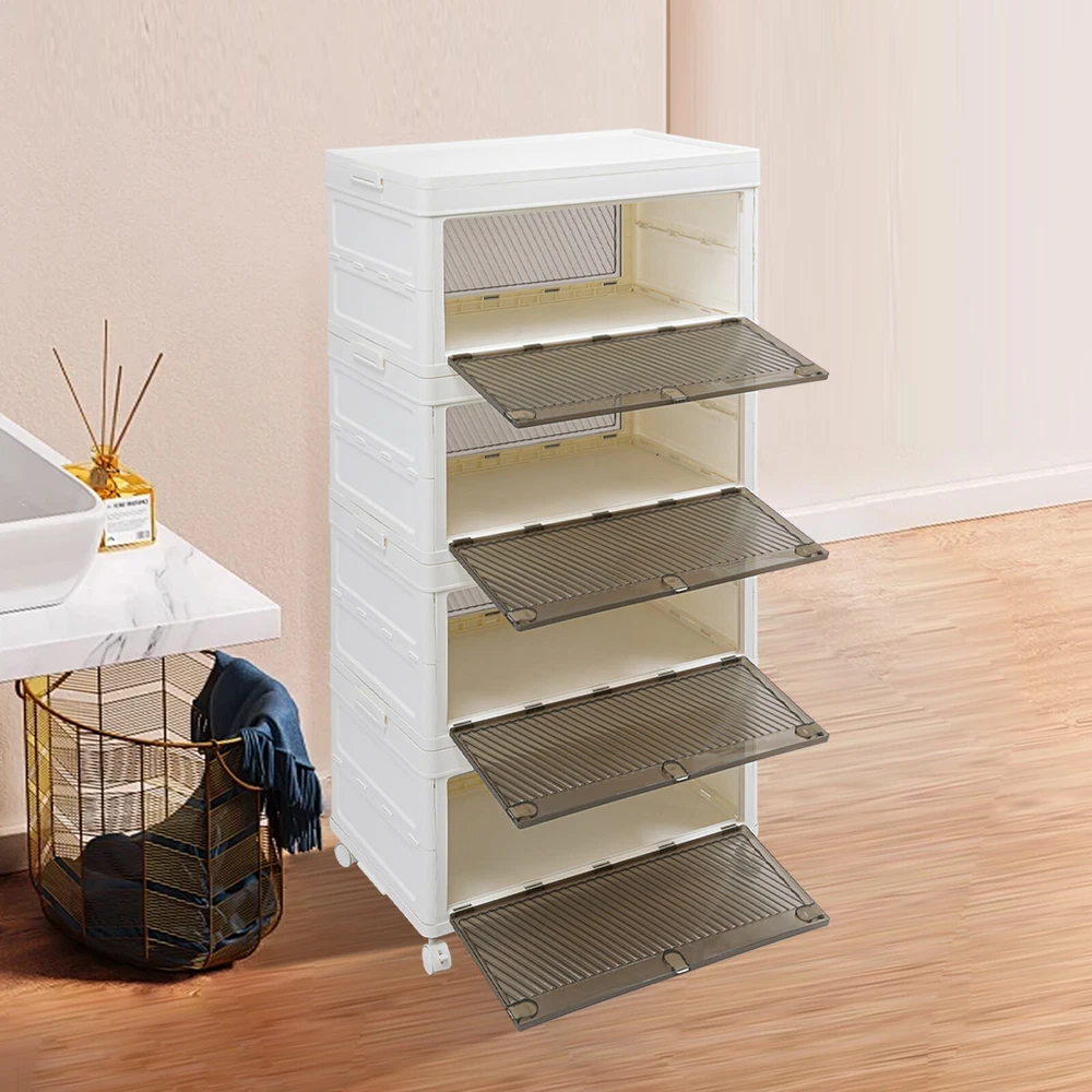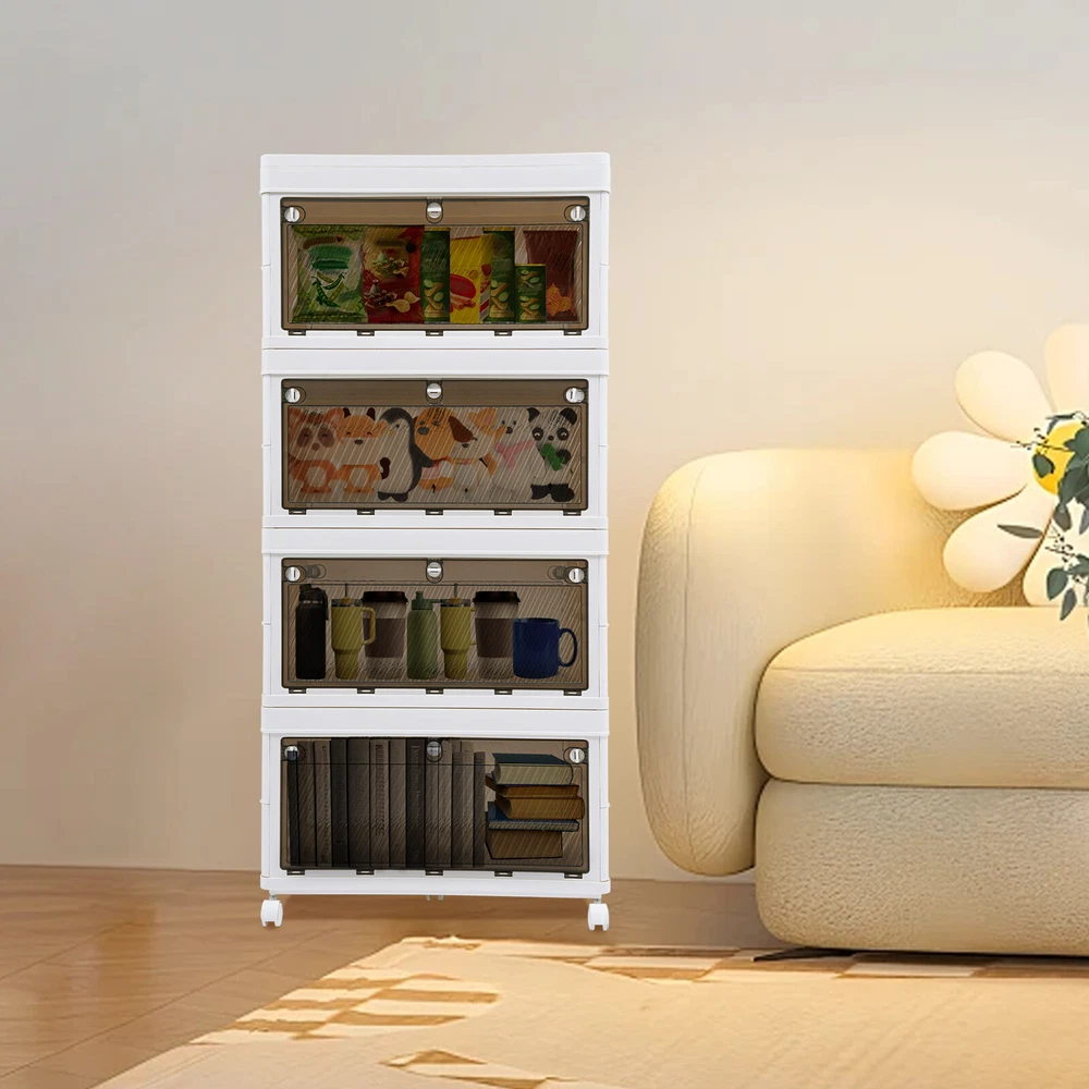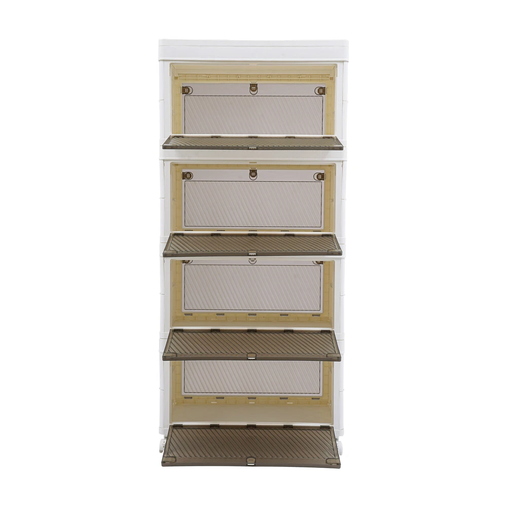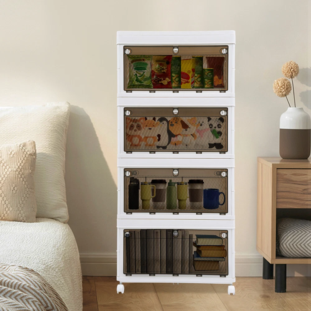 welcome to my store! Description Description Are you troubled by home storage? Are you looking for a storage cabinet that is both practical and easy to move? Our 4-tier foldable storage organizer will be your ideal choice, making your home environment instantly tidy and orderly. The spacious design makes it superior in storage capacity, meeting your diverse storage needs. It is a home storage artifact that combines space optimization, convenient mobility, durability, and thoughtful design. Choosing our product means choosing a more organized and convenient way of life. Key Features Made to Last: This product is made of premium PP, treated with an injection molding process, which is sturdy, impact-resistant , scratch-resistant , and rust-resistant , ensuring long-term aesthetics and practicality. Modern Appearance: The pleasing white and tan color scheme, simple appearance , and smooth lines add beauty elements to your room. It plays a unique decorative role while using, bringing an exquisite charm into your home. Spacious Space: It has a 4-tier design, which is enough to easily store clothes, snacks , cosmetics, and other items(not included), making your room cleaner. Foldable Design: It can be quickly folded flat when not in use to be placed in the corner of the room or car boot to save storage space. User-friendly: Unlike magnetic buckles, the door panel of this product adopts mechanical buckles, which have better locking mechanisms and will not easily pop out. In addition, it can be opened from the front door and rear door, both of which can conveniently retrieve items from different directions, providing you with convenience. Easy to Move & Fix: Four universal wheels (two with brakes) make the whole product easily moved from one place to another and can be fixed at will, greatly enhancing efficiency and convenience. Visible Design: The translucent doors allow you to quickly search for items while ensuring that internal items are not completely exposed, providing a certain level of privacy protection. Free Assembly: The modular design allows you to freely choose the number of tiers to assemble, fully adapting to different storage needs and space layouts. Effortless Cleaning: It has a smooth surface and a simple structure, so you only need to wipe the dust or residue with a towel. Ideal Gift: With good performance and a modern appearance, it can be used as an ideal housewarming gift for parents, friends, and lovers so that they can also enjoy a more exquisite and convenient life. Good Customer Service: We aim to provide quality products and services. If you have problems, please feel free to contact us. We will reply and solve the problem for you as soon as possible. Details Raised Bottom: It is conducive to moisture resistance and facilitates cleaning. Side Buckles: They make each tier of the organizer firmly fixed, and improve the stability of the product. Smooth Edges: They no t only increase the beauty of the product but also improve the safety of use. Application It is used to store clothes, books, cosmetics, toys, snacks, perfume, and other items(not included). It is suitable for a bedroom, children's room, kitchen, laundry, dormitory, and other places. Specification Color: White Material: PP Process: Injection Molding Style: Modern Number of Tiers: 4 Assembly Required: Yes Mount Type: Freestanding Type of Wheels: 4 * Universal Wheels (2 with Brakes) Total L oad-bearing Capacity: About 10-15kg/22.05-33.07 lbs (For Reference Only) Product Size: 62*38*132cm/24.41*14.96*51.97 in Package Size: 62.5*32*40cm/ 24.61 * 12.6 * 15.75 in Gross Weight: 10kg/ 22.05 lbs Net Weight: 9.5kg/ 20.94 lbs Package Included 1* 4-tier Foldable Storage Organizer 4* U niversal Wheels Notes Please note that this product does not include other storage items shown in the picture. Please use within the load-bearing range of the product. Please allow the slight color difference caused by the shooting light and 1-3cm error due to manual measurement, and make sure you do not mind before ordering. Payment Delivery details Terms of sales About us Contact us Payment We accept ebay payment 。 Fees such as import duties, taxes are not included in the item price or shipping costs. These charges are the buyer's responsibility. Delivery details Shipping: 2-9 working days to: USA Terms of sales We maintain high standards of excellence and strive for hundred percent customer satisfaction. Feedback is very important to us. We hope that you contact us immediately before you give neutral or negative feedback, so that we can address your concerns. It is impossible to address issues if we do not know about them! About us Your satis faction is our ultimate goal. We work hard to earn your trust and future business. Our certified technicians have tested each item before shipping. The unit comes with 1 year limited warranty on all manufacturing defects. a) If you receive a defective item, you may return it or ask for a discount. Please contact us within 14 days after you receive the package. b) What you returned must be intact and in its original packaging as re? u. Customer is responsible for shipping costs of the returned item. c) We will cover the cost of shipping back t with the shipping rate indicated in the registration page. We will send you a new unit or refund the full payment you paid. Thank you. Contact us Business Hour Business Hour: Monday To Friday: 8:30 AM to 5:00 PM (Beijing China time) Due to time zones, our reply to your questions may not be immediately. But within above working time, we will reply your email within 24 hours. If it's non-workdays, please kindly be patient and wait till Monday. Please contact us with ebay message. Please feel free to contact us if you have any questions. Monday To Friday: 8:30 AM to 5:00 PM (Beijing China time) Due to time zones, our reply to your questions may not be immediately. But within above working time, we will reply your email within 24 hours. If it's non-workdays, pleas