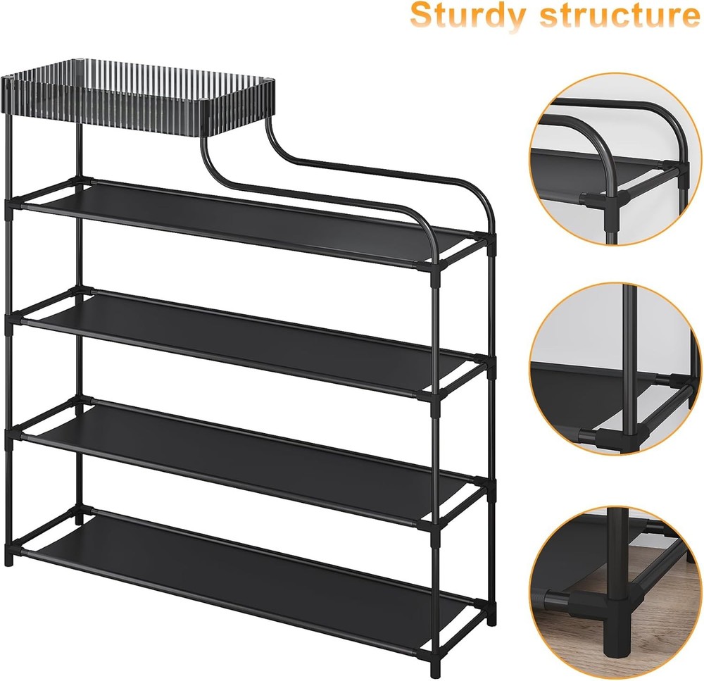 This shoe rack is a total game-changer for my cluttered hallway! It holds all our family's shoes neatly, from boots to sneakers, and the extra storage box on top is perfect for umbrellas and small bags. The sturdy metal and canvas construction feels really durable, and it was surprisingly easy to put together. Finally have an organized entryway!