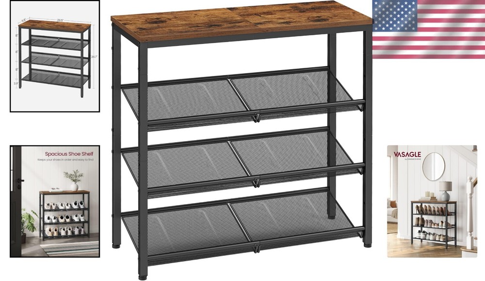 4-Tier Shoe Rack with Adjustable Shelves - Stylish Industrial Entryway Storage ‹ › ‹ › ‹ › ‹ › ‹ › ‹ › ‹ › ‹ › ‹ › ‹ › 4-Tier Shoe Rack with Adjustable Shelves Stylish Industrial Entryway Storage Key Features: Holds More Shoes: This sleek and modern 4-tier shoe rack is designed to accommodate 12-15 pairs of shoes effortlessly; with an 8" distance between each of the 3 mesh shelves, it's perfect for heels and high-top sneakers. Reliable Support: With a maximum load capacity of 60 lbs on the top surface, this piece can hold bags, frames, books, and decorative items, while each shelf supports up to 25 lbs to secure your footwear safely. Worry-Free Storage: Each shelf offers adjustable positioning—flat or angled—by utilizing different screw holes on the side frames, allowing you to optimize display and storage. The raised edges ensure your shoes remain secure and your walls stay clean. Solid Yet Stylish: Crafted from a blend of sturdy particleboard and steel, this shoe rack boasts a robust structure complemented by a striking rustic brown and black finish, adding an industrial flair to any entryway. Easy Assembly: Enjoy a straightforward assembly process with clear instructions and labeled parts, making this shoe rack ready to organize your space in no time. Benefits: Maximizes storage space while maintaining an elegant aesthetic. Adjustable shelves custom fit your shoe collection. Heavy-duty design ensures stability and longevity. Enhances your entryway, combining functionality with style. Protects your walls while showcasing your favorite footwear. Why Choose Our 4-Tier Shoe Rack? Transform your chaotic entryway into an ordered oasis with our 4-Tier Shoe Rack, designed to bring efficiency and beauty to your shoes’ storage. The mix of durable materials and adjustable shelving gives you ultimate control—display your favorite pairs proudly while ensuring everything stays tidy. Suitable for any décor, this industrial-style shoe rack is the perfect blend of practical storage and stylish design. Don't let shoe clutter steal your serenity; elevate your space and keep everything organized with this exquisite shoe rack—order yours today! Shipping Free & Fast Shipping - We offer free shipping to most of the USA with a normal delivery time of 3-7 days. However, due to the current situation, additional delivery time (up to 3 weeks) may be required for some items. Alternative Carriers - We may use alternative carriers (e.g. USPS, FedEx, UPS, etc.) to ensure your package arrives safely and on time. Due to the use of multiple carriers, we are unable to provide a tracking number automatically. Handling Time - Orders are processed and shipped within 1-2 business days of receiving cleared payment. Shipping Restrictions - Shipping to Alaska, Hawaii, Puerto Rico, Guam, and other US territories may incur shipping charges or delivery restrictions. Please contact us before ordering, or your order can be refunded/cancelled. State Restrictions - There may be restrictions based on your state of purchase. For example, certain items may not be shipped to California due to state regulations. Contact for Tracking Updates - If you require tracking updates or have any concerns about the delivery of your order, please feel free to contact us, and we will be happy to assist you. Return 30-Day Hassle-Free Returns - We want you to be completely satisfied with your purchase. If you are not, you can return the item within 30 days of receiving it for a full refund or exchange. Easy Return Process - To start a return, simply contact us and we will provide you with a prepaid return shipping label and detailed instructions. Restocking Fee - There are no restocking fees for returns. However, the buyer is responsible for return shipping costs if the return is not due to a seller's error. Refund Processing Time - Refunds will be processed within 5 business days of receiving the returned item in its original condition. Payment We accept all major credit cards, PayPal, and Apple Pay for your convenience. Your payment information is secure and encrypted to ensure a safe and seamless transaction. Please complete your payment within 3 days of purchase to avoid any delays in shipping. Feedback Your feedback is extremely important to us. We strive to provide the best products and customer service possible. If you are satisfied with your purchase, please take a moment to leave us a positive review. If you have any concerns or issues with your order, please contact us before leaving negative feedback. We are committed to resolving any problems and ensuring your satisfaction. Contact Us If you have any questions or concerns, please feel free to reach out to our customer support team. You can contact us through the eBay messaging system. We are available Monday to Friday, 9:00 am to 5:00 pm EST, and we will do our best to respond to your inquiry within 24 hours. Buy it now and enjoy a pleasant shopping experience! UPC: Not Set Unit Quantity: 1 Material: Mixed Materials,Steel,Particleboard Mounting: Free Standing Features: Adjustable,Durable,Easy Assembly Theme: Not Set Care Instructions: Wipe with dry cloth Brand: Unbranded Item Height: shoe rack Item Length: shoe rack Item Width: shoe rack Type: Shoe Rack Number of Shelves: 4 Capacity: 12-15 pairs Item Weight: 13.9 lb Item Depth: 11.8 in MPN: Not Set Model: Not Set Number of Items in Set: One-Piece Color: Rustic Brown Number in Pack: 1 Number of Compartments: 4 Number of Drawers: 0 Style: Industrial Country/Region of Manufacture: Not Set Original/Reproduction: Not Set Finish: Particleboard Unit Type: lb Assembly Required: Not Set