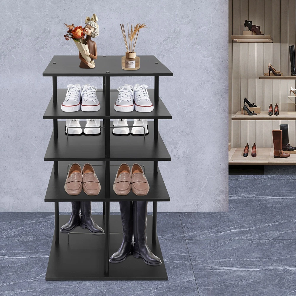 ????Welcome to my store???? Description A good shoe rack is not only a thoughtful steward of your shoes, but also an artistic accent to your home life. Our shoe storage rack is designed to hold shoes, hats or other items in an organized manner. It is made of high-class paintless board and metal with spray coating and baking paint processes, which is not only beautiful but also can be used for a long time. It can help you organize various kinds of shoes and solve storage problems in small homes. Key Features Build to Last: It is made of high-class paintless board and metal with spray coating and baking paint processes, which makes it wear-resistant, environmentally friendly, and not easy to deform, so you can use it for years and years. Large Capacity: The 4-tier design, each tier can accommodate 4 pairs of regular shoes(for reference), makes this product spacious enough for a family's shoe storage needs. You can also place small potted plants, handbags, umbrellas, etc.(not included) on the top tier. Strong Load-bearing Capacity: The square base and the solid connection between the parts allow this product to hold up to 38.58 lbs, so you can use it to store shoes or bags (not included) with confidence. Display Assistant: With it, you can neatly arrange different types of shoes. The 8.26-inch and 17.32-inch tier spacing accommodates different heights of shoes such as trainers and tall boots. In addition, the bottom of this shoe rack can be rotated 360° for easy selection, access, and storage of shoes or other items. Thoughtful Design: The open design allows you to see your shoes at a glance for easy access while still allowing for effective ventilation. Elegant Appearance: The simple black color finish creates a touch of elegance and casualness. It blends well with a variety of interior styles, bringing functionality and aesthetics to your space. Space Saving: It utilizes vertical space wisely and has a small footprint(22.44*22.44 inches), which won't make the room congested. Simple Cleaning: Thanks to its smooth surface and simple structure, you can easily clean it with a soft rag (not included). Ideal Gift : This quality and practical product is a nice housewarming gift for your family and friends. Buy with Confidence: We stand behind all our guests and look forward to assisting you with your purchase. It is our pleasure to answer your confusion and questions. The end of the story between us is not "we sell and you buy". Details Stable Base: The square base measuring 22.44*22.44 inches and with non-slip feet can effectively stabilize the product and prevent it from shaking. Center Crossbars: They can be good for dividing up placed items and making them neater. Smooth Edges: The rounded and smooth edges not only add to the aesthetics of the product but also improve the safety of use. Application It can be used in homes, stores, clothing stores, hotels, gift stores, or factory warehouses to hold various styles of shoes, hats, handbags, and so on. Specifications Color: Black Material: Paintless Board, Metal Process: Spray Coating, Baking Paint Style: Modern Shape: Rectangular Assembly Required: Yes Mount Type: Floor Mount Feature: 360° Rotatable Product Care Instructions: Wipe with a Soft Cloth Number of Tiers: 4 Number of Shoes Applicable Each Tier: 4 Pairs(For Reference) Total Load-bearing Capacity: About 17.5kg/38.58lbs Gross Weight: 15kg/33.07lbs Net Weight: 14.25kg/31.41lbs Tier Spacing: 21cm/8.26in, 44cm/17.32in Product Size: 57*57*107cm/22.44*22.44*42.1in Package Size: 60*60*20cm/23.62*23.62*7.87in Package Included 1* Shoe Storage Rack All Accessories for Assembly Notes Please confirm the product size before purchasing. Please note that this product does not include display items such as shoes. Please note that the number of shoes that can be stored will vary depending on the size and height of the shoes. Please allow the slight color difference caused by the shooting light and 1-3cm error due to manual measurement, and make sure you do not mind before you order. Payment Delivery details Terms of sales About us Contact us Payment We accept ebay payment 。 Fees such as import duties, taxes are not included in the item price or shipping costs. These charges are the buyer's responsibility. Delivery details Shipping: 2-9 working days to: USA Terms of sales We maintain high standards of excellence and strive for hundred percent customer satisfaction. Feedback is very important to us. We hope that you contact us immediately before you give neutral or negative feedback, so that we can address your concerns. It is impossible to address issues if we do not know about them! About us Your satis faction is our ultimate goal. We work hard to earn your trust and future business. Our certified technicians have tested each item before shipping. The unit comes with 1 year limited warranty on all manufacturing defects. a) If you receive a defective item, you may return it or ask for a discount. Please contact us within 14 days after you receive the package. b) What you returned must be intact and in its original packaging as re? u. Customer is responsible for shipping costs of the returned item. c) We will cover the cost of shipping back t with the shipping rate indicated in the registration page. We will send you a new unit or refund the full payment you paid. Thank you. Contact us Business Hour Business Hour: Monday To Friday: 8:30 AM to 5:00 PM (Beijing China time) Due to time zones, our reply to your questions may not be immediately. But within above working time, we will reply your email within 24 hours. If it's non-workdays, please kindly be patient and wait till Monday. Please contact us with ebay message. Please feel free to contact us if you have any questions. Monday To Friday: 8:30 AM to 5:00 PM (Beijing China time) Due to time zones, our reply to your questions may not be immediately. But within above working time, we will reply your email within 24 hours. If it's non-workdays, please k