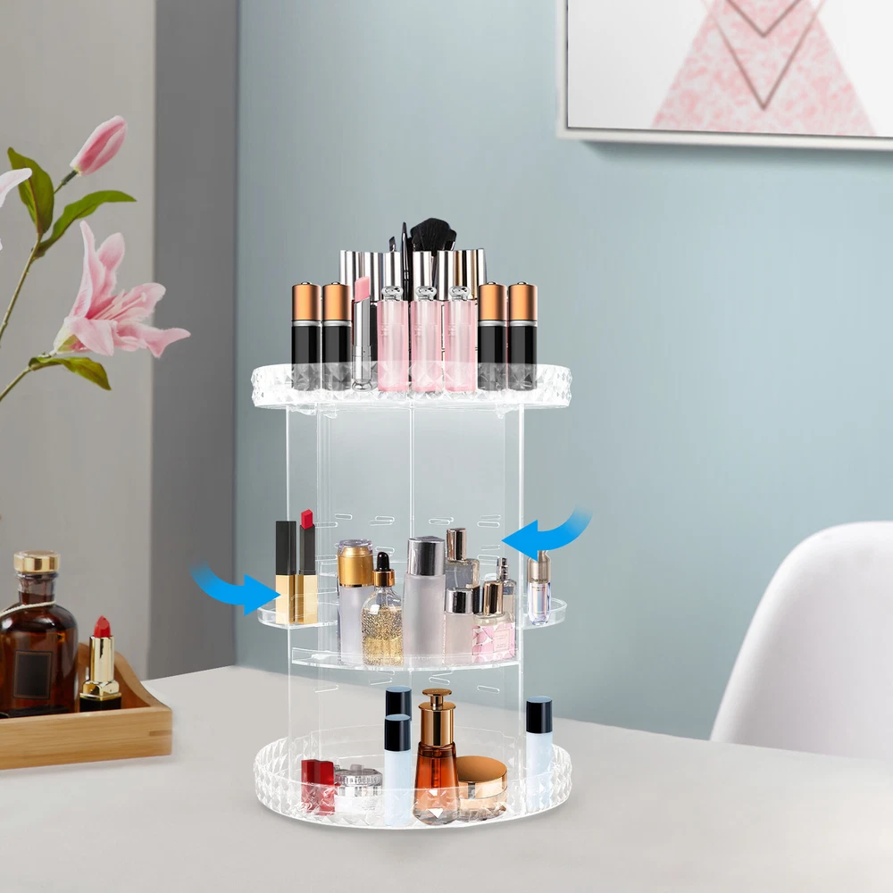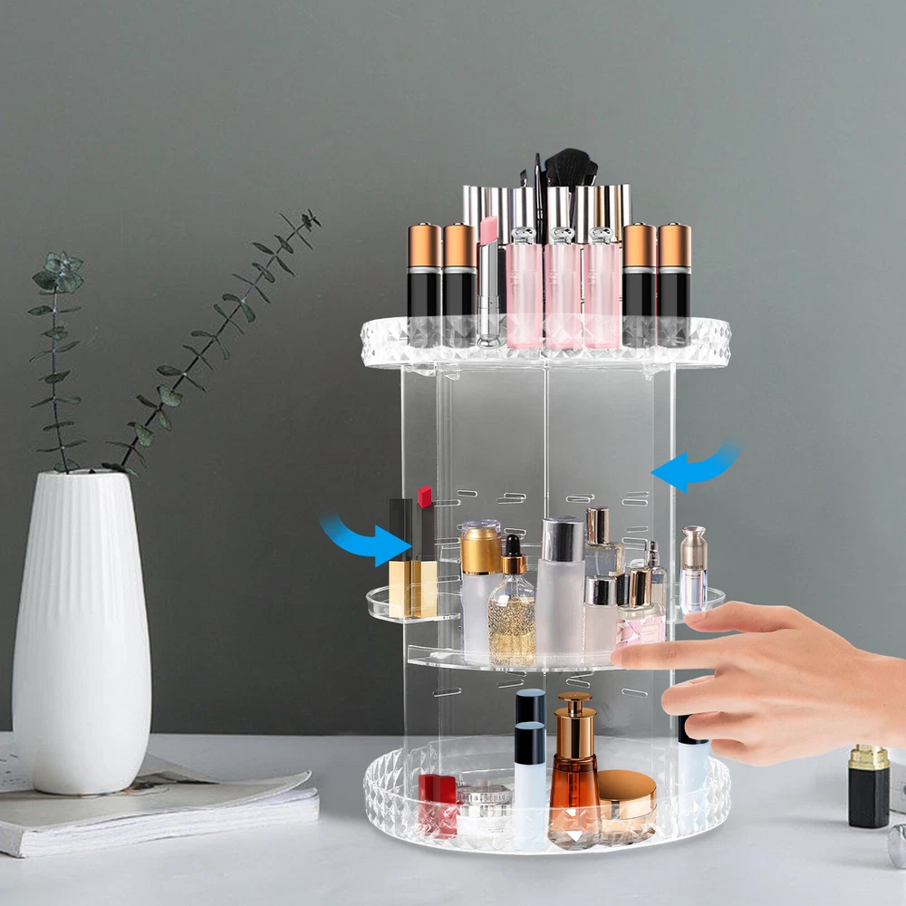 This makeup organizer is a game-changer! The 360-degree spin makes everything easy to reach, and the adjustable height is perfect for all my products. Love the sleek, clear design—it looks so elegant on my vanity while keeping everything neat. No more digging through clutter—just spin and grab what I need. Super sturdy and holds a ton! Highly recommend for anyone who loves an organized beauty space.
