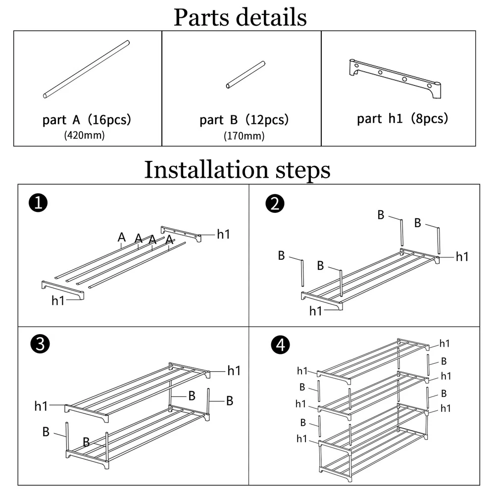 Small Shoe Rack, Metal Stackable Kids Shoe Shelf Storage Zapateras Organizer,Narrow Shoe Rack Sturdy for Closet Hallway Entryway Living Room Bedroom 【High-Quality Materials】-This metal shoe organizer is made of high-quality metal tubes and high toughness plastic connector which is waterproof, dustproof and oil-proof. 【Stackable & Expandable 】-2 sets or more can be stacked vertically to form a complete 7-layer shoe rack or even higher shoe tower. The middle layer can be removed to place long boots to meet the needs of different shoe types(dress shoes, ballet shoes, sneakers, running shoes, hiking boots, canvas shoes, sandals and more. ) 【Multifunctional】-This small shoe rack is not only for shoes,It could be a display stand for your toys, books,plants and more.It also works great for kitchen food containers storage and garden supplies storage. This storage rack is a perfect choice for renters and dormitories. 【Space Saving】-A perfect design to reduce cluster and make everything neat and organized.Dimension: 17.3" W x 11.2" D x 22" H. A good solution to keep your entryway, closet, dormitory, patio, mudroom and garage away from messes. It’ll safely accommodate your ever-expanding shoe collection while saving your valuable floor space. 【Easy And Quick Assembly】-The simple structure and light weight make the rack very convenient for you to assemble and disassemble. Installation requires only a few easy steps and no special tools are needed. Easy to clean with a dry or damp cloth and effortless to reposition and transport.