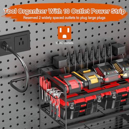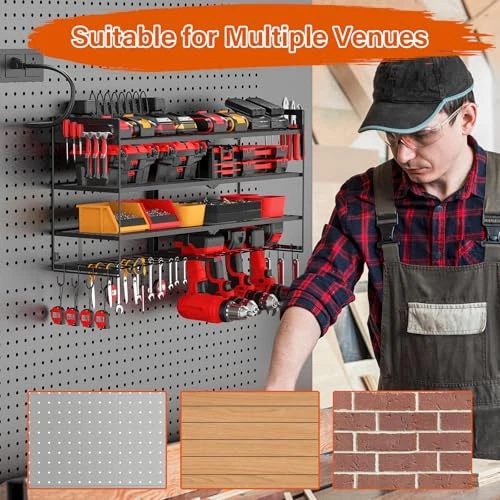 Menu 1. We require immediate payment. 2. We currently accept payment via eBay managed payments only. 3. Once payment is cleared, we will dispatch your shipment within 1-3 business days. Please refer to the "Shipping" tab for more information regarding shipping speed to your destination. Large Power Tool Organizer with 10 Outlet Power Strip, 4 Layer Wall Mount Drill Holder with Charging Station, 8 Drills Storage Shelf Shop Garage Utility Rack, Black Product description Large power tool organizer with charging in one, it is dedicated to providing an organized and efficient workspace for you. Tool organizer with 10 outlet power strip, four-tier large capacity design allow to store 8 drills on the bottom tier, batteries, chargers and other tools on the top three tiers, pliers holder are added to the side. Two side pegboard extension comes with 8 long hooks Our power tool drill and battery organizer innovatively features 10 AC outlets allowing to power up to 10 devices, reserved 2 widely spaced outlets to plug large plugs. Comes with a 6-foot extension cord for flexible connection to the distant outlets. Save the cost of purchg additional power strip. This tool shelf for handheld power tools wall mounted toolholder will be a perfect gift idea for those who love DIY and getting things organized. Besides the power tool storage rack, this lower tier rack can also be used to hang tools such as rubber mallets or drilling hammers. This wall mount tools battery holder features a four-tier, large capacity design with storage space, shelf height that offers more space than other tool racks, 4.92 inch mid-tier tool rack for more charging posts, batteries, and added pliers holders, drill bit storage on the side. Size: 35.55*9.45*16.53 in. Easy to assemble and hang, it only takes a few minutes to assemble the perfect heavy duty tool holder. The large tools holder made of reinforced and thickened high-quality iron, with strong bearing capacity and durability. Each layer of the grid can support a maximum weight of 66IB. The tools in the picture are only used to show capacity and are not included. PLEASE MESSAGE US IF YOU HAVE ANY OTHER QUESTIONS, AND MANY THANKS FOR READING ALL OF THIS. Copyright ©#. All Rights Reserved.
