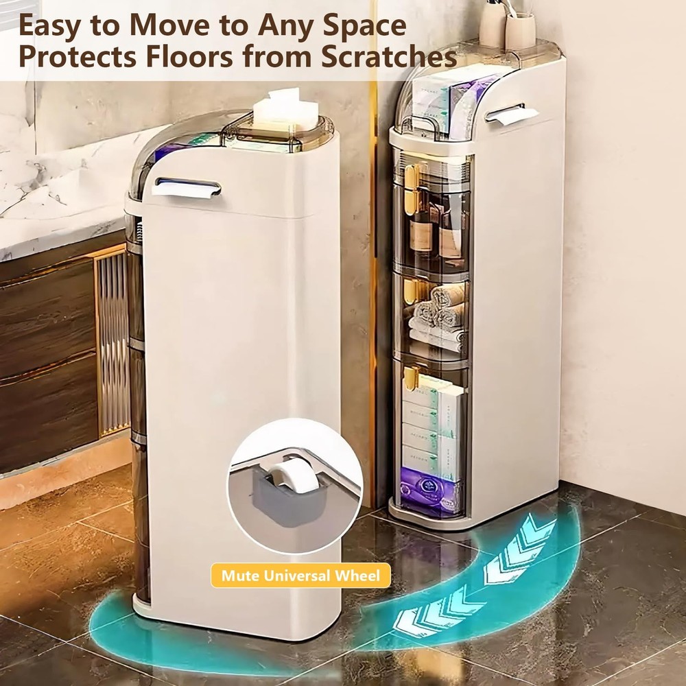 4-Tiers Narrow Bathroom Storage Cabinet 7.1″ Slim Bathroom Floor Organizer wi...