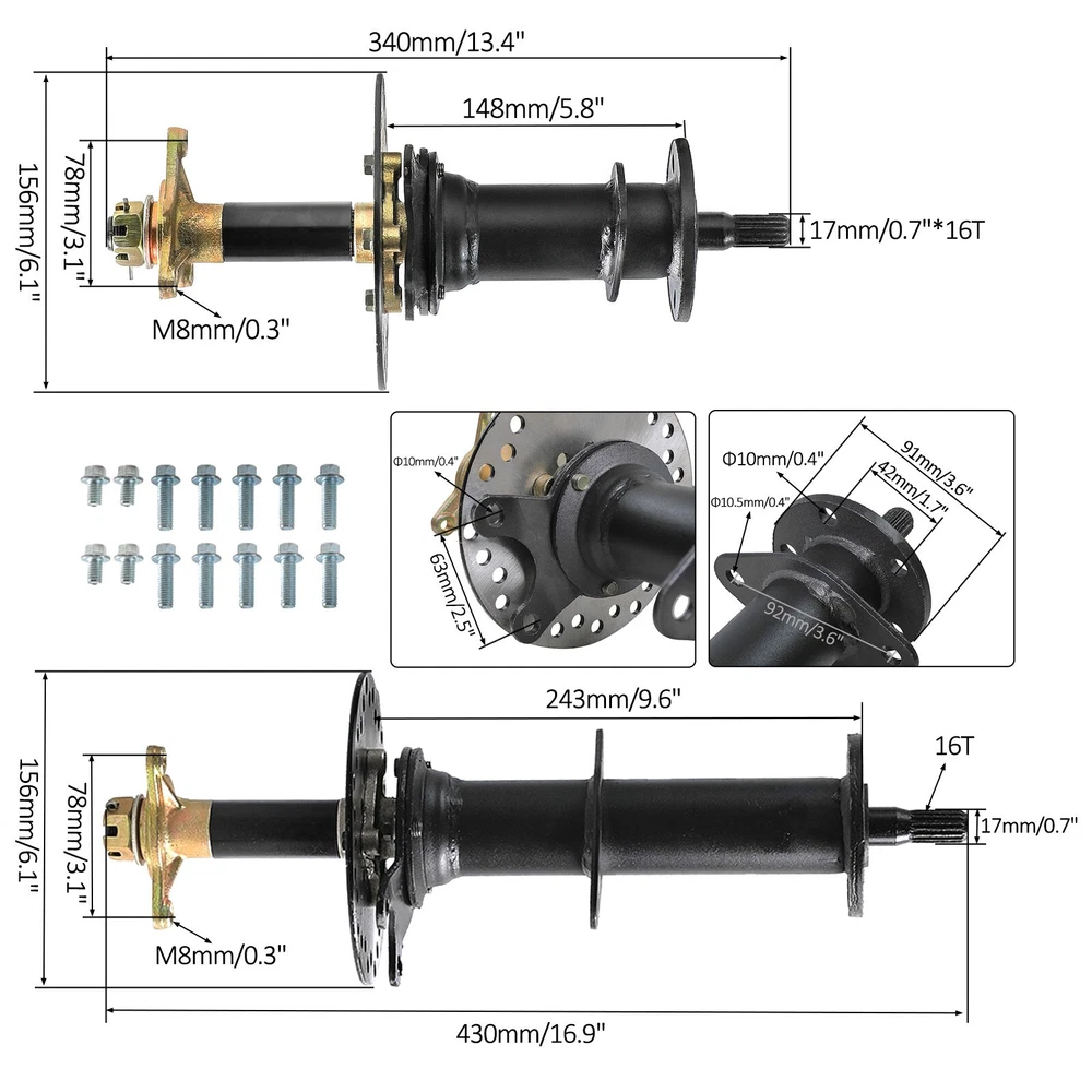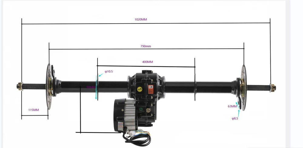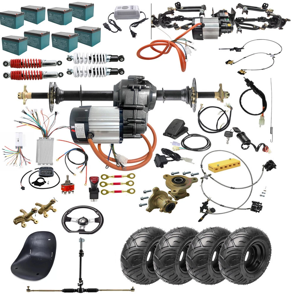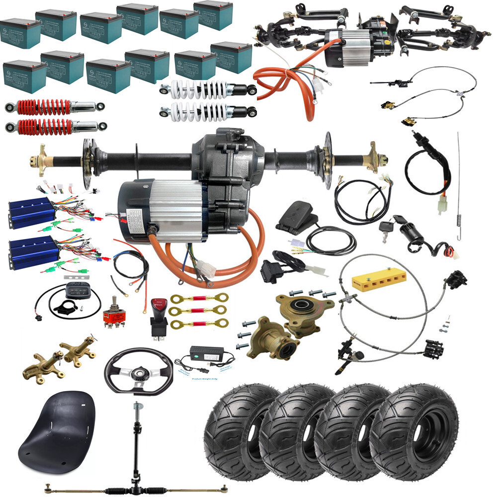 Drivetrain Configuration: A 4-wheel drive axle system typically consists of a transfer case, front and rear axles, differentials, and drive shafts. The transfer case distributes power from the engine to both the front and rear axles. Power Distribution: In a 4WD system, torque is distributed to all four wheels simultaneously. This allows for improved traction and handling in various driving conditions, especially off-road, snowy, or slippery surfaces. 48V 1000W brushless DC differential motor Voltage(V): 48V Output Power:1000W Commutation: Brushless Speed(RPM): 4800rpm Rated current:18-35A Gear Ratio: 9.5:1 Torque: 2.62Nm High Speed : 20mph / Medium Speed : 16mph / Low Speed: 10mph Voltage(V): 72V Output Power:1500W Commutation: Brushless Speed(RPM): 4800rpm Rated current:18-35A Reduction ratio: 10.44:1 or 12.8:1 Application range: micro electric vehicles, heavy electric tricycle 30" /34"/40" Differential Rear Axle Drive Shaft kit Axle Length: 30 inch / 34 inch /40 inch Comes with pair axles Listing and template services provided by inkFrog