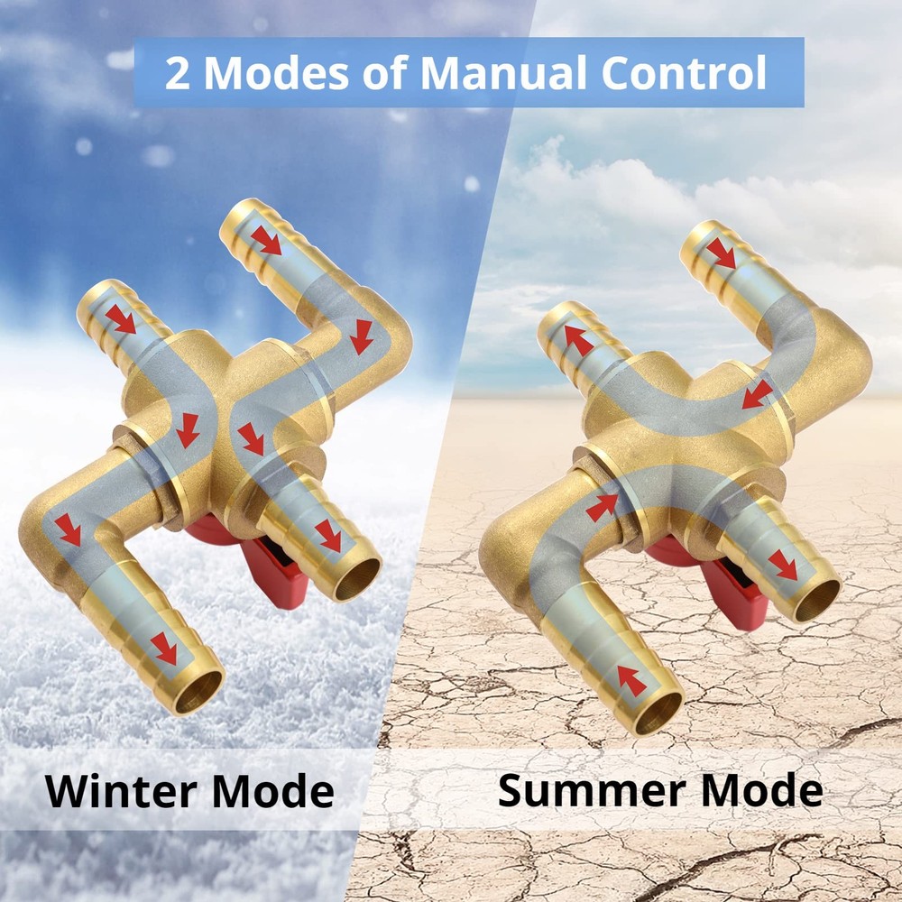 4-Way Solid Brass Heater Control Valve 5/8 Inch Automobile Heating Water Valve Features: 【Integrated Structure for Reliably Sealing】Integrated structure is adopted to ensure the good sealing ability. The valve is completely closed without water channeling or leakage. Another benefit is to prevent the warm water tank from drying, causing the engine to pull and get damaged 【Easy to Install】No screws required, it's simple to install the valve into the car of which the outer diameter of the water pipe is less than or equal to 0.9in. As an automobile modification accessory, it's suitable for people with a certain kind of professional knowledge or auto repair shops 【Winter Summer Manual Mode】It offers you 2 modes for manual control. Close the valve in winter to allow the water cycle to proceed normally, that is, the water cycle can go from the engine compartment to the cab and pass through the heater. Open the valve in summer to stop the above-mentioned water cycle 【Solid Brass Long Lifespan】Made of solid all-brass body and electroplated handle, the valve is sturdy, wear-resistant, and anti-aging, prolonging its service life. Besides, it's high-temperature resistant and not easy to deform, which is suitable for the high-temperature coolant environment. During transportation, collisions may cause minor paint chipping on the red handle, but it won't affect the product's normal use 【4-way Automobile Heater Valve】The heating water valve is specially designed for the automobile air conditioning system. It can improve the cooling effect and reduce fuel consumption in hot weather. The working temperature of this valve ranges from -20℃ to 150℃, and the working pressure is 1.6Mpa Description: Color: Golden Material: Brass Size: 4.7 * 3.9 inches Package Includes: 1 * Valve Note: - Please refer to the measurement. Tiny measuring error is allowable in normal range. - There might be a little color difference due to the monitor, camera or other factors, please refer to the physical item. Package Including 1 * Valve 🌻 If you need more quantity than shown available - just send me a message and I'll increase the purchased limit for you 🌻 SHIPPING We are always working hard to ensure your package arrives as soon as possible. Please understand that some factors like weather, high postal traffic, and the performance of shipping companies are outside of our control. We offer free shipping to the lower 48 states. We do not accept P.O. Boxes. Please provide a physical address. Thank you 🌻 TRANSLATE with x English Arabic Hebrew Polish Bulgarian Hindi Portuguese Catalan Hmong Daw Romanian Chinese Simplified Hungarian Russian Chinese Traditional Indonesian Slovak Czech Italian Slovenian Danish Japanese Spanish Dutch Klingon Swedish English Korean Thai Estonian Latvian Turkish Finnish Lithuanian Ukrainian French Malay Urdu German Maltese Vietnamese Greek Norwegian Welsh Haitian Creole Persian