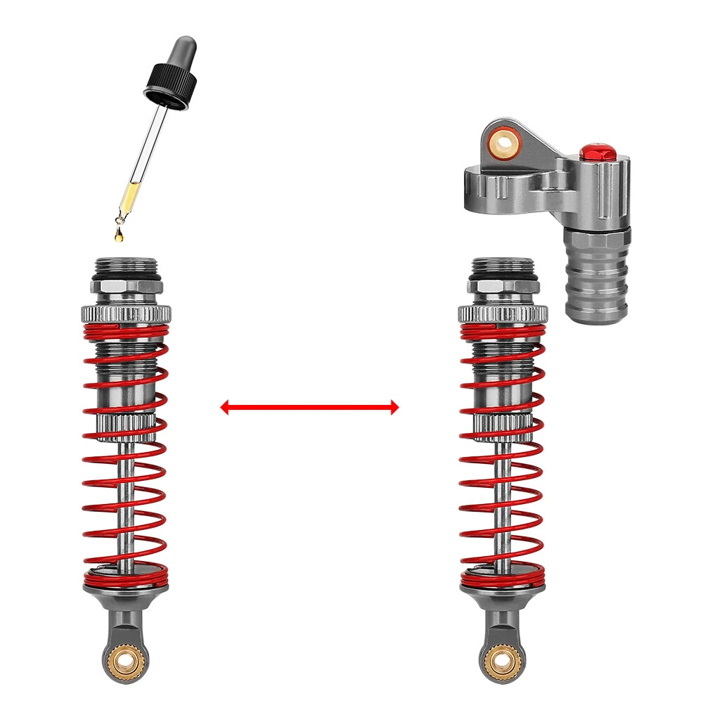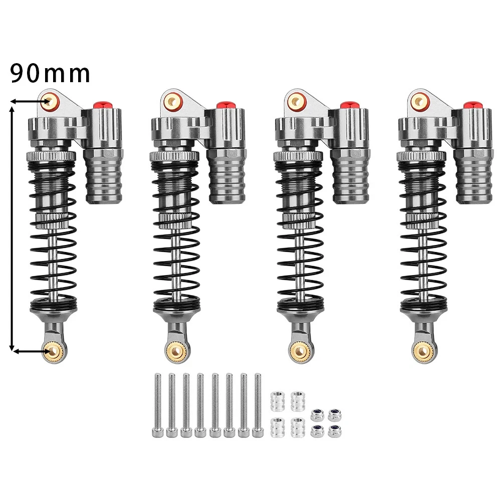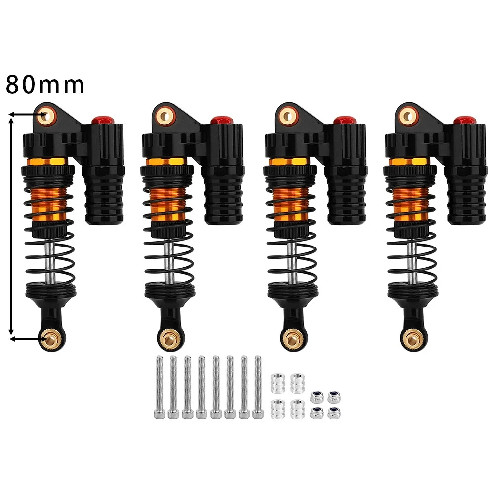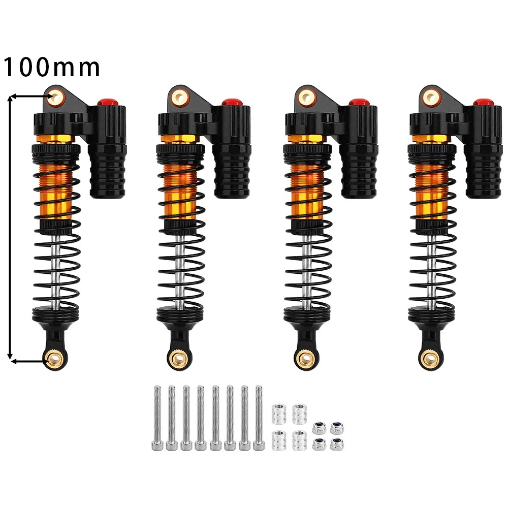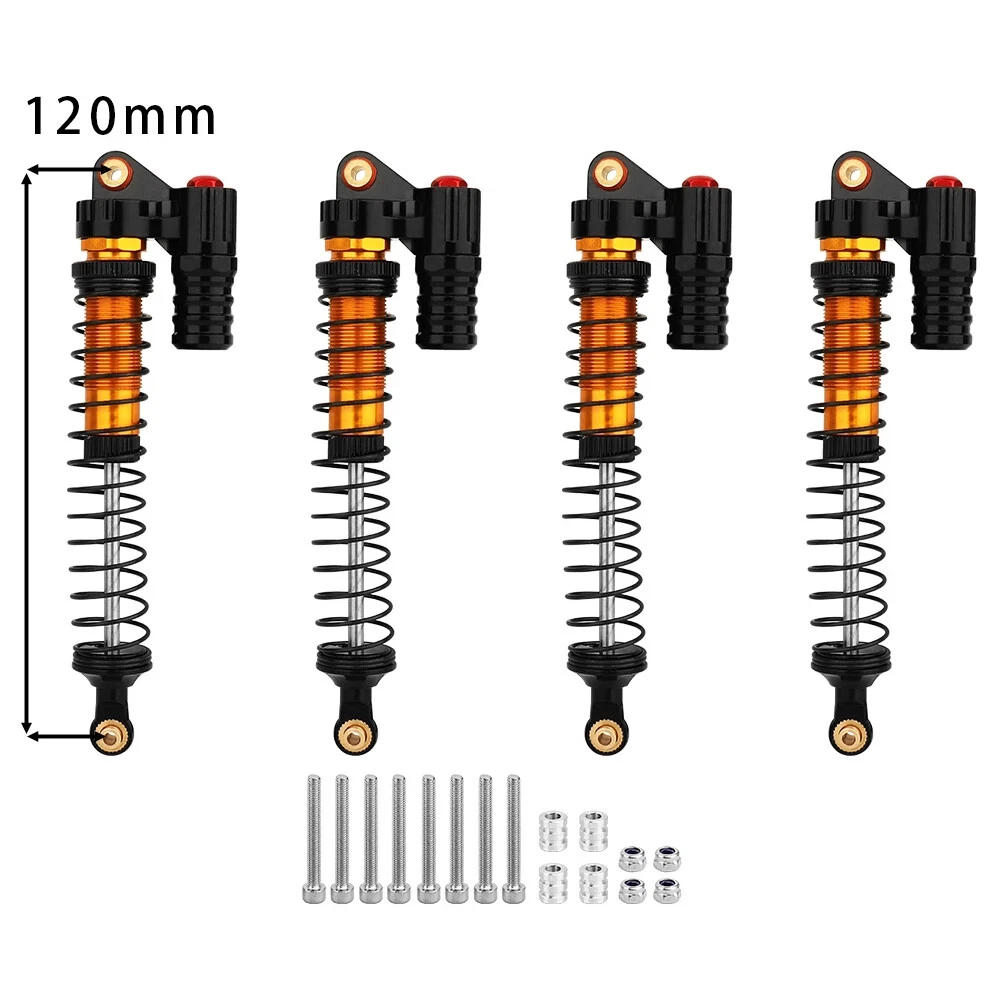 Note: Need to choose the length (hole to hole of rod end) and quantity when place a order Features: CNC machined aluminum shock body Easy load shock seal assembly Come with spare springs, screws and washers Smooth and excellent damping effect Suit for 1/10 RC Car Crawler, such as SCX10 90046 TRX4 Specifications: Material: Aluminum and Plastic Quantity: 4PCS/lot Color: Black/ Titanium /Titanium Red/ Red Shock Body Diameter: 12mm Head Ball Length:7.5mm Ball Hole: 3mm Hole to Hole Length : 70 mm/ 80 mm/ 90 mm/ 100 mm/ 110 mm/ 120 mm After Compression : 58 mm/ 60 mm/ 65 mm/ 71 mm/ 75 mm/ 80 mm Net Weight : 132g/134g/141g/150g/155g(4pcs per set)