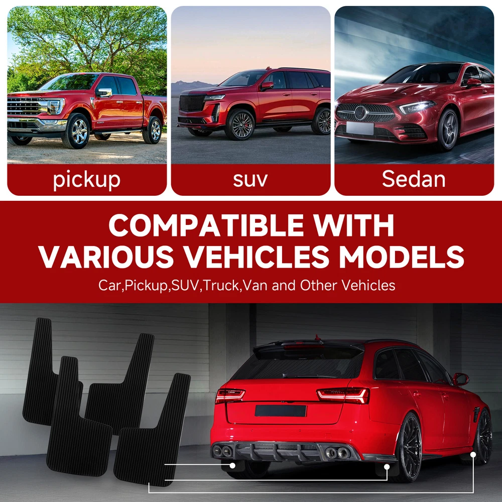 4X For For Dodge Challenger Charger SRT8 Rubber Rally Car Mudflaps Splash Guards Specification Material: Rubber Color: Black Size: 42 x 22.8 x 19 cm / 16.6 x 9 x 7.5 inch Feature High-Quality Material: Crafted from high-grade soft rubber, these mud flaps boast softness, flexibility, and exceptional durability . They are wear-resistant, heat-resistant, and cold-resistant , making installation straightforward while adding a touch of class to your vehicle. Effective Protection: These mud flaps are designed to shield your car's undercarriage from mud, snow, salt, sand, rocks, and other debris thrown up by the wheels . Keep your car clean, and protect it from scratches, nicks, dents, and further damage. They effectively deflect loose gravel and excessive rainwater, ensuring a pristine vehicle appearance. Simple Installation: Installation requires drilling holes based on the factory settings and fitting them accordingly . Enjoy personalizing your beloved car with ease. Important Note: Before purchase, ensure there is adequate space for the mounting screws and verify that the width of your car tires is smaller than that of the mud flaps. Package Included 4Pcs Splash Guards Mud Flaps Set of Screws •We accepted PayPal payment ONLY •We will ship your order within 24 hours after receiving your verified payment (Excluding Weekends and Public Holidays) •The estimated delivery time is within 3-7 working days(not including the weekend). •United States:3-5 working days(not including the weekend) •If you fail to receive over 7 days, please contact us and we will try our best to help •Return items must not be used or have any sign of abuse or intentional damage. •Buyer is responsible for all return shipping charges. •We reserve the right not to refund S&H when the item has been posted. We are a company run business with more than 10 years experience in whole sale of quality Motorcycle And Car Parts & Accessories Specification Material: Rubber Color: Black Size: 42 x 22.8 x 19 cm / 16.6 x 9 x 7.5 inch Feature High-Quality Material: Crafted from high-grade soft rubber, these mud flaps boast softness, flexibility, and exceptional durability . They are wear-resistant, heat-resistant, and cold-resistant , making installation straightforward while adding a touch of class to your vehicle. Effective Protection: These mud flaps are designed to shield your car's undercarriage from mud, snow, salt, sand, rocks, and other debris thrown up by the wheels . Keep your car clean, and protect it from scratches, nicks, dents, and further damage. They effectively deflect loose gravel and excessive rainwater, ensuring a pristine vehicle appearance. Simple Installation: Installation requires drilling holes based on the factory settings and fitting them accordingly . Enjoy personalizing your beloved car with ease. Important Note: Before purchase, ensure there is adequate space for the mounting screws and verify that the width of your car tires is smaller than that of the mud flaps. Package Included 4Pcs Splash Guards Mud Flaps Set of Screws PAYMENT •We accepted PayPal payment ONLY SHIPPING •We will ship your order within 24 hours after receiving your verified payment (Excluding Weekends and Public Holidays) •The estimated delivery time is within 3-7 working days(not including the weekend). •United States:3-5 working days(not including the weekend) •If you fail to receive over 7 days, please contact us and we will try our best to help Terms of Sale •Return items must not be used or have any sign of abuse or intentional damage. •Buyer is responsible for all return shipping charges. •We reserve the right not to refund S&H when the item has been posted. ABOUT US We are a company run business with more than 10 years experience in whole sale of quality Motorcycle And Car Parts & Accessories On Feb 5, 2025 at 13:15:27 PST, seller added the following information: