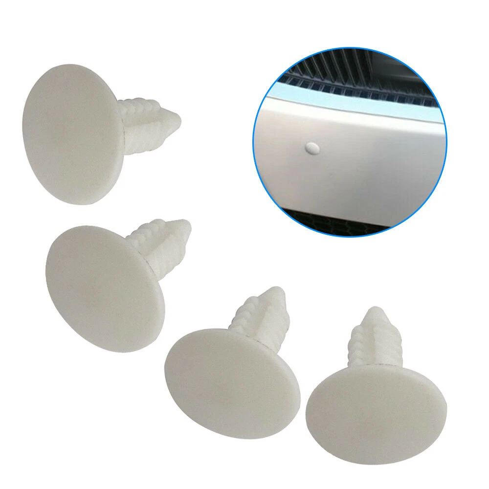 Feature: Condition: 100% brand new and suitable. Made of high-quality nylon material, anti-wear and anti-corrosion,would not break or crack easily during use. Car good accessory, commonly used for fitting side skirts, bumpers and other trim. These clips are suitable for firmly holding anything within a fit diameter hole. This non-OEM product,accessory only! Specification: Material: nylon Color: White Cover Diameter: 18mm ≈ 0.7in. Stem Length: 20mm ≈ 0.8in. Fills Holes: 6-7mm ≈ .25in NOTE: Communication is the best way to solve the problem. If you have any problems after purchasing, please contact us in time, before opening return or case Package includes: 4 Sets Bumper Plugs Front License Plate Holes Cover Plugs