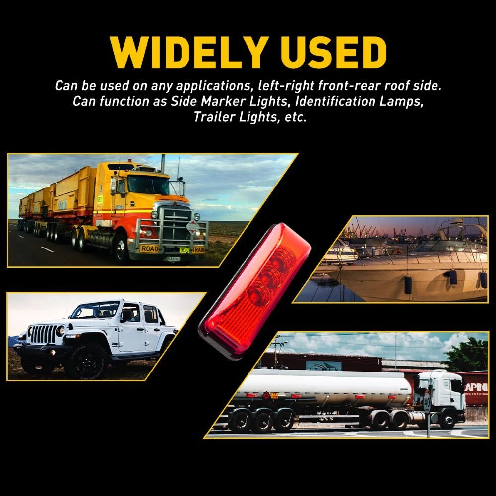 Specification: - Shell color: Red - Light color: Red - Base color: Black - Material: ABS+PC lampshade - Voltage: 12V - Power: 1.2W - Number of Lamp Beads: 3 - Shell material: Plastic - Number of LEDs: 3 Diodes - Usage time: More than 50000 hours - Application: Suitable for any 12V vehicle Description: Wide range of applications: used as LED sign lights or LED gap lights on the top of the roof of any 12V pickup truck trailer, SUV, RV van caravan, camping boat, truck, bus, etc. 4X Marker 12V Side Indicator Lights LED Truck Red Trailer Signal Running Light Specification: - Shell color: Red - Light color: Red - Base color: Black - Material: ABS+PC lampshade - Voltage: 12V - Power: 1.2W - Number of Lamp Beads: 3 - Shell material: Plastic - Number of LEDs: 3 Diodes - Usage time: More than 50000 hours - Application: Suitable for any 12V vehicle Description: Wide range of applications: used as LED sign lights or LED gap lights on the top of the roof of any 12V pickup truck trailer, SUV, RV van caravan, camping boat, truck, bus, etc. High-quality LEDs: 3 upgraded LEDs, with higher light intensity, wider light-emitting angle, better heat dissipation, and longer life. Reflector design: The signal lamp adopts a multi-faceted reflector design, which is not only beautiful, but also increases the light output. Waterproof and highly sealed: The lens and the housing are tightly welded, and the internal LED is also surface-sealed. Excellent waterproof performance can cope with all bad weather. Package Included: 4 x Red side beacon lights 8 x Screws Item Specifics Brand AUXITO Lens Color Red Fitment Type Direct Replacement Function Clearance light with built-in reflector optics Number of Bulbs 4 Placement on Vehicle Front, Rear, Left, Right, Upper, Lower Lighting Technology LED To Fit Accessory Light, Daytime Running Light, Side Marker Light Type Clearance Side Marker Light Voltage 12V Manufacturer Warranty 2 Years Universal Fitment Yes Material ABS, PC lampshade Suitable For Truck, RV, Boat, Trailer, Truck, Camper, Bus, Lorry, Van Bulb Life Hours Up to 50000 Hours Waterproof IP67 Features Low power, low consumption, long service life,Waterproof Housing Color Red Manufacturer Part Number CBD-197-R-4PCS Features Low power, low consumption, long service life,Waterproof Housing Color Red Manufacturer Part Number CBD-197-R-4PCS Payment 1. Instant PayPal payment is the preferred method of payment. We also accept payment via PayPal, DebitCard, Visa, MasterCard, Discover. 2. Before payment,Please keep the consistency of Paypal address and ebay address. 3. Quantity orders are welcome! Shipping 1. All items will be shipped in 24 hours after receiving your payment . 2. We ship this item to US only via USPS first class mail. It usually takes 3-6 working days to deliver. Returns 1. We offer free return & money back guarantee. If you are not satisfied with your purchase for any reasons, you can return the item for refund or replacement/exchange. All returns must include the original packaging. (Please refer to our return policy for details.) 2. If you don't return goods within 60 days from date of purchase, your right to cancel will be revoked. Any items damaged because of incorrect installation will not be refunded. Please contact us for return or troubleshooting help prior to returning any products. Contact Us 1. Negative feedback will not help resolve any problems you have, please contact us via eBay messages before leaving negative feedback, our customer service will make best effort to help you with the issues. 2. We maintain high standards of excellenceand strive for 100% customer satisfaction! Feedback is very important to us. We request that you contact us immediately Before you give us neutral or negative feedback, so that we can satisfactorily address your concerns. FAQ 1. Can you tell me when my order will be shipped? Actually we will ship the item within 1 business day after receiving orders. But USPS need to take longer time to update tracking info and arrange delivery during the challenging time for now. If your order was not shipped more than 3 business days, please contact us with your order number to get quick support. 2. My item has not arrived, what's taking so long? Sometimes items take longer than expected, especially if it's going far or to rural area. Check with your post office to see if your item has been held up. Sometimes USPS will not update a tracking number until it has arrived at its destination. If your item still has not arrived after a few days, let us know so we can double check for you and help solve it asap. 3. Do you ship to Canada, United Kingdom, Australia, etc.? Unfortunately, we could only ship to United States (Domestic shipment) at the moment. 4. I bought the wrong items/ the items were not compatible with my vehicle. Please contact us via ebay message to get quick support. DESCRIPTION PAYMENT SHIPPING RETURN POLICY CONTACT US Hot Item LED License Plate Light Assembly For Chevrolet 2018-2022 Equinox 15-20 Suburban USD 14.99 2x For 2014-2019 Toyota Sedan Corolla LED License Plate Lights Tag Lamp Assembly USD 17.99 2pcs For Ford 2019-2021 Ranger EcoSport AUXITO LED License Plate Light Assembly USD 12.59 For 1996-2022 Toyota Sequoia 4Runner LED 24SMD License Plate Tag Light Lamp USD 13.99 2pcs Pigtail Female Wire Socket 3157 S Two Harness Universal Front Turn Signal USD 11.99 New List Item 2PCS 7" Round LED Truck Trailer Bus Stop Turn Signal Tail Brake Light Flash Red USD 39.99 For 2017-2022 Tesla Model 3/Y Seat Power Switch Control Front Passenger Side USD 23.99 White Pearl Color Shark Fin Antenna Cover For 2014-2019 Hyundai Quartz Sonata USD 11.99 Fuel Tank Pressure Sensor for Buick Chevy GMC Pontiac Hummer Oldsmobile New USD 12.99 Battery Isolator Switch Disconnect Power Cut Off Kill Brass Auto Car Accessories USD 15.09 Excellent Delivery 4X Marker 12V Side Indicator Lights LED Truck Red Trailer Signal Running Light Specification: - Shell color: Red - Light color: Red - Base 